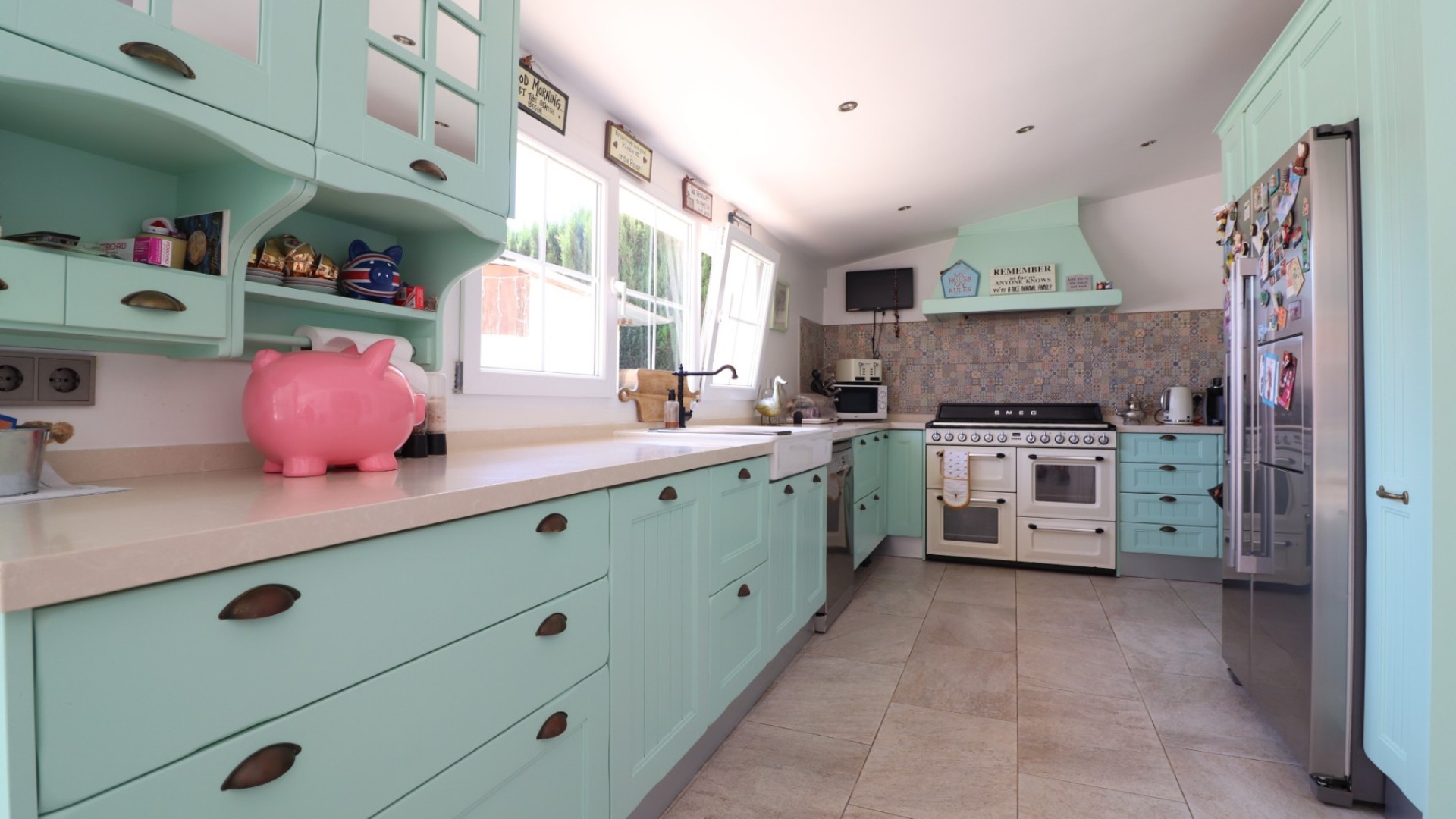 Denne virkelig ønskværdige, øst- og vestvendte, fire/seks soveværelser, fritliggende landvilla med stalde og paddock på en 2000 m² stor grund i Las Heredades, mellem Formentera del Segura og Almoradi, er beliggende i maleriske omgivelser kun en kort 6-7 minutters gang til den charmerende spanske landsby, og kun 5 minutters kørsel til Formentera del Segura, Rojales og Benijofar. De fantastiske strande og den populære promenade i Guardamar ligger kun 15 minutters kørsel derfra. Hovedvillaen har 4 soveværelser og 3 badeværelser plus 1 garderobe. Et af soveværelserne bruges i øjeblikket som et golfsimulatorrum, mens det store soveværelse har et walk-in-garderobe og en fantastisk en suite med både badekar og bruser. To af de resterende soveværelser har også eget badeværelse. Villaen inkluderer et fabelagtigt moderne køkken i landlig stil med fantastiske døre, der fører fra spisepladsen til en udendørs terrasse med udsigt over den private pool. Udendørsområdet er perfekt til at underholde med et udendørs køkken, grill og underholdningsområde. Separat gæsteindkvartering tilbyder yderligere 2 soveværelser, et vådrum, køkken og stue, hvilket gør det perfekt til besøgende eller udvidet familie. Ejendommen omfatter stalde og en fold, et kontor i hovedvillaens stue, aircondition overalt, varmepaneler, indbyggede skabe og et separat bryggers. Det udendørs rum har fantastiske fliser omkring swimmingpoolen, rigelig off-road parkering under carporten og et funktionelt springvand. Denne villa blander mesterligt moderne og traditionelle funktioner overalt, hvilket gør den til et helt unikt og attråværdigt hjem i Costa Blanca Syd.