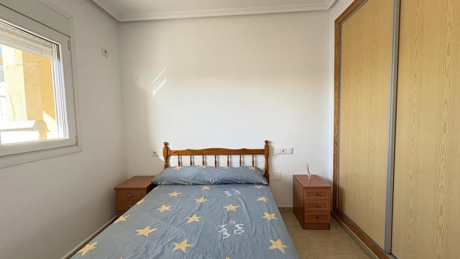Denne lejlighed i stueetagen i Los Santiago - Gea y Truyols, er virkelig god værdi for pengene. Det har to soveværelser, et badeværelse og et åbent køkken, der fører ind i stuen. Fra stuen åbner franske døre ud til en solrig terrasse, hvor solen skinner hele dagen. Lejligheden har adgang til fælles pool og nyder godt af en sydvendt orientering. Beliggende i den charmerende urbanisering Los Santiago, Murcia, tilbyder dette samfund alt, hvad du behøver. Inden for urbaniseringen finder du en bar, en café og en skønhedssalon. Det er også bekvemt beliggende i nærheden af flere golfbaner. Los Santiago har fremragende adgang lige ved motorvejen. Murcia lufthavn ligger kun 15 minutter væk, stranden ligger 15 minutters kørsel derfra, og Murcia City er kun 20 minutter væk, hvilket gør det til et ideelt sted for afslapning og forbindelse.