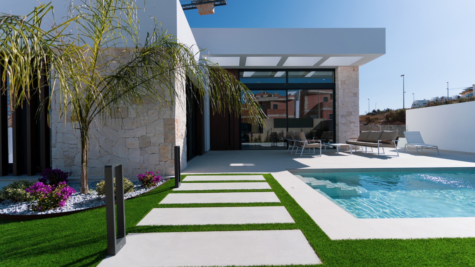 Disse eksklusive nybyggede villaer i La Marquesa, Rojales, er designet til at tilbyde moderne middelhavsliv, når det er bedst. Ejendommene ligger på generøse 380 m² grunde og kommer i konfigurationer med 3 eller 4 soveværelser med 2 til 4 badeværelser. Den åbne planløsning skaber en rummelig og luftig følelse med store vinduer, der oversvømmer interiøret med naturligt lys. Hver villa har finish af høj kvalitet, et fuldt udstyret køkken og elegante badeværelser. De lyse og stilfulde opholdsrum åbner ud til smukt anlagte haver, med mulighed for en privat pool. Nogle modeller inkluderer et solarium for en betagende udsigt og en underbygning, der giver ekstra plads til opbevaring, underholdning eller yderligere opholdsområder. Beliggende tæt på La Marquesa Golf, lokale faciliteter og kun en kort køretur fra de fantastiske strande på Costa Blanca, tilbyder disse villaer en ideel kombination af ro og bekvemmelighed. Uanset om det er et permanent hjem, et feriested eller en investering, leverer disse ejendomme moderne komfort med en førsteklasses beliggenhed.