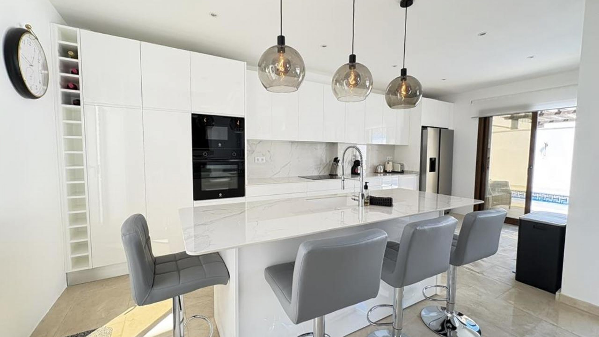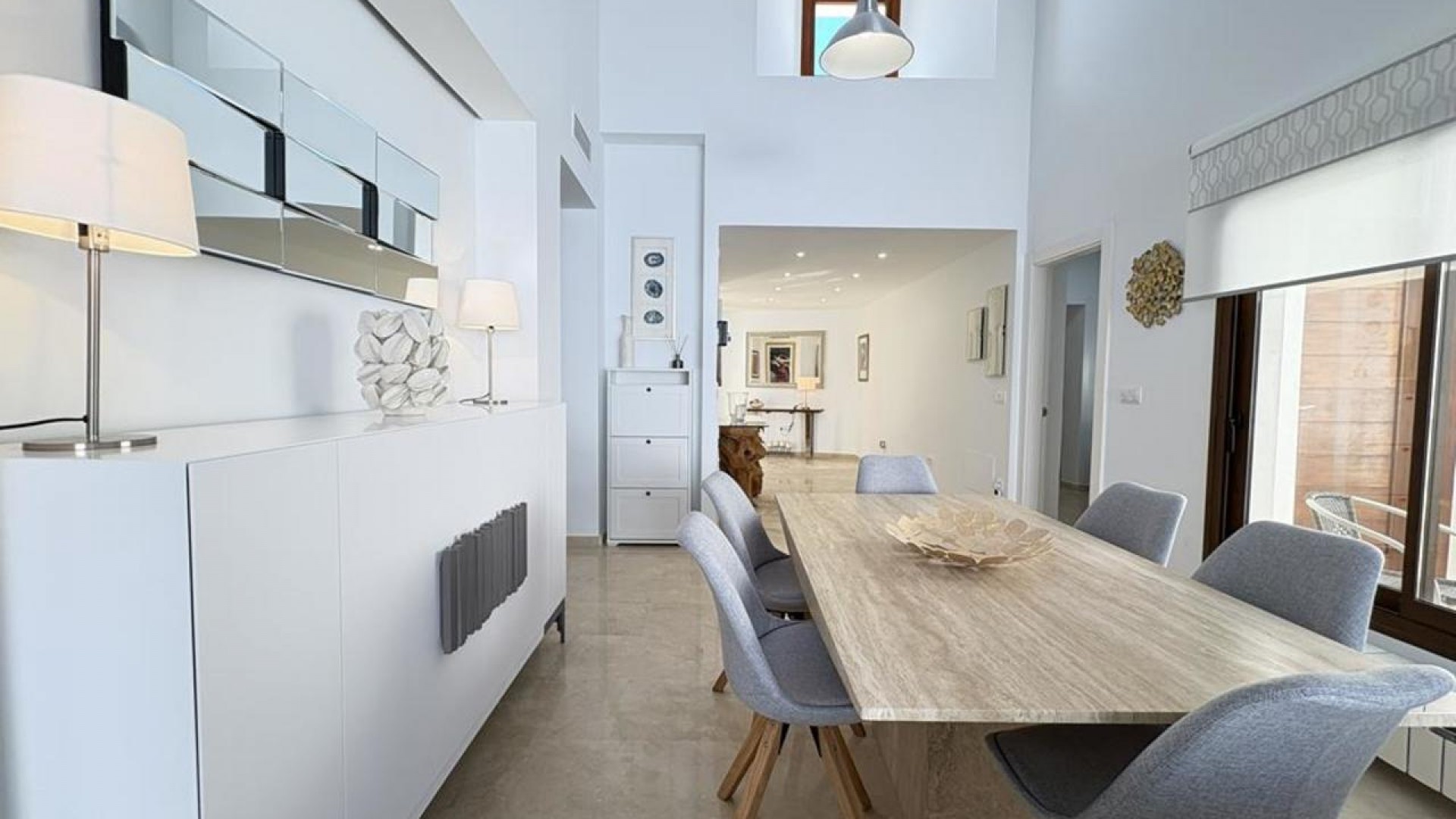 Spektakulær luksusvilla i Valle Golf Resort Vi præsenterer denne fantastiske Alcor villa med tre soveværelser og to badeværelser, beliggende i et af de bedste områder af det eksklusive Valle Golf Resort. Fuldstændig renoveret til de højeste standarder, kombinerer denne villa elegance, rummelighed og lysstyrke og tilbyder en uovertruffen booplevelse. Fra det allerførste øjeblik fanger denne villa dig med sin rummelige entré, resultatet af en renovering, der inkorporerede den originale veranda, hvilket skaber en lys og sofistikeret velkomst. Hovedstuen, af spektakulære dimensioner, har højt til loftet med træbjælker, hvilket giver et rustikt og elegant touch på samme tid. Det åbne koncept køkken, fuldstændig renoveret, er en rigtig drøm: kæmpestort, moderne og med integreret spiseplads, hvorfra du får adgang til poolområdet. Denne spektakulære ejendom har tre rummelige og lyse soveværelser og to badeværelser. Det store soveværelse har et en-suite badeværelse og direkte adgang til det udendørs poolområde, hvilket skaber et uovertruffent rum til afslapning og komfort. Ejendommen er udstyret med centralvarme og uafhængig aircondition i hvert værelse, hvilket garanterer effektivitet og maksimal komfort hele året rundt. Derudover er der et kontorområde, der nemt kan tilpasses som et fjerde soveværelse, samt et praktisk vaskerum, der tilføjer yderligere funktionalitet til boligen. Marmorgulve overalt på ejendommen tilføjer et strejf af luksus og distinktion, mens den udsøgte dekoration og finish af høj kvalitet skaber en indbydende og sofistikeret atmosfære. Et hjem designet til at nyde ethvert rum i komfort og stil. Imponerende væg-til-væg skydedøre i stuen åbner ud til et renoveret (opvarmet) poolområde, med et helt nyt poolhus. Denne villa er beliggende på et hjørne og har en større end normalt grund, fuldt udsmykket med flisegulve af høj kvalitet. Udenfor kan du vælge fra et stort spiseområde til et afslapningsområde for at nyde med venner og familie. Derudover er der tilføjet en separat garage og et stort depotrum, hvilket giver komfort og funktionalitet. Valle Golf Resort: Et drømmemiljø Denne villa er en del af en eksklusiv enklave, der tilbyder en førsteklasses golfbane, gourmetrestauranter, sportsfaciliteter og et roligt miljø med 24/7 privat sikkerhed. En perfekt destination for både permanent ophold og ferieinvestering. Hvis du leder efter en luksusvilla, renoveret til perfektion, med rigelig plads og med en privilegeret beliggenhed, er dette din mulighed. Kontakt os for mere information eller for at aftale en fremvisning!