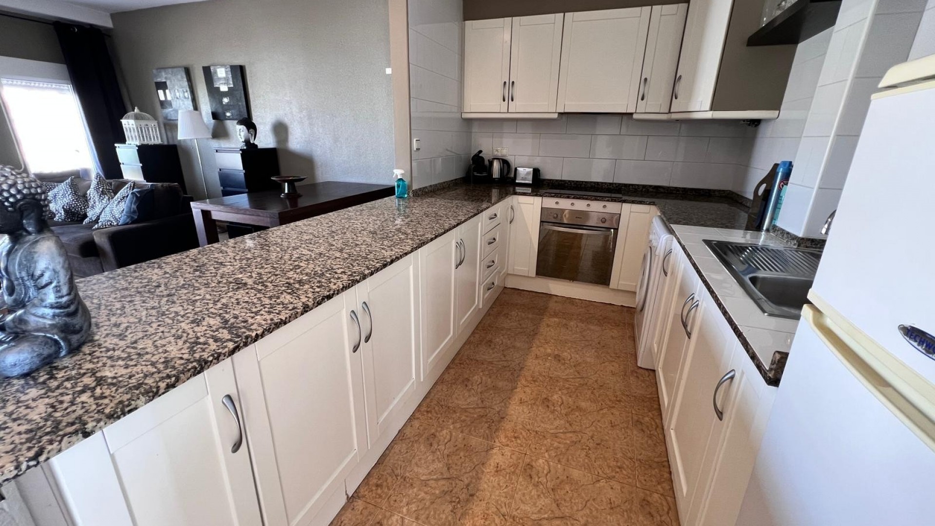 Denne charmerende lejlighed på første sal i San Fulgencio tilbyder et komfortabelt og praktisk rum, perfekt til helårsbolig eller ferie. Med tre soveværelser og to badeværelser (et ensuite) tilbyder den masser af plads til familie og gæster. Lejligheden har et tekøkken og er i god stand, klar til indflytning.