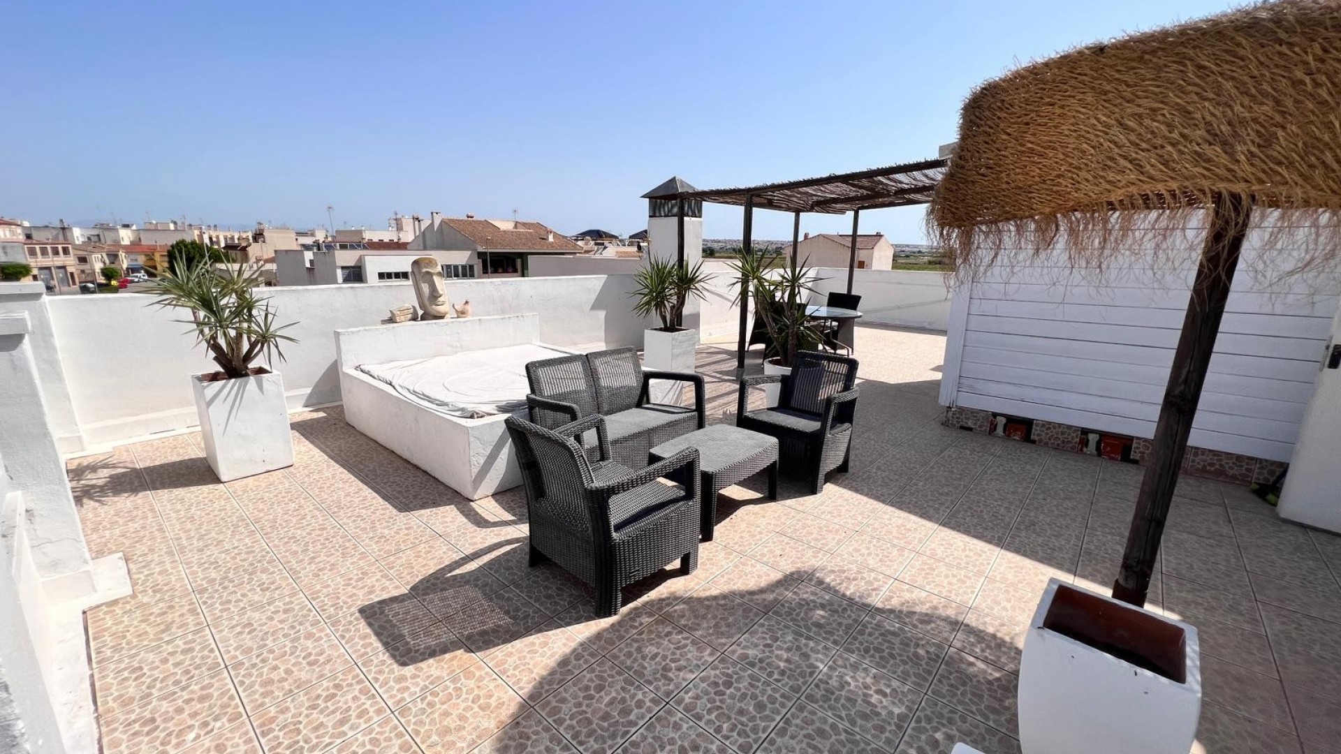 Ejendommen er fuldt møbleret og udstyret med alle nødvendige apparater. Den har aircondition, hvilket tilbyder en velkommen oase af fred og ro i de varmere måneder. Den lyse og rummelige bygning har en privat terrasse, perfekt til at nyde din morgenkaffe eller spise udendørs. En solterrasse på taget tilbyder ekstra plads til afslapning.