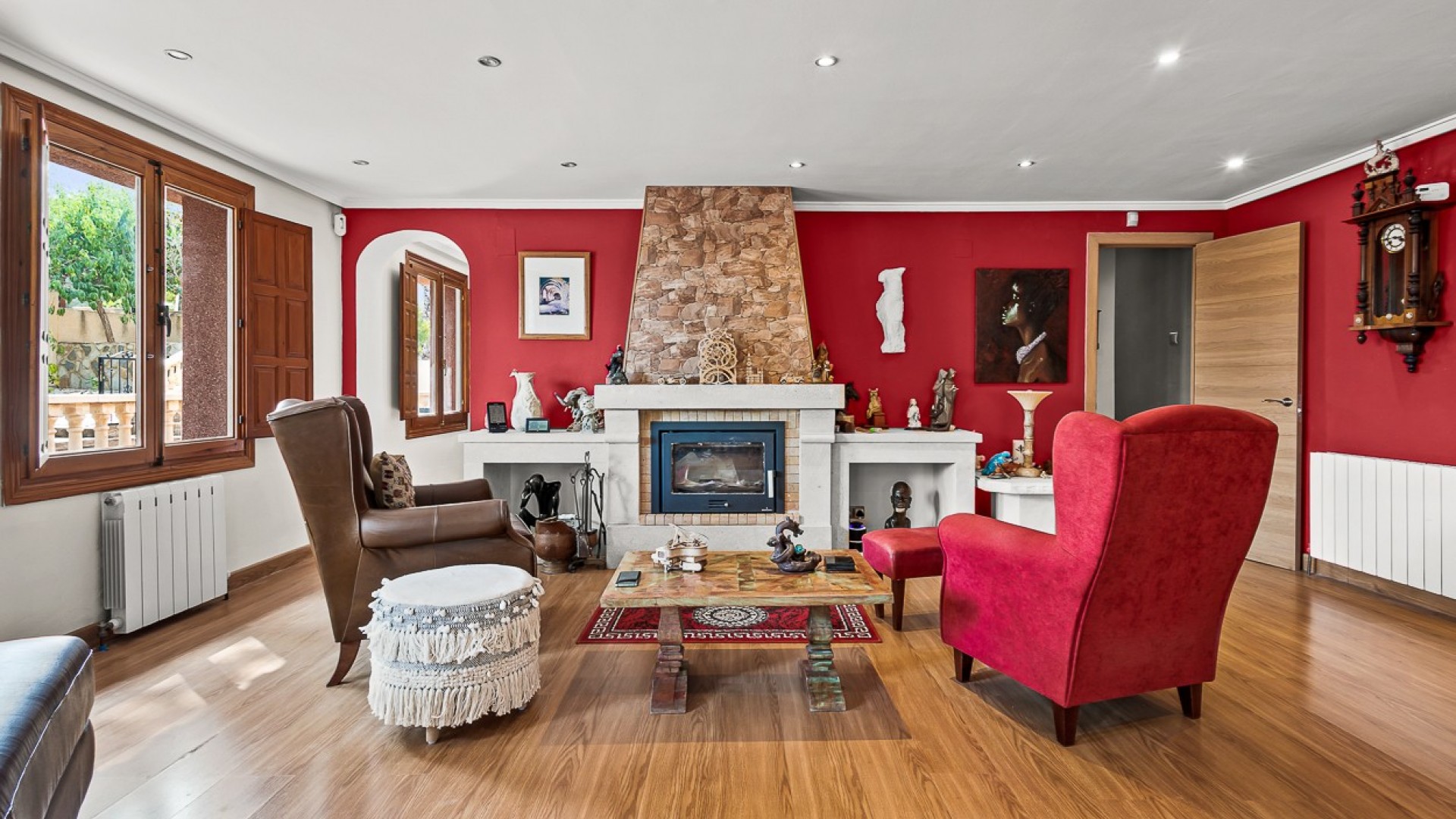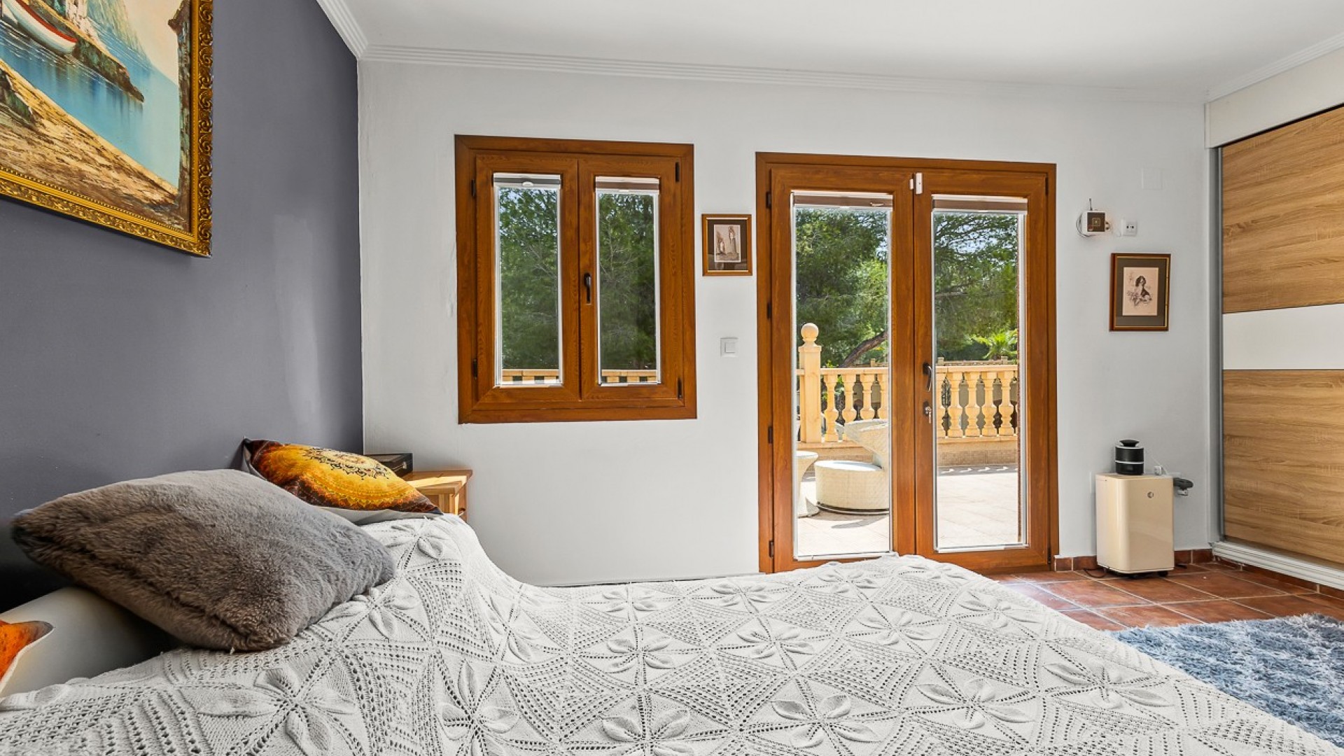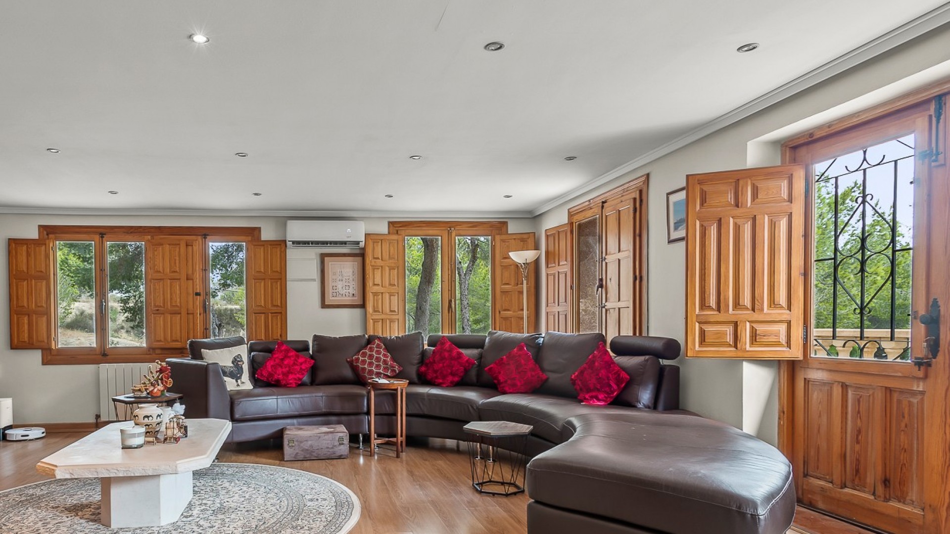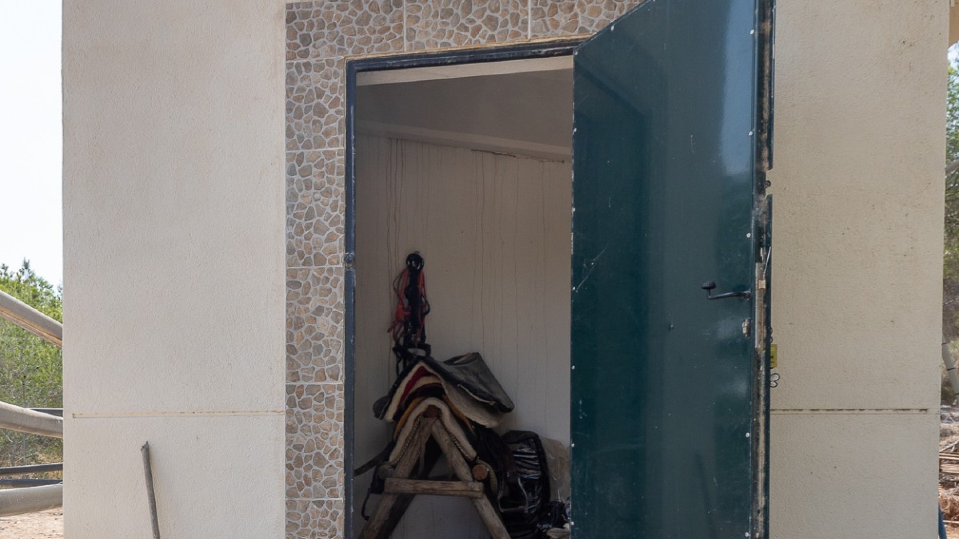 Beliggende i hjertet af Torremendo-landskabet, omgivet af middelhavsnatur og vidtstrakte udsigter, tilbyder denne storslåede to-etagers fritliggende villa den perfekte blanding af komfort, privatliv og landlig charme. Beliggende på en imponerende 11.000 m² grund, omgivet af skov, tilbyder ejendommen fred, plads og uendelige muligheder for dem, der søger en unik livsstil i naturlige omgivelser. Hovedhuset har fire rummelige soveværelser, to i stueetagen og to på øverste etage, alle fyldt med naturligt lys og tilbyder masser af plads til hyggelige, personlige rum. Der er to komplette badeværelser inde i huset, plus et ekstra udendørs toilet ved poolen - et betænksomt touch for bekvemmelighed på lange sommerdage udendørs. Den primære stue er hjertet af villaen med en traditionel brændeovn, der skaber en varm og indbydende atmosfære, perfekt til afslappende aftener i de køligere måneder. Det forholdsvis nye køkken med en uafhængig køkkenø kombinerer funktionalitet og stil og tilbyder et centralt knudepunkt for familielivet og underholdning af gæster. Udendørs stråler ejendommen virkelig. Den private swimmingpool er omgivet af solterrasser og afslapningsområder, mens en hævet terrasse med jacuzzi tilbyder panoramaudsigt over det omkringliggende landskab, hvilket gør det til et ideelt sted at spise udendørs eller blot nyde roen. Ejendommen inkluderer også tre garager, der giver rigelig plads til køretøjer, opbevaring eller værksteder. Rideentusiaster vil sætte pris på hestestalden, sadelrummet og Rega til 5 heste, der er designet til at rumme og passe dyr i komfort. Derudover sikrer installationen af solpaneler større energieffektivitet og bæredygtighed, der passer perfekt til villaens naturlige omgivelser. Med sin privilegerede beliggenhed, omgivet af bølgende marker og fredelige landskaber, er denne ejendom perfekt som permanent bolig for dem, der søger en rolig livsstil, eller som et landligt tilflugtssted væk fra byens travlhed. Ved at kombinere moderne bekvemmeligheder med naturens skønhed tilbyder denne villa en virkelig enestående måde at leve på i Torremendo.