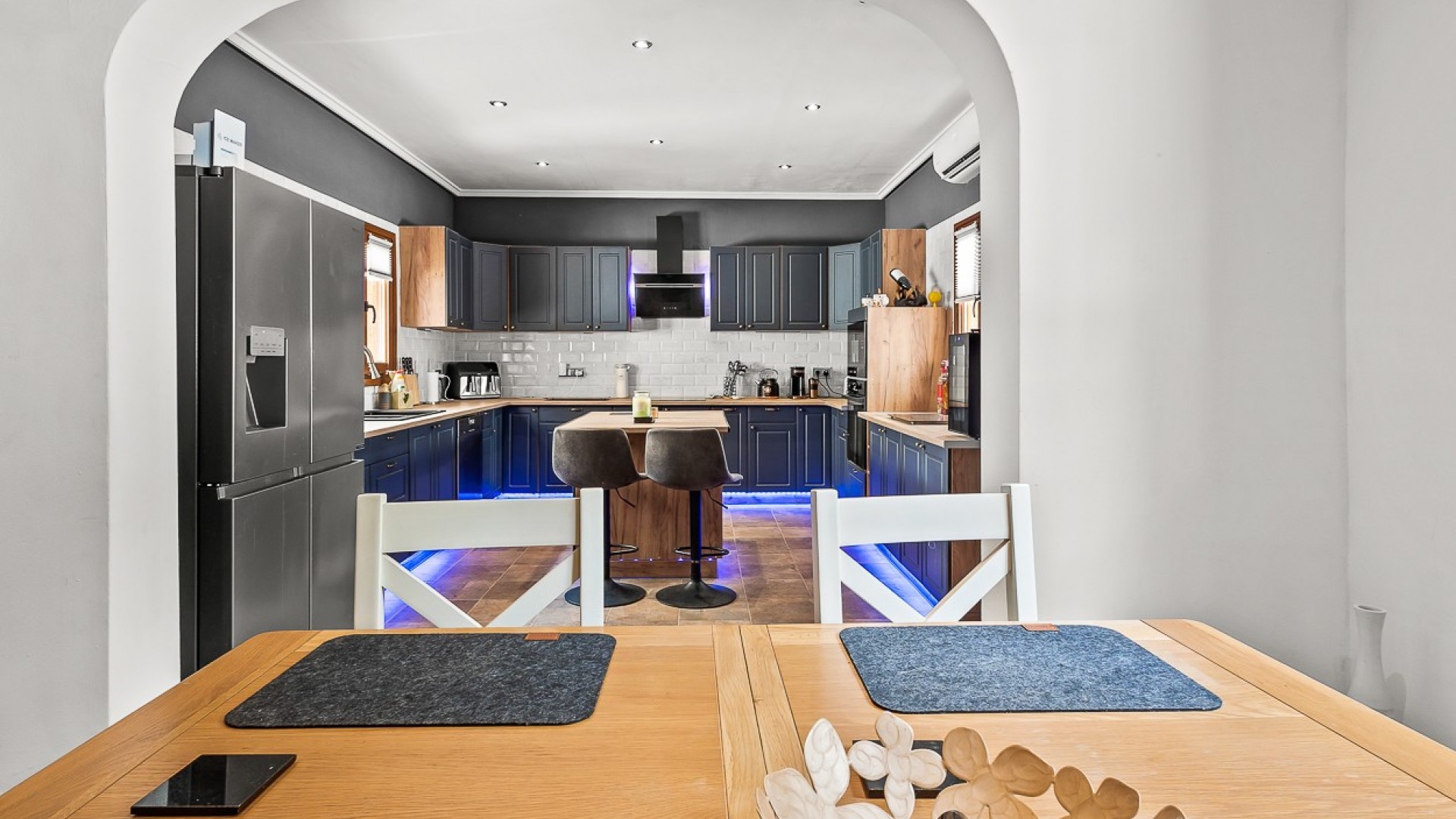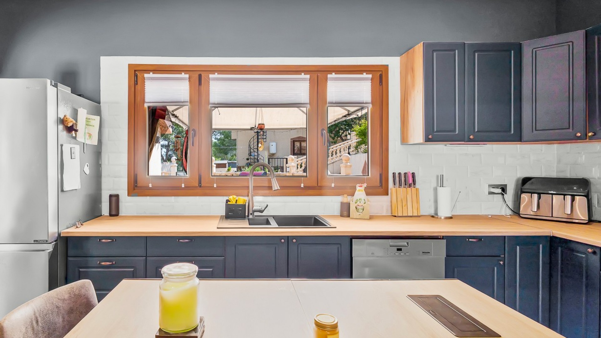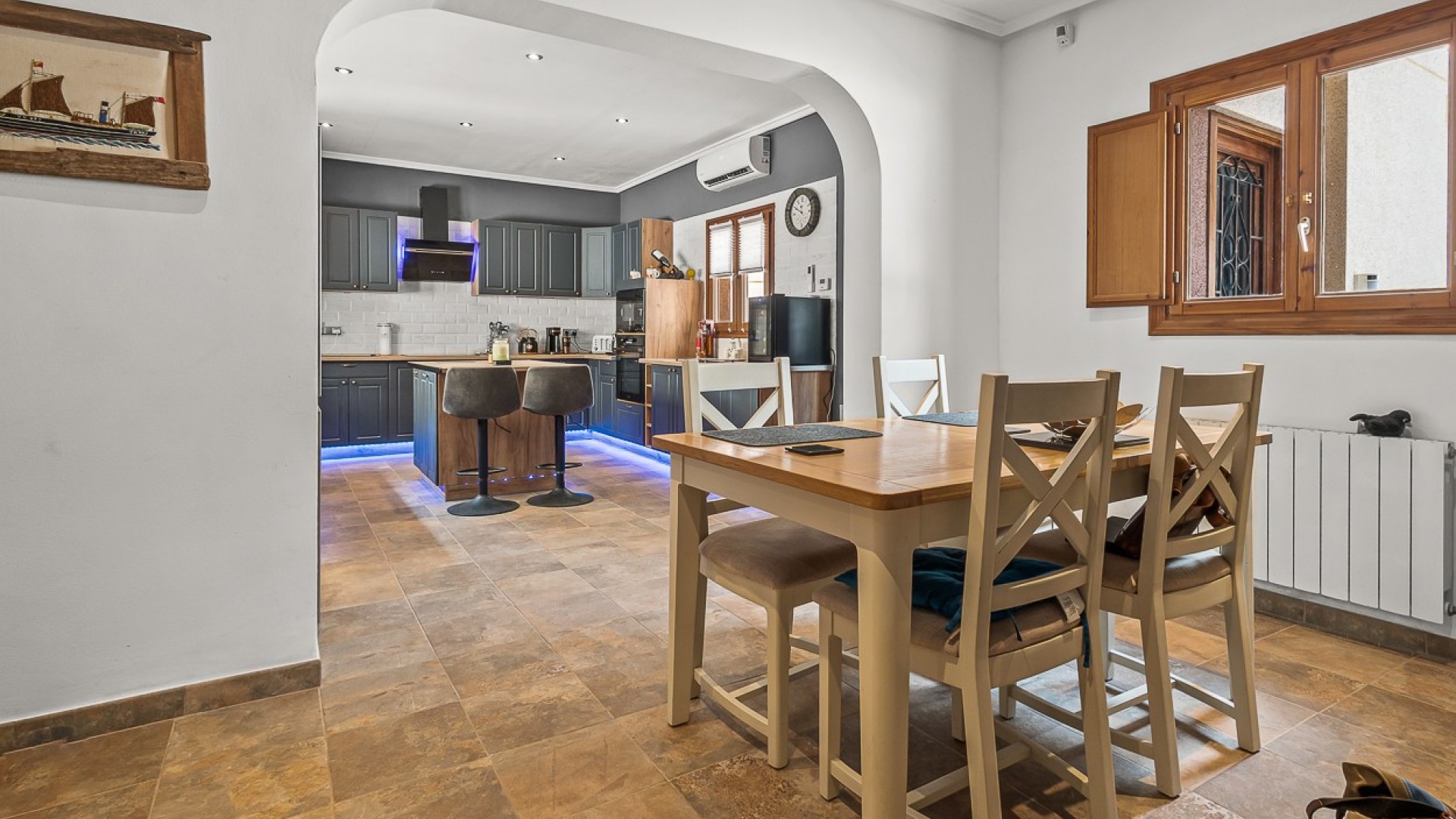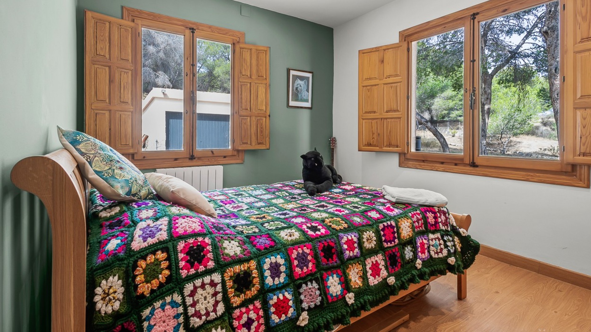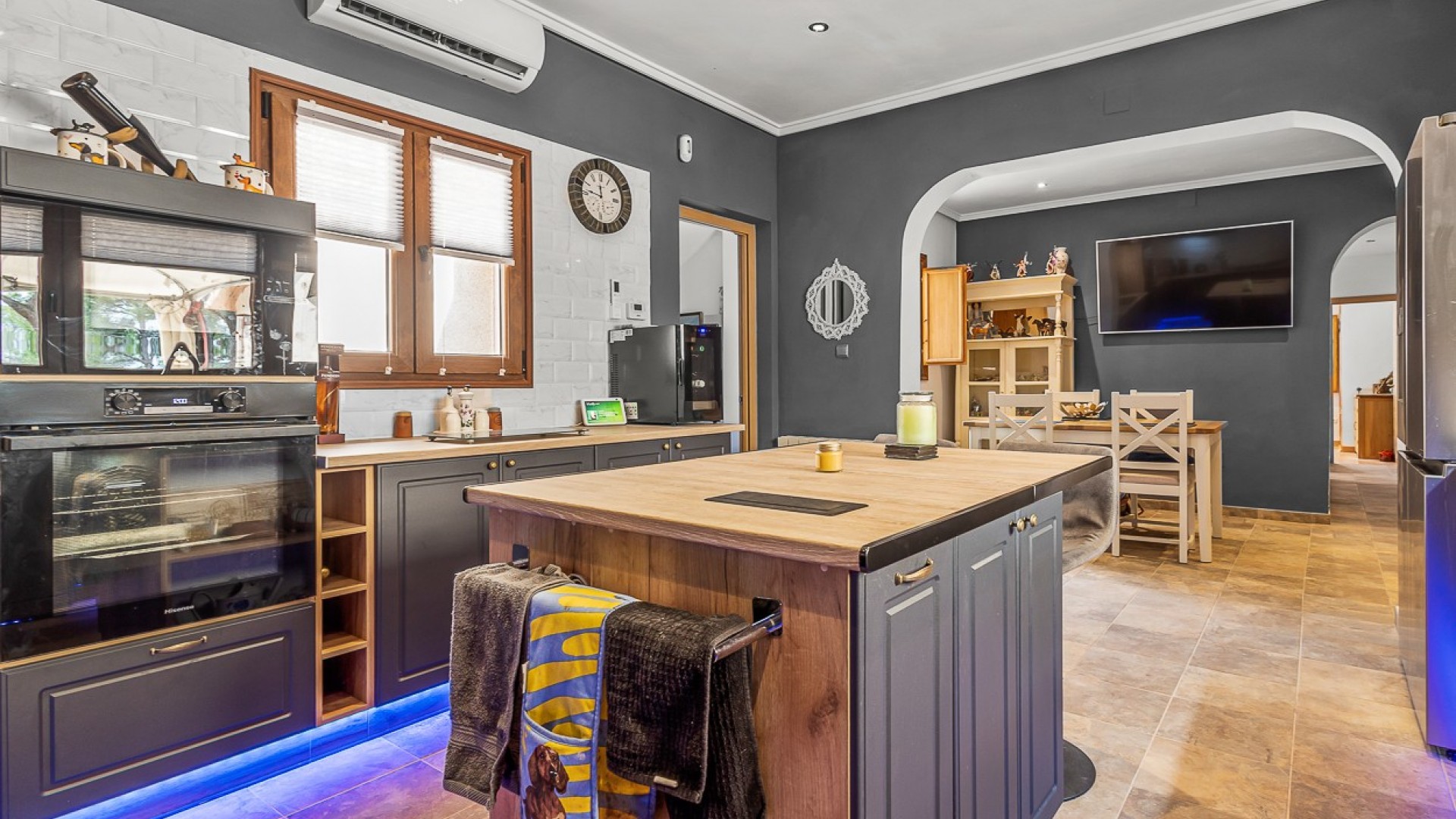 Beliggende i hjertet af Torremendo-landskabet, omgivet af middelhavsnatur og vidtstrakte udsigter, tilbyder denne storslåede to-etagers fritliggende villa den perfekte blanding af komfort, privatliv og landlig charme. Beliggende på en imponerende 11.000 m² grund, omgivet af skov, tilbyder ejendommen fred, plads og uendelige muligheder for dem, der søger en unik livsstil i naturlige omgivelser. Hovedhuset har fire rummelige soveværelser, to i stueetagen og to på øverste etage, alle fyldt med naturligt lys og tilbyder masser af plads til hyggelige, personlige rum. Der er to komplette badeværelser inde i huset, plus et ekstra udendørs toilet ved poolen - et betænksomt touch for bekvemmelighed på lange sommerdage udendørs. Den primære stue er hjertet af villaen med en traditionel brændeovn, der skaber en varm og indbydende atmosfære, perfekt til afslappende aftener i de køligere måneder. Det forholdsvis nye køkken med en uafhængig køkkenø kombinerer funktionalitet og stil og tilbyder et centralt knudepunkt for familielivet og underholdning af gæster. Udendørs stråler ejendommen virkelig. Den private swimmingpool er omgivet af solterrasser og afslapningsområder, mens en hævet terrasse med jacuzzi tilbyder panoramaudsigt over det omkringliggende landskab, hvilket gør det til et ideelt sted at spise udendørs eller blot nyde roen. Ejendommen inkluderer også tre garager, der giver rigelig plads til køretøjer, opbevaring eller værksteder. Rideentusiaster vil sætte pris på hestestalden, sadelrummet og Rega til 5 heste, der er designet til at rumme og passe dyr i komfort. Derudover sikrer installationen af solpaneler større energieffektivitet og bæredygtighed, der passer perfekt til villaens naturlige omgivelser. Med sin privilegerede beliggenhed, omgivet af bølgende marker og fredelige landskaber, er denne ejendom perfekt som permanent bolig for dem, der søger en rolig livsstil, eller som et landligt tilflugtssted væk fra byens travlhed. Ved at kombinere moderne bekvemmeligheder med naturens skønhed tilbyder denne villa en virkelig enestående måde at leve på i Torremendo.