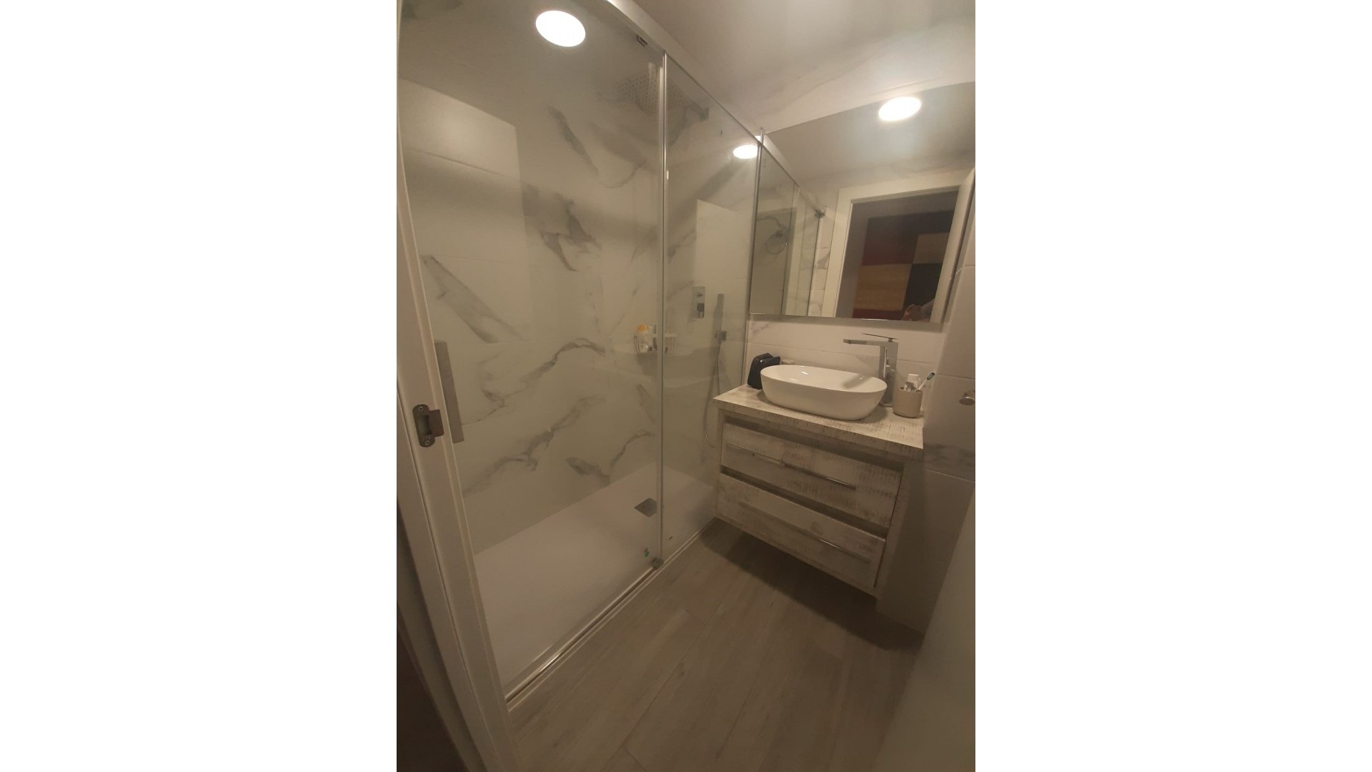 Vi tilbyder en hel etage på 124 m² bebygget (96 m² brugbar plads) i hjertet af Torrevieja. Den er i øjeblikket fordelt på en renoveret lejlighed på 60 m² med stue, separat køkken, 1 soveværelse og badeværelse samt to kontorer på 30 m², der i øjeblikket er udlejet indtil årets udgang med en samlet månedlig indkomst på €700.