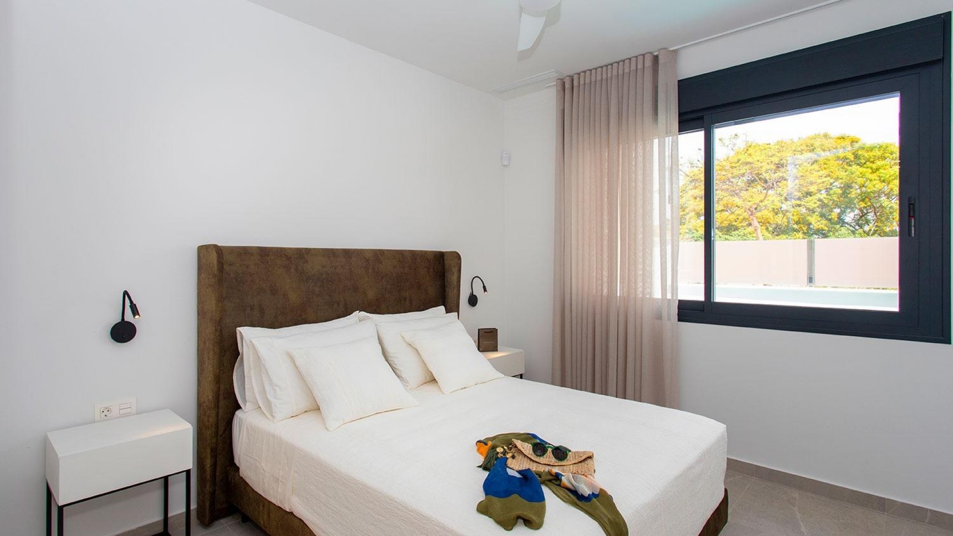 Nybyggede dobbelthuse i Sucina: sidste enhed fuldt udstyret og klar til indflytning Enestående mulighed i Sucina Dette er din chance for at sikre dig den sidste ledige enhed i dette moderne nybyggeri, der tidligere blev brugt som udstillingshus. Den er klar til indflytning og leveres fuldt udstyret med møbler, hvidevarer, indvendig og udvendig belysning, aircondition, oplader til elbiler og et udendørs sommerkøkken med køleskab. En unik nøglefærdig mulighed i en af de mest charmerende byer på Costa Calida. Moderne design med fokus på lys og komfort Disse dobbelthuse udmærker sig ved deres elegante og rene moderne design med indretninger, der er skabt for at maksimere det naturlige middelhavslys. De vigtigste opholdsrum har et åbent plan, hvor køkkenet og stuen smelter sammen og er forbundet med en stilfuld central køkkenø. Dette rum går direkte over i verandaen og poolterrassen, hvilket skaber en harmonisk indendørs-udendørs livsstil, der er ideel til solrige dage. Enkelt plan med privat pool og solarium Villaen har 3 soveværelser og 2 badeværelser på én etage samt et praktisk gæstetoilet udenfor ved poolområdet. Det store soveværelse er usædvanligt lyst og har eget badeværelse, walk-in-garderobe og direkte adgang til hovedterrassen. Ejendommen har også et imponerende solarium på 82 m2, der er perfekt til solbadning eller til at skabe en udendørs lounge. Villaen er bygget på en 211 m2 stor grund og har parkering på grunden. Fremragende beliggenhed tæt på alle faciliteter Villaen ligger kun en kort gåtur fra centrum af Sucina og har direkte adgang til daglige faciliteter såsom butikker, restauranter og supermarkeder. Sucina er en traditionel spansk by, der er blevet mere og mere populær i de senere år på grund af sin afslappede livsstil, autentiske atmosfære og nærhed til kysten. De smukke strande ved Costa Calida og Mar Menor ligger kun få minutter væk. Afstande til vigtige seværdigheder Murcia lufthavn 25 km Alicante lufthavn 75 km Strandene ved Mar Menor 15 km Nærmeste golfbane 4 km Havnen i San Pedro del Pinatar 20 km Lev et middelhavsliv i høj kvalitet Disse villaer er bygget med fremragende materialer og designet med komfort for øje. De tilbyder en enestående mulighed for at nyde åbne rum, naturligt lys og ren luft året rundt. Kontakt os i dag for at aftale et besøg og sikre dig dette eksklusive, nøglefærdige hjem i Sucina.