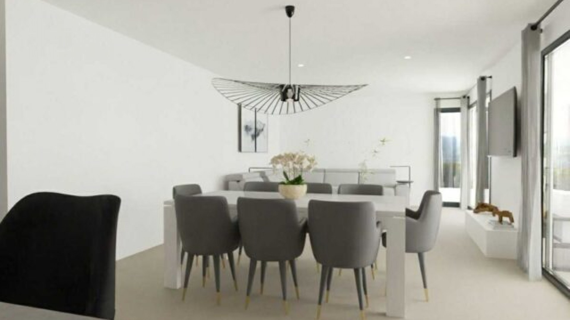 Entdecken Sie die Eleganz und den Komfort dieser wunderschönen freistehenden Villen mit 129 m², die Ihnen ein außergewöhnliches Wohnumfeld auf einer Ebene bieten. Genießen Sie die Privatsphäre dieser Villa, entspannen Sie in Ihrem eigenen Garten oder am Pool und schaffen Sie sich eine Oase der Ruhe, um die heißen Sommertage zu genießen. Die Villa verfügt über Stadtwasser, Strom, eine Vorinstallation für eine Klimaanlage (warm/kalt) und ist an die Kanalisation angeschlossen. Das Anwesen ist in zwei Hauptbereiche unterteilt: Tagesbereich: Hier finden Sie ein geräumiges Wohn-/Esszimmer mit offener Küche, die durch ihre zwei großen Fenster mit Blick auf den Garten und den Pool mit der großen Veranda im modernen Stil verbunden ist. Nachtbereich: Dieser Bereich verfügt über drei Schlafzimmer. Das Hauptschlafzimmer hat ein großes Ankleidezimmer und ein eigenes Bad. Es gibt außerdem ein zweites Badezimmer für die restlichen Schlafzimmer und den Rest des Hauses. Sie können das Grundstück Ihrer Wahl wählen (zwischen 504 m² und 1.039 m²). Preis ab 339.700 € (Grundstück inklusive). Diese Villa liegt in einer ruhigen Wohngegend und bietet Ihnen Privatsphäre und Ruhe, ist aber gleichzeitig vor neugierigen Blicken geschützt. Annehmlichkeiten wie Geschäfte, Supermärkte und Restaurants sind bequem zu Fuß erreichbar. Es ist die perfekte Balance zwischen ruhiger Abgeschiedenheit und den Annehmlichkeiten des modernen Lebens. Der Flughafen Alicante und die Strände sind nur 30 Minuten entfernt.