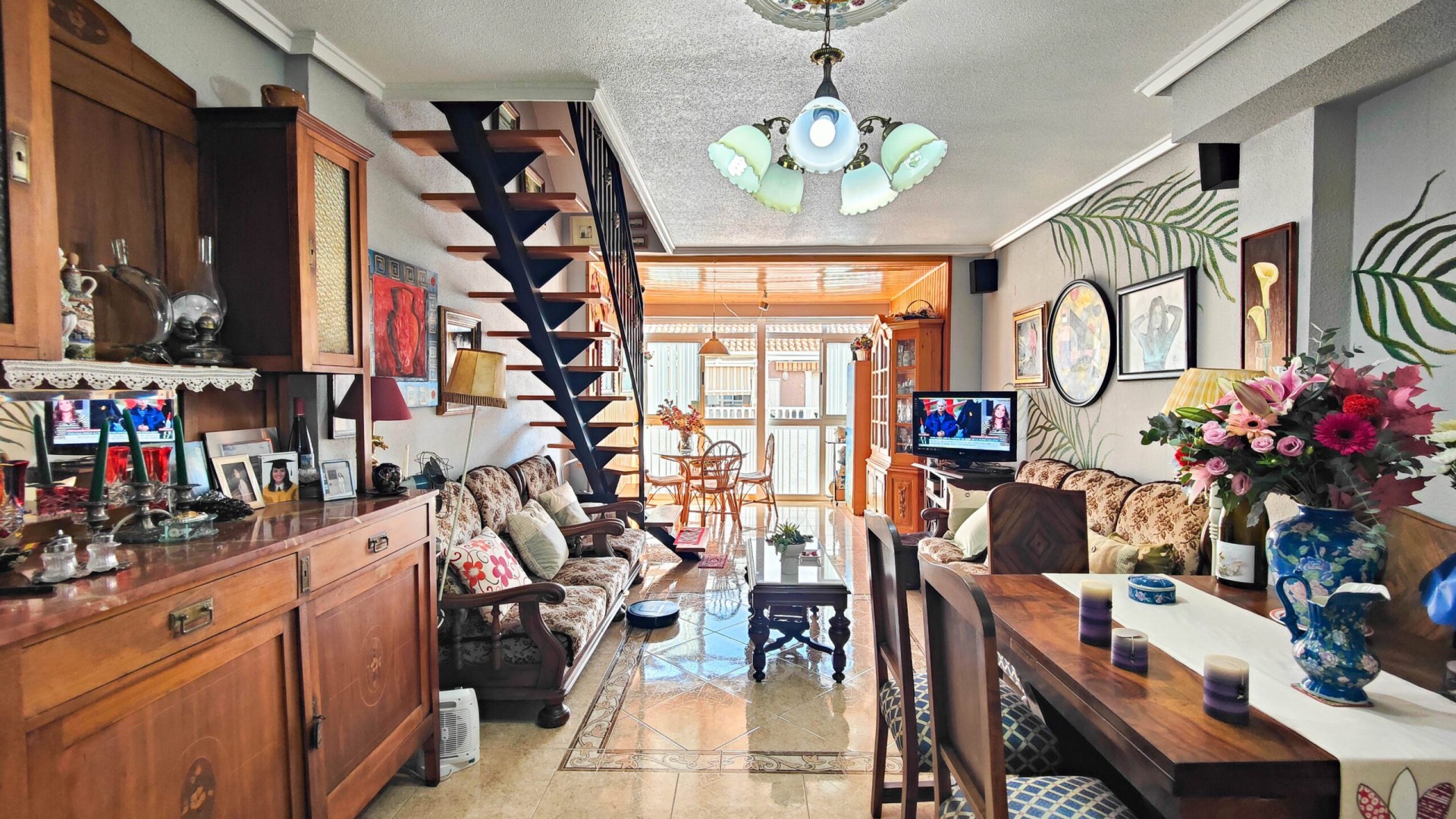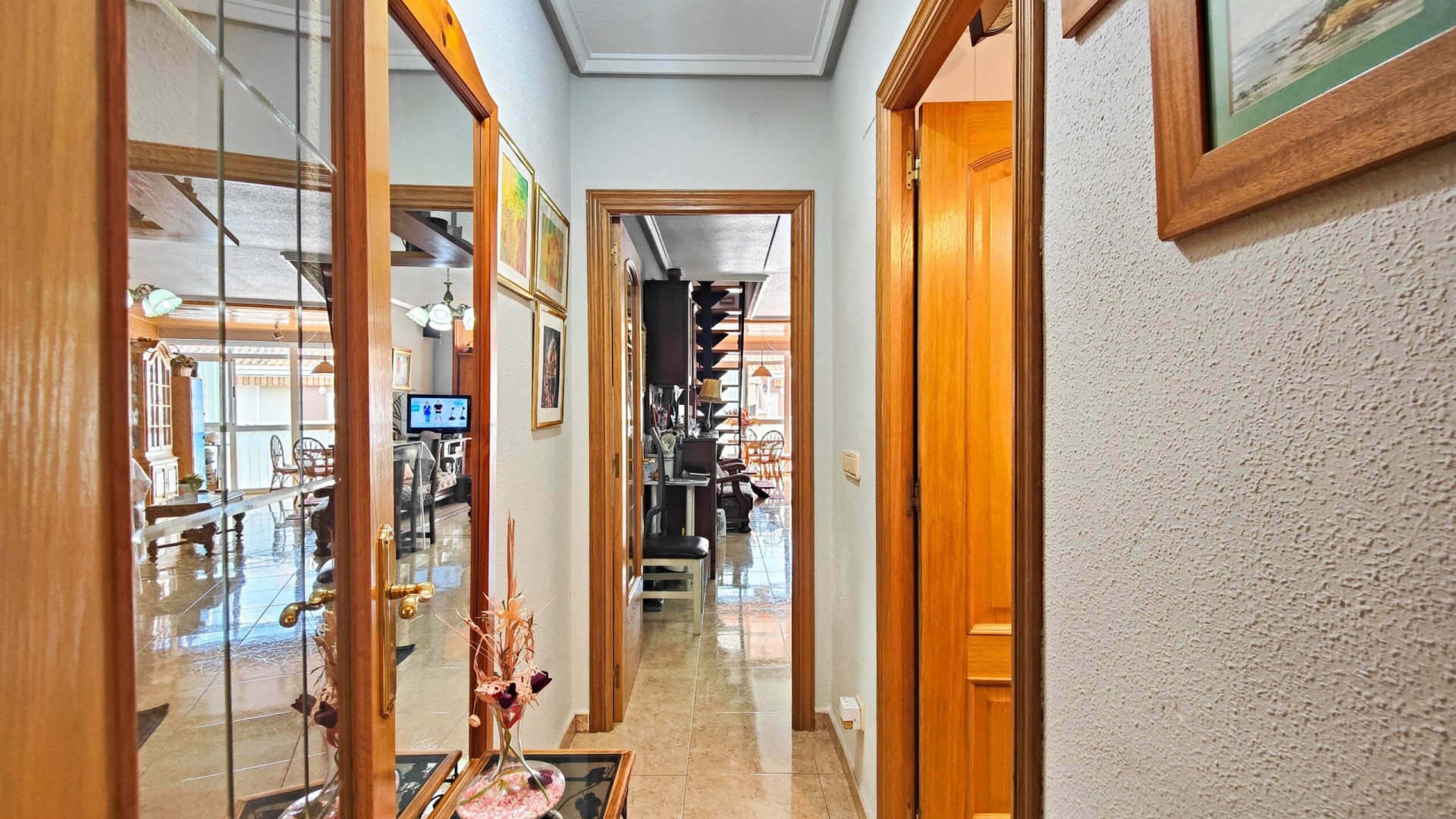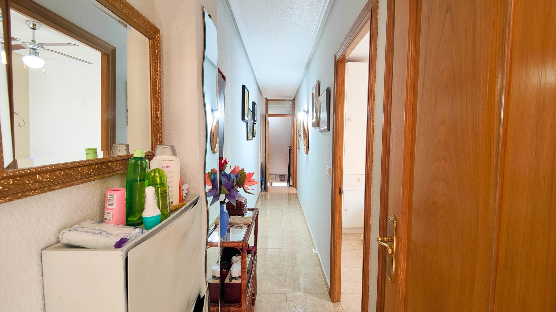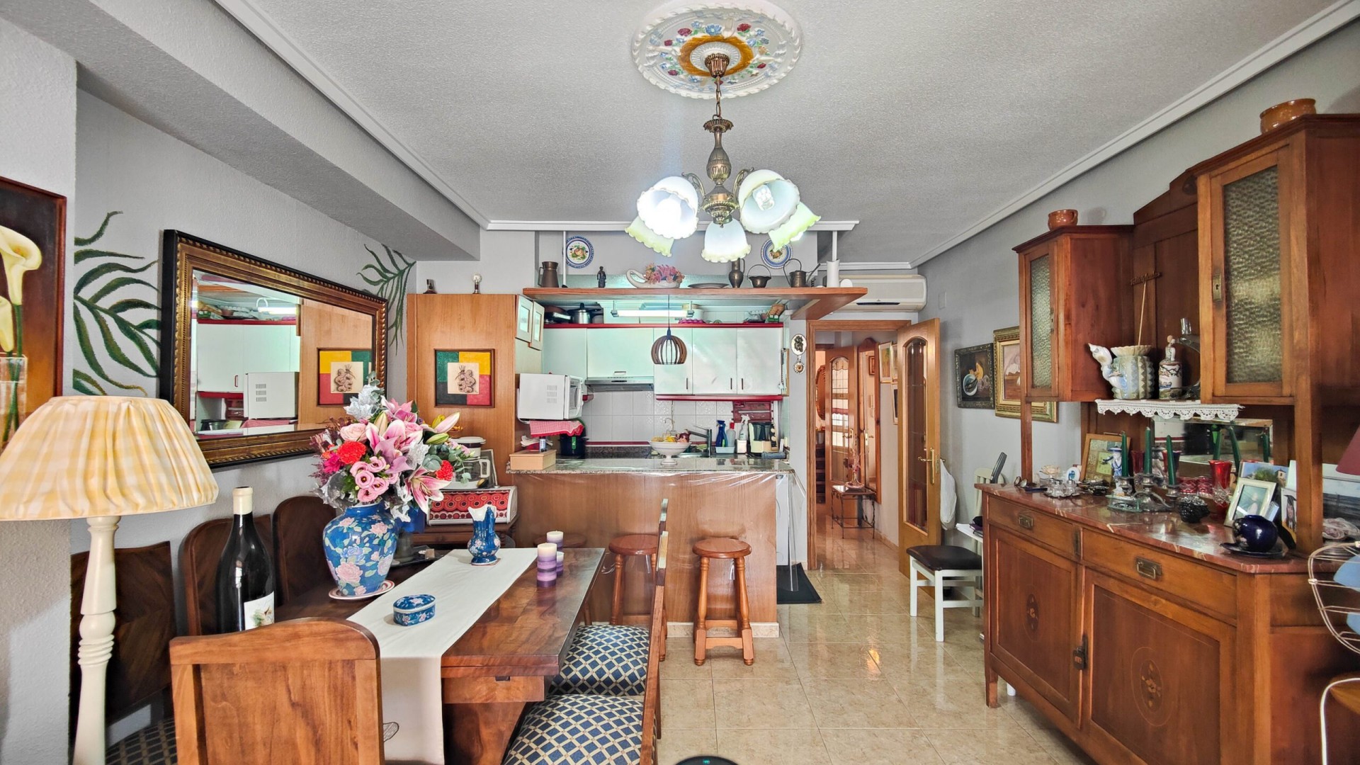 Geräumiges Penthouse mit 3 Schlafzimmern und 2 Bädern zum Verkauf in Playa del Cura, Torrevieja – 250 m vom Strand „Playa de los Locos“ und 600 m vom Strand „Playa del Cura“ und der Promenade. Schönes Duplex-Penthouse zum Verkauf in Playa del Cura, Torrevieja, nur 250 Meter vom Strand „Playa de los Locos“ und 600 Meter vom Strand „Playa del Cura“ und der Promenade. Dieses nach Osten ausgerichtete Objekt liegt im fünften Stock und verfügt über einen Aufzug, sodass es den ganzen Tag über viel natürliches Licht bekommt. Das Apartment erstreckt sich über zwei Etagen und bietet ein helles und geräumiges Wohnzimmer mit Essbereich, eine komplett ausgestattete offene Küche und eine integrierte verglaste Terrasse, die sich perfekt für den ganzjährigen Genuss eignet. Auf dieser Ebene gibt es auch ein komplettes Badezimmer mit Dusche und Fenster sowie eine Eingangshalle. Im Obergeschoss finden Sie 3 Schlafzimmer, eines mit privater Terrasse, und ein zweites komplettes Badezimmer. Das Penthouse wird komplett möbliert und mit Geräten ausgestattet verkauft und ist sofort bezugsfertig. Ein Stellplatz in der Tiefgarage ist im Preis inbegriffen. Ideal als Ferienhaus, Dauerwohnsitz oder Anlageobjekt an der Costa Blanca. Verpassen Sie nicht die Chance, dieses Penthouse mit 3 Schlafzimmern und 2 Bädern nur wenige Minuten von den Stränden in Torrevieja entfernt zu kaufen.