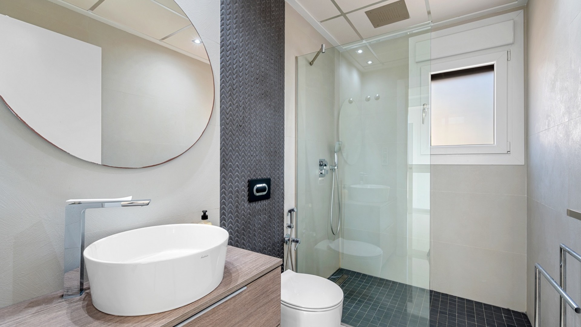 Diese im Jahr 2018 erbaute Immobilie befindet sich in einer ruhigen Wohngegend von Ciudad Quesada. Sie bietet eine funktionale Raumaufteilung sowie gut genutzte Innen- und Außenbereiche. Die Gesamtfläche beträgt 101 m² auf einem Grundstück von 184 m² mit drei Schlafzimmern, drei Bädern, einem Keller und einer Dachterrasse. Im Erdgeschoss befinden sich das Wohnzimmer, der Essbereich und eine offene Küche mit Kochinsel. Auf dieser Etage gibt es außerdem ein Schlafzimmer mit Einbauschrank, ein komplettes Badezimmer, einen Hauswirtschaftsraum sowie direkten Zugang zum Garten und zum privaten Pool. Im Obergeschoss befinden sich zwei weitere Schlafzimmer. Das Hauptschlafzimmer verfügt über ein eigenes Bad und Zugang zu einer privaten Terrasse. Das zweite Schlafzimmer liegt neben einem weiteren Badezimmer. Ein Flur verbindet die Räume. Der Keller ist derzeit als Freizeitraum mit Billardbereich eingerichtet und bietet zusätzlichen Raum für verschiedene Nutzungen. Die private Dachterrasse verfügt über eine voll ausgestattete Außenküche mit Zugang vom Inneren des Hauses – ideal, um das ganze Jahr über draußen zu genießen. Im Außenbereich bietet die Immobilie einen privaten Pool (3,30 x 6,50 Meter), einen Garten mit Kunstrasen sowie einen Stellplatz auf dem Grundstück. Als Eckhaus profitiert das Haus von mehr Tageslicht und zusätzlicher Privatsphäre. Die Immobilie wird komplett möbliert verkauft und ist mit Klimaanlage, Einbauschränken, elektrischen Rollläden, Insektenschutzgittern, Alarmsystem und ausgestatteter Küche versehen. Sie eignet sich sowohl als Dauerwohnsitz als auch als Ferienimmobilie.