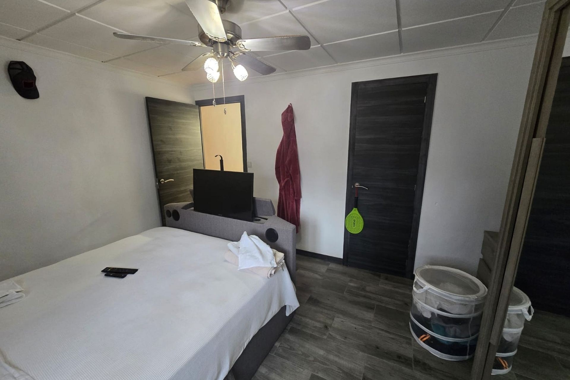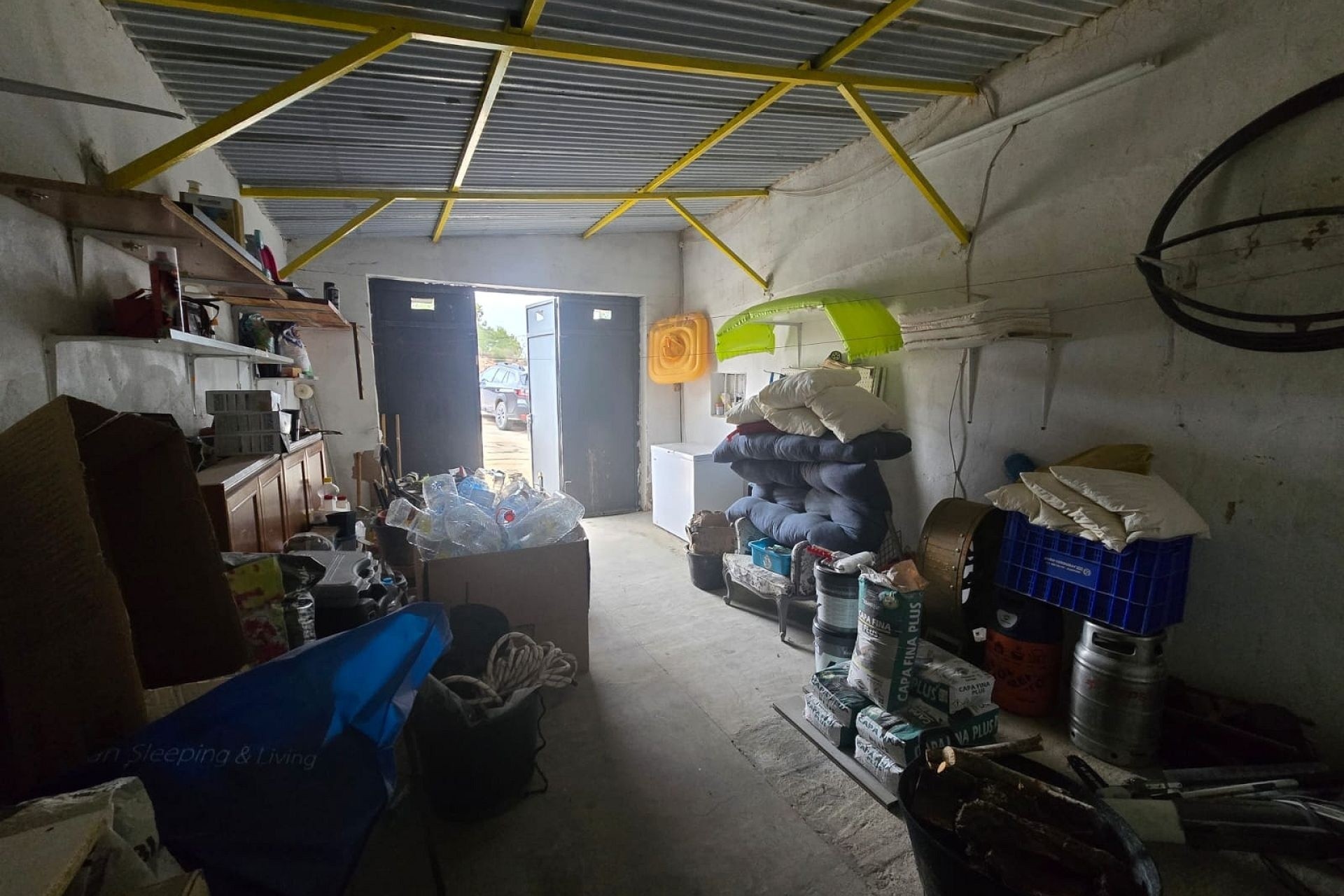 Das Haupthaus verfügt derzeit über ein Badezimmer. Da das Hauptschlafzimmer jedoch an die Garage angrenzt, bietet sich die Möglichkeit, durch die Einbeziehung eines Teils der Garage ein Badezimmer en suite einzurichten, falls gewünscht. Die geräumige Garage selbst ist vielseitig nutzbar und bietet eine kleine Küchenzeile sowie einen eigenen, privaten Innenhof.