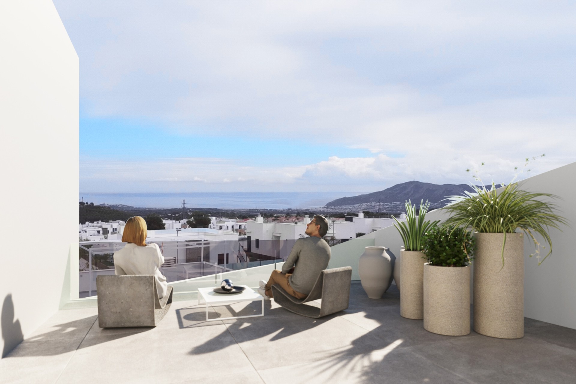 Die Außenbereiche dieser Häuser sind darauf ausgelegt, das mediterrane Klima zu genießen. Jede Immobilie verfügt über einen privaten Garten, ideal zum Entspannen oder für Outdoor-Aktivitäten. Darüber hinaus verfügen sie über eine Terrasse und ein Solarium, ideal zum Sonnenbaden oder um den atemberaubenden Meerblick zu genießen. Das Vorhandensein eines privaten Pools in jedem Haus verleiht einen Hauch von Luxus, der es den Bewohnern ermöglicht, sich abzukühlen und entspannende Momente im Komfort ihres eigenen Zuhauses zu genießen.