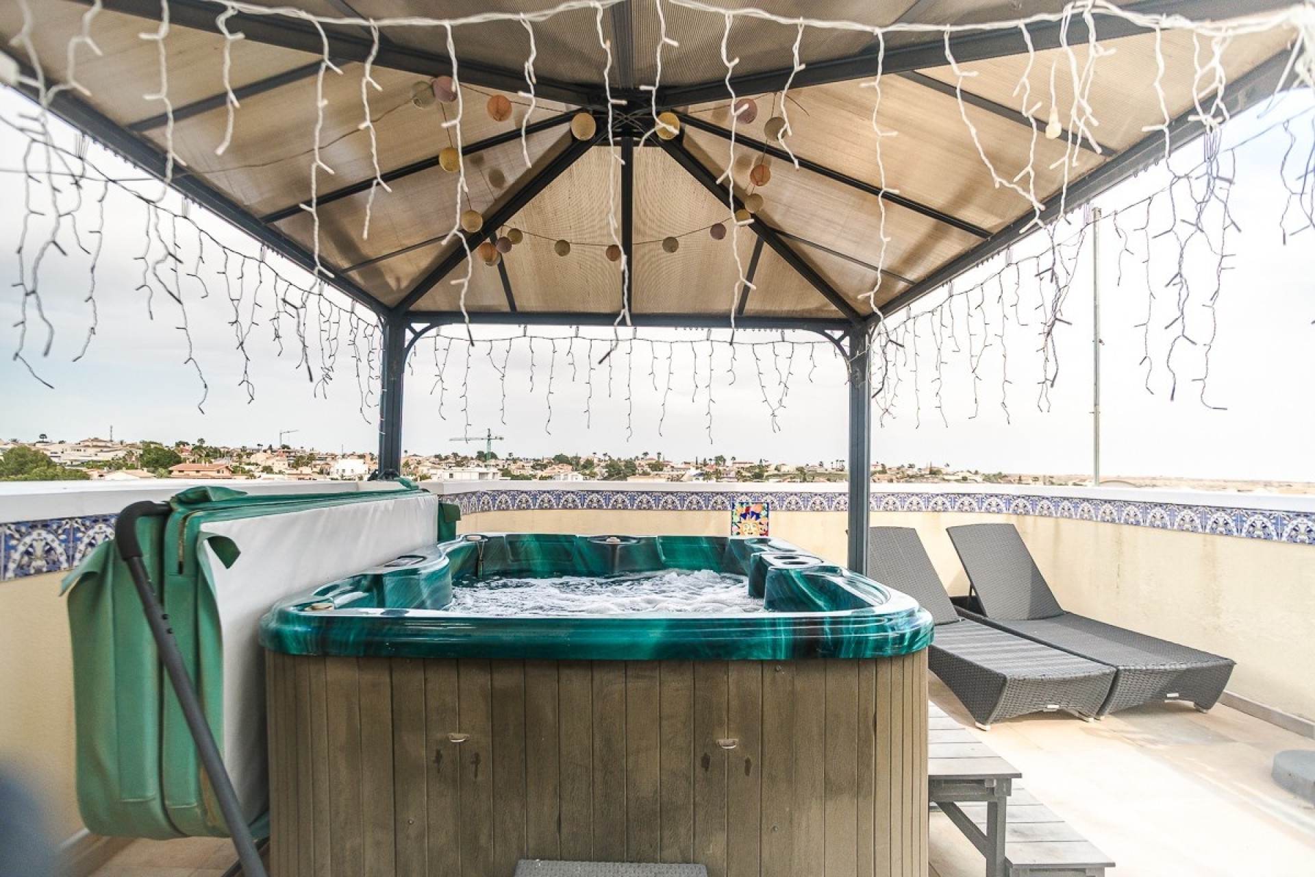 In bester Lage in La Marina befindet sich diese wunderschöne freistehende Villa mit Gästehaus und Meerblick in Guardamar del Segura. Ruhig gelegen und dennoch nur wenige Gehminuten von Geschäften, Restaurants und allen Annehmlichkeiten entfernt – die perfekte Balance zwischen Komfort und Lebendigkeit.