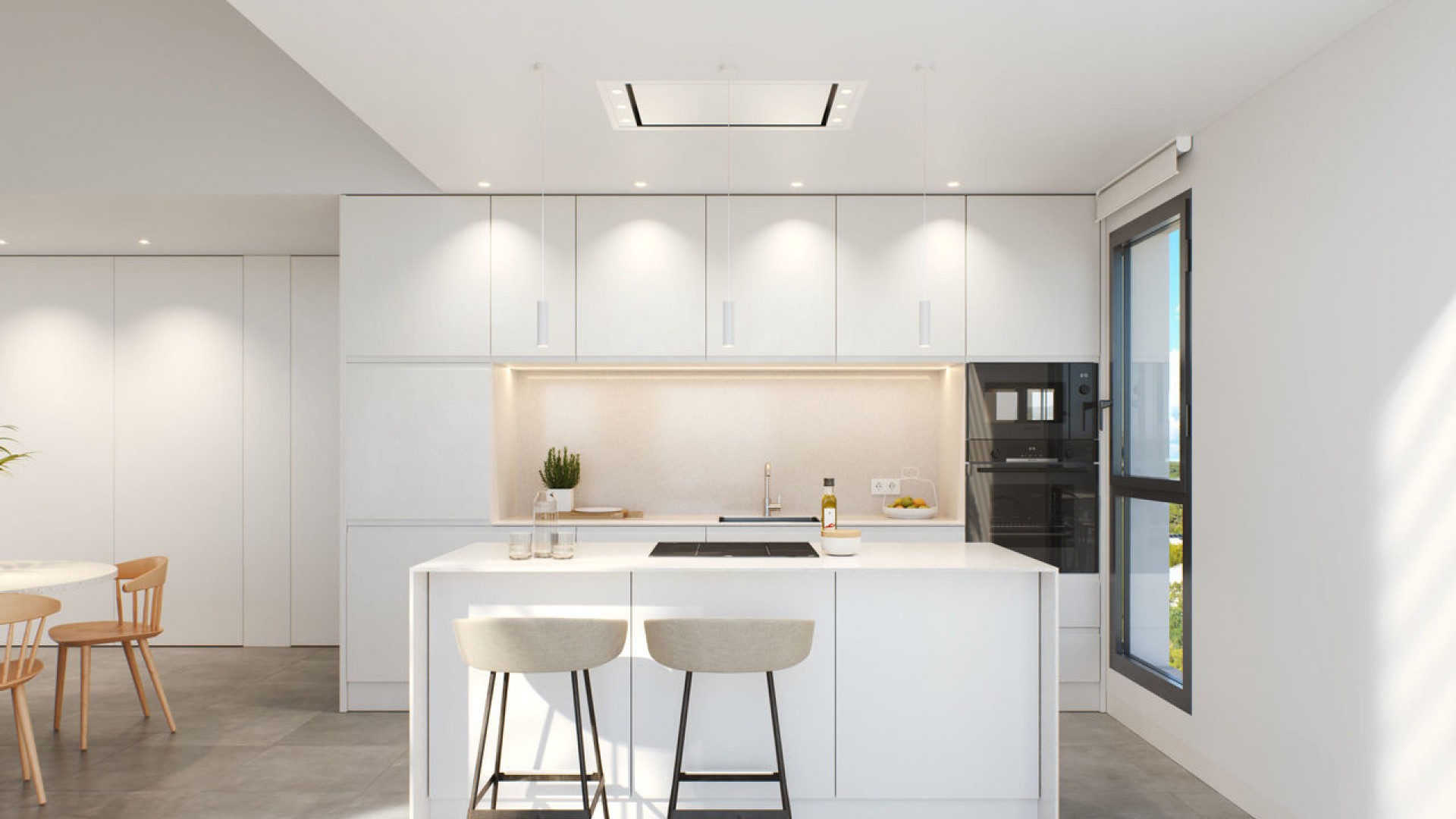 The apartments of the Mandarino Community are in a privileged location with sea views, in one of the highest areas in the heart of Las Colinas Golf & Country Club, south of Alicante. Its design, wrapped in the soul of the Mediterranean forest, is influenced by a Nordic-style architecture. The landscaping, integrated into the environment, seeks the feeling of home, exclusivity, elegance, and style. The materials used and their chromatic range contribute to the integration into the orography and the natural environment. This community is made up of 19 apartments distributed in two blocks. The types of properties range from spectacular and bright penthouses with double-height ceilings, creating a feeling of openness and transparency, to comfortable 2 or 3-bedroom apartments. All houses enjoy large and deep terraces with sliding windows and views of nature. The kitchen, designed under an open concept, is fully equipped with integrated appliances. All apartments include air conditioning system and underfloor heating in bathrooms. In addition, in the case of the penthouses, they have a private solarium with pre-installation for a Jacuzzi and pergola, on the contrary, the ground floors have programmable irrigation and lighting systems for the terraces and a landscape design based on the use of natural materials and premises to achieve a complete integration with nature. A differentiating aspect of the 3-bedroom apartments in block 1, facing southeast and southwest, is their dressing room. In addition, the Mandarino community stands out for its large communal gardens with a children’s play area, a viewpoint facing the Mediterranean forest and an infinity pool. Lastly, all properties have special facilities such as the osmosis system in the kitchen, video intercom with password access and security recording, home automation system, community water softener and pre-installation of a charging point for electric vehicles. The project has been developed by the architecture studio ADORAS Atelier Architecture from Alicante.