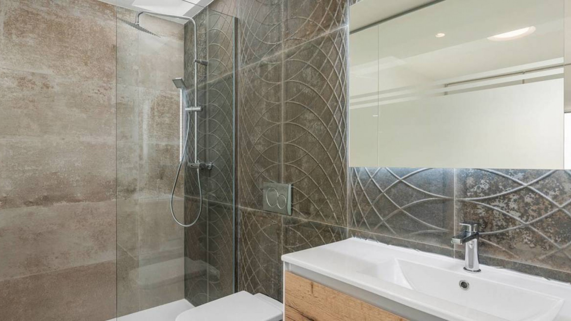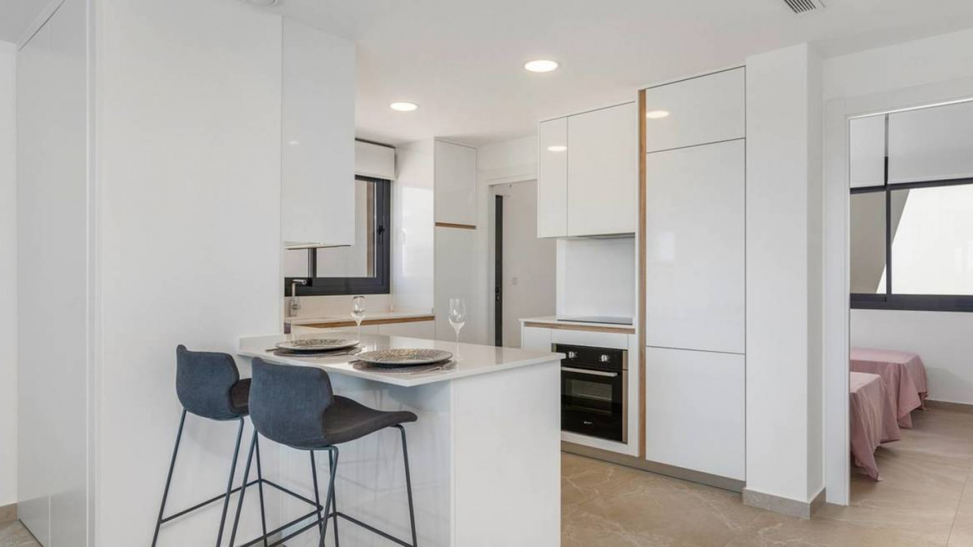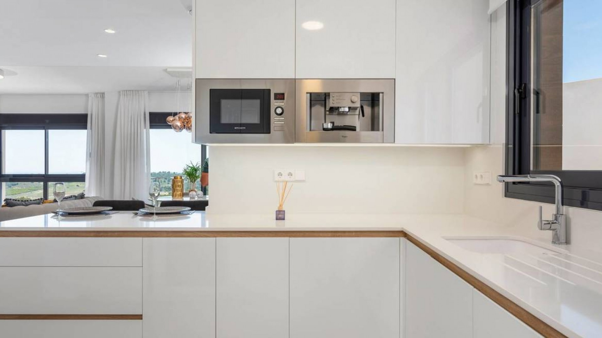 Bellavista boasts some spectacular and contemporary properties on the market, with this villa we deliver one of the best. A beautifully designed villa boasting 3 bed and 3 bathrooms, private pool, private parking and spectacular views. Fully furnished to the highest standards and includes the basement pre installation included and air conditioning throughout! The main floor comprises of two excellent sized bedrooms the bigger one including ensuite. There is a family bathroom on this level also. A fully fitted designer kitchen, with all appliances you would need to prepare those family meals or entertain your guests. This follows through into the bright and airey lounge / dining areas. There is access through sliding doors to a sun terrace giving views of you wonderful pool or the countryside beyond The third floor is home to the master bedroom, fantastic size complete with ensuite and a superb terrace with uninterrupted views of the area These villas are far and few between, book an appointment to view today, you won't be disappointed!