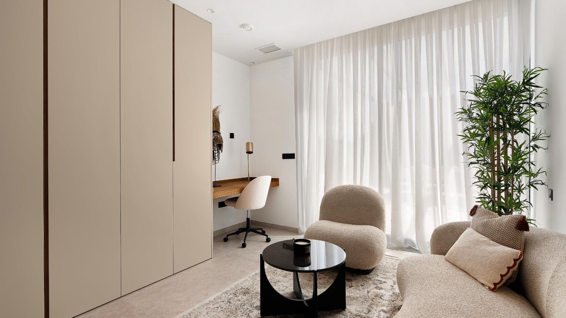 NOA GARDEN residential, adjacent to the Urb. Coblanca in Benidorm, is made up of 9 independent villas, each with its garden, outdoor pool and solarium terrace. This urbanization is the safest in the area, equipped with perimeter security and night surveillance for your complete peace of mind.~~The villas are very spacious and have more than 300 m2 built (approx. 100 m2 per floor). They are distributed over two floors above ground, the semi-basement and, in addition, the solarium terrace with panoramic views from Calpe to Benidorm.~~On the ground floor there is a double bedroom, a bathroom, kitchen with island equipped with high-end Miele appliances, the dining area and a living room that opens to the porch, garden and pool.~~The first floor houses three double bedrooms and three bathrooms (two of them en suite), as well as an open terrace in the master bedroom.~~The semi-basement floor has independent access from the plot. It has an interior garden that provides natural light and cross ventilation, as well as the laundry and ironing room to where the laundry duct descends. There is the possibility of enabling a guest apartment in the basement. Additionally, each villa is equipped with a charging station for electric vehicles. With a 481 m² plot, south and east orientation, and energy class A, this property is not only spacious and modern, but also energy efficient.~