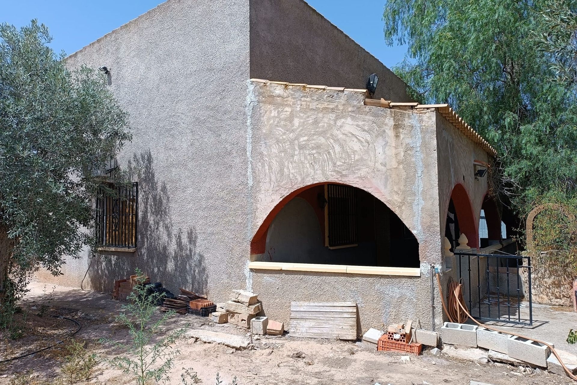 283m2 Country House built on a plot of 7,096 m2, about 6 km from Jumilla. It consists of 3 bedrooms, 2 bathrooms, living room and open-plan kitchen with bar. It has a 90 m2 garage and a car port. Stoneware floors. Fireplace. Sliding aluminium exterior carpentry. There are irrigated olive trees planted on the plot. It is paved up to the door. Fenced. Action and irrigation water point. Mains electric.