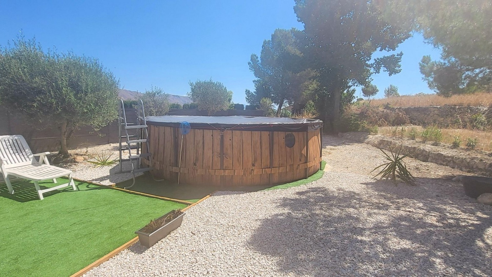 To the front of the property, you'll find a spacious 927m² garden, designed for maximum privacy and outdoor enjoyment. It includes an above-ground pool, sunbathing terraces, BBQ area, and shaded seating—ideal for soaking up the Mediterranean lifestyle.