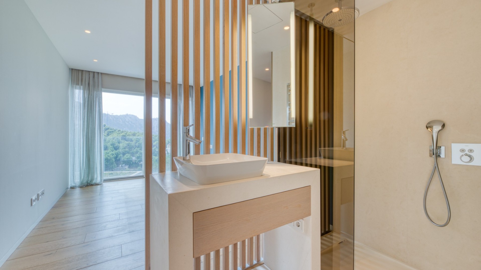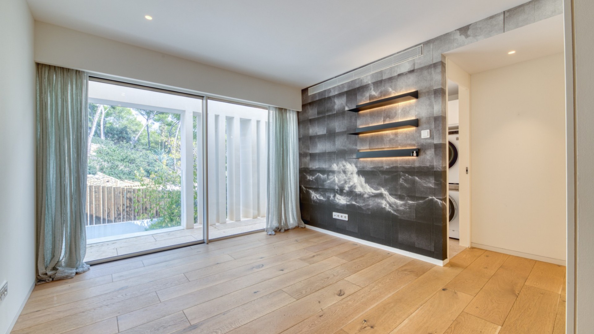 What is there better than to live in a modern, spacious villa, which offers splendid sea views and has its own pool? Find out more about this dream property in the renowned GRAND FOLIES complex south-west on the island. The modern villa offers approx. 280 m² of living space (approx. 493 m² constructed area) on the first floor with a very spacious living / dining area with open kitchen, guest WC and patio (5m²-). From this living level there is access to the outside area with covered terrace (41m²), private swimming pool (20m²), lounge area (15m²), further open terrace and sea and mountain views. On the second floor there are three bedrooms, each with its own en-suite bathroom and dressing area. All three bedroom suites offer fantastic views of the mountains and the sea. A special feature of this house is another large open space on the second floor with adjoining utility room and guest WC, which could be converted into a 4th bedroom with en suite bathroom. In the basement there is a technical room, further rooms for free use and direct access to the underground garage, where there is a private parking space. There is another uncovered parking space in front of the house entrance. The communal area offers beautifully landscaped gardens, a large pool area with sea views and fitness room, as well as a clubhouse with concierge service, heated indoor pool, whirlpool, dry sauna, steam sauna, further fitness room, offices for private use and a bar area with a beautiful outdoor terrace. The modern luxury residence New Folies is located in the popular Cala Llamp bay in Port d'Andratx in the southwest of Mallorca. The bay is known for the Gran Folies Beach Club with direct sea access, restaurant, bar and swimming pool. The harbor of Port d'Andratx is only a few minutes away by car, but is also easily accessible on foot. Here you will find a variety of restaurants, bars and boutiques. In the neighboring village of Camp de Mar there is a fantastic sandy beach and the famous Golf de Andratx golf course. The island's capital, Palma de Mallorca, is around 25 minutes away by car. Organize your viewing with us now and don't wait until somebody else buys this stunning villa! Online viewings can be also arranged.