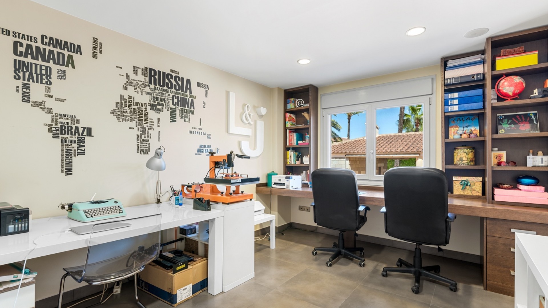 Welcome to this spacious villa with a great location in Elche. The property has 2 floors and a basement, and a total of 5 bedrooms and 3 bathrooms. On the ground floor you will find a foyer, a big living room, kitchen and dining area, a family room that can be used as a bedroom, another bedroom that is used as an office, a laundry room, pantry and a bathroom. On the 1st floor you will find the master bedroom with access to a bathroom, a walk-in-closet, two more bedrooms and one more bathroom. From two of the bedrooms you have access to their private balconies. The basement consists of two big rooms, a patio, a storage, an electrical room and two bathrooms that will need some work. The plot is spacious and in the entrance you will also find a covered parking and a barbecue. The entire house has water-based underfloor heating. For more information or to schedule a viewing, contact us!