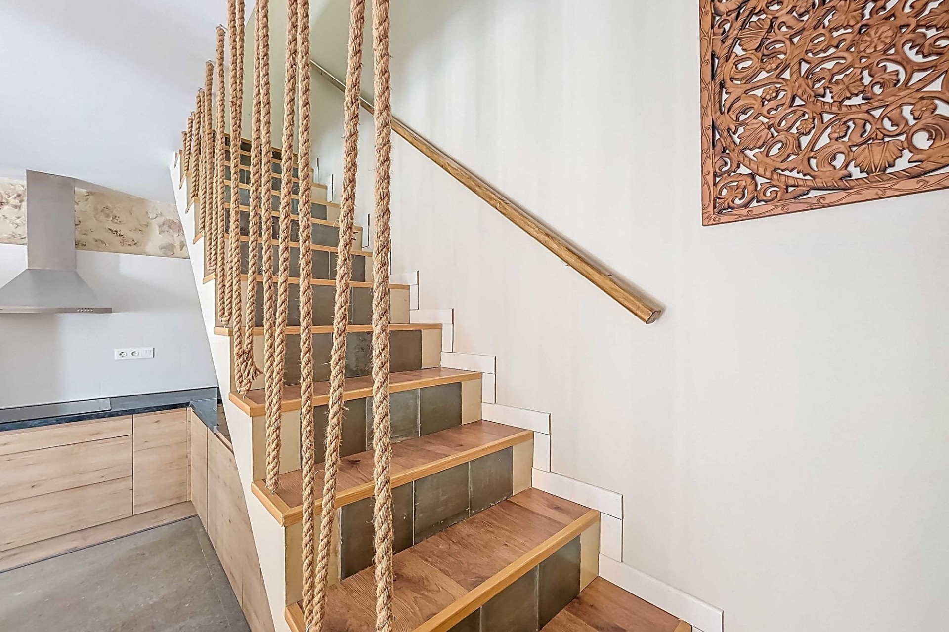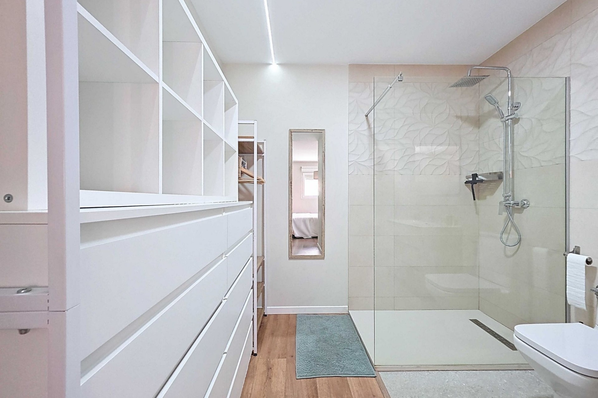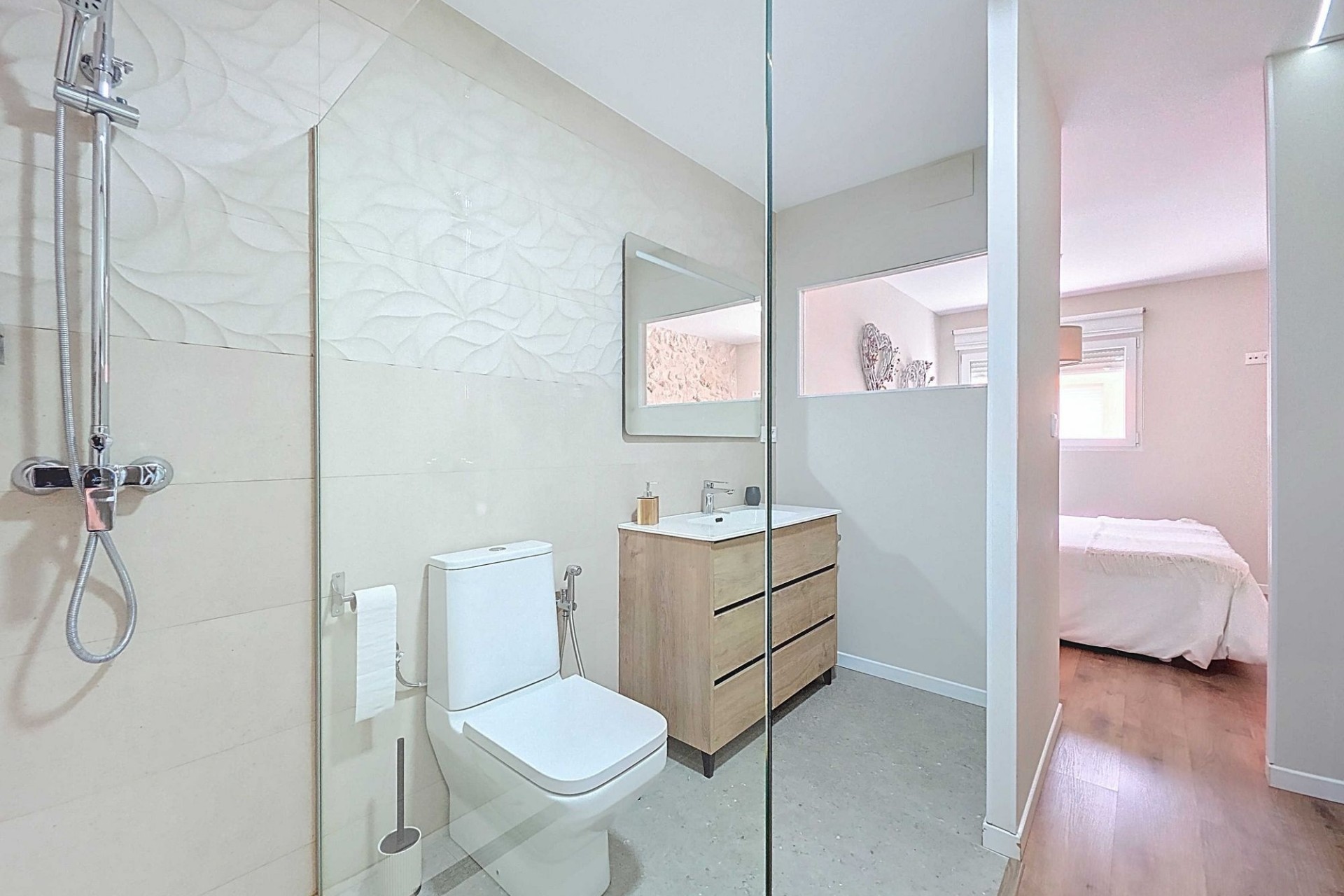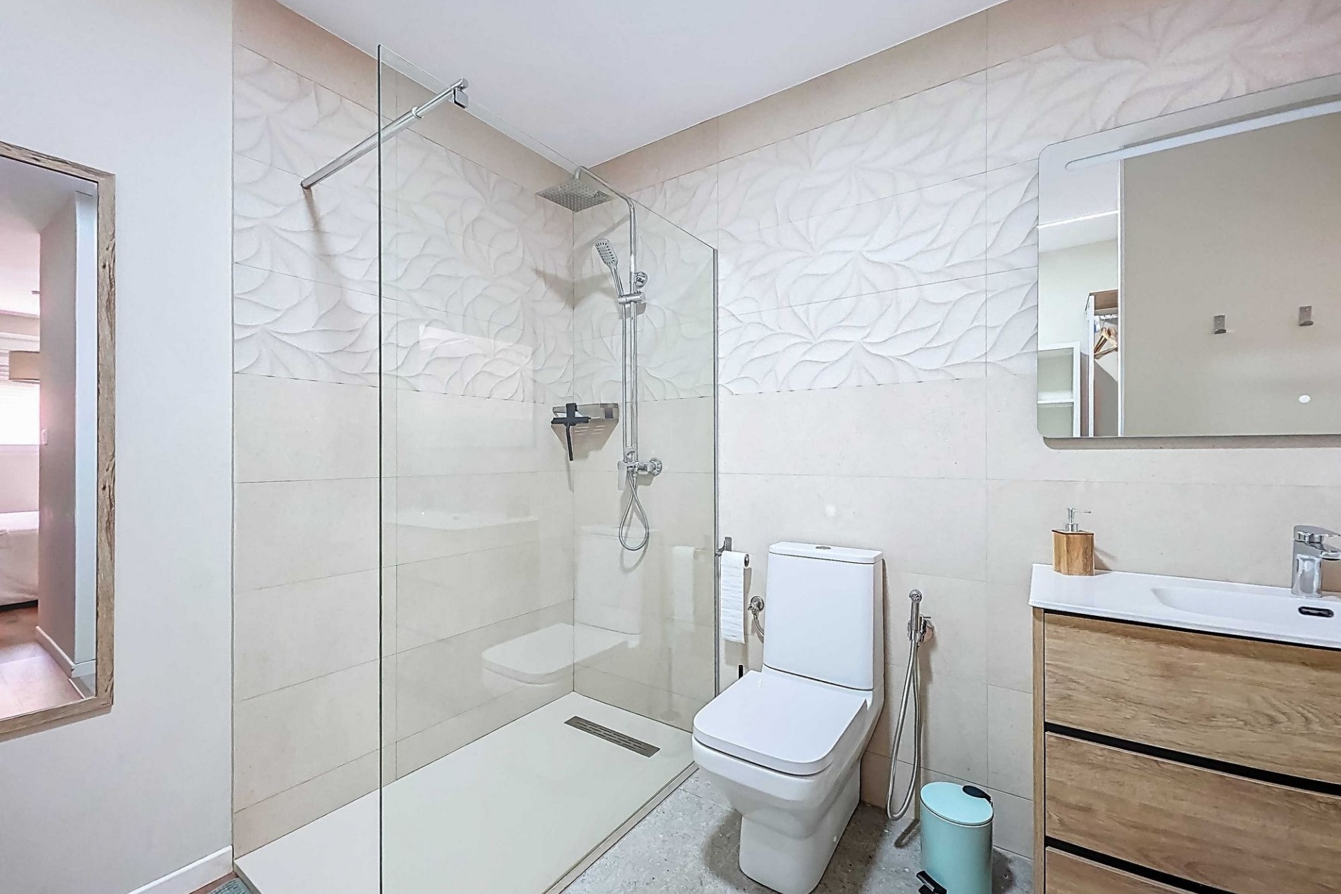This level includes two additional bedrooms and a bathroom with a walk-in shower. One of the bedrooms provides access to the spacious rooftop terrace, where the boiler is located and part of the space is covered. It’s the perfect place to enjoy sun or shade, paired with a glass of local wine and tapas.