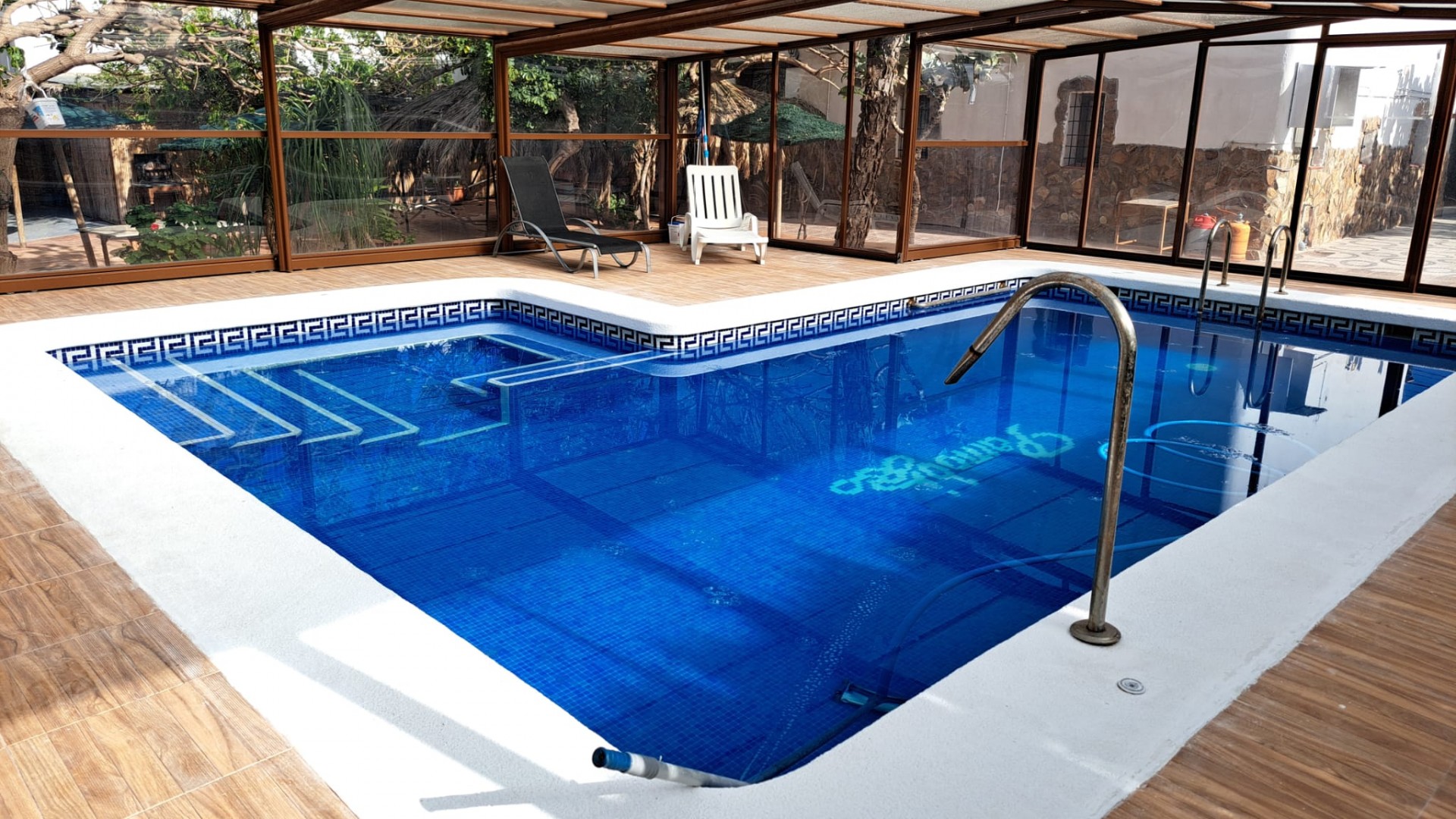 Casa de campo rústica de 2 plantas en Orihuela (Alicante) con 6 apartamentos de invitados, a tan solo 30 minutos de la playa, con vistas a la montaña. La casa principal consta de 3 dormitorios, 3 baños, 2 salones y una amplia cocina y está separada de los apartamentos de invitados. La propiedad tiene una superficie construida de 480m2 aproximados y una parcela vallada de 10.000m2. Hay 2 apartamentos con entradas independientes en la casa principal en la planta baja, 3 apartamentos en la planta superior y otro apartamento en el edificio donde está la piscina. Todos los apartamentos de invitados tienen salón con cocina, 1 dormitorio y baño privado. En el edificio anexo hay una piscina cubierta desde la que se accede a la cocina de verano con barbacoa y un baño. Al lado hay un salón muy grande con otro baño. Hay varias terrazas donde puedes quedarte. Hay una puerta de entrada electrónica a la derecha hay una amplia zona de aparcamiento con 3 cocheras. La propiedad también tiene varios trasteros. El jardín está muy bien cuidado. Una avenida de palmeras nos lleva a la zona de jardín donde se plantan diversas frutas y verduras. También hay un gran gallinero donde viven varios animales. La casa tiene varias chimeneas y aire acondicionado. Tiene luz, agua de la ciudad, agua de riego e internet. La casa está ubicada en una zona muy tranquila y se encuentra a tan solo 5 minutos de la ciudad de Orihuela y a 45 minutos del aeropuerto de Alicante. Detalles: 9 habitaciones, 11 baños, 480m2 construidos aproximados, parcela vallada de 10.000m2, jardín, piscina cubierta, terraza, cocina de verano con barbacoa, varias chimeneas, aire acondicionado, 3 cocheras, 2 salones adicionales, 6 apartamentos, varios trasteros