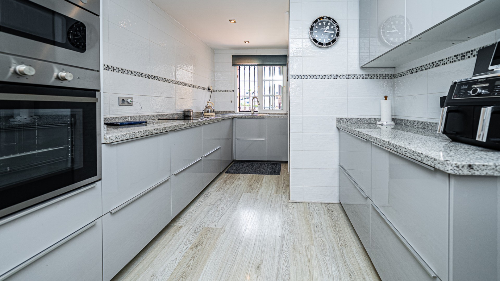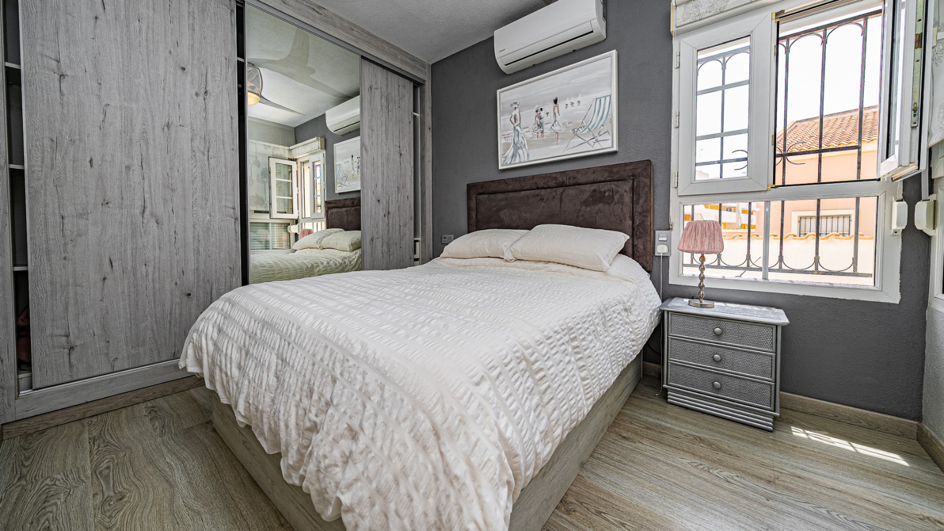 Impresionante villa en Urbanización Montilla, Playa Flamenca. Una oportunidad única para una casa como esta en el mercado. Esta soleada villa independiente ofrece un amplio salón con grandes ventanales que dan a la terraza, el jardín y la piscina, una cocina semi-independiente renovada con lujosos armarios altos y bajos y mucho espacio de almacenamiento/encimera, ofreciendo 3 espaciosos dormitorios, con el dormitorio principal con acceso a un gran solárium privado de 29 m², y 2 baños con ducha modernizados. Los extras incluyen un garaje cerrado y un trastero. La villa está impecable en todas partes con mucha luz debido a su orientación suroeste y permite sol durante todo el día. Se vende completamente amueblada con extras que incluyen trastero, aire acondicionado, electrodomésticos, armarios empotrados, ventiladores de techo, toldos y mucho más. Estupendo espacio exterior con un gran patio con jardín, terraza y piscina privada. La codiciada comunidad también ofrece una piscina comunitaria y jardines para los residentes si es necesario. Ubicado en una de las ubicaciones privilegiadas de Orihuela Costa en Residential Montilla, a poca distancia del centro comercial Playa Flamenca, servicios locales, supermercados, restaurantes de renombre y mucho más, además de poco más de 15 minutos a pie de la playa Playa Flamenca (1,4 km) Contáctenos hoy para ver esta hermosa casa familiar en una ubicación prestigiosa.