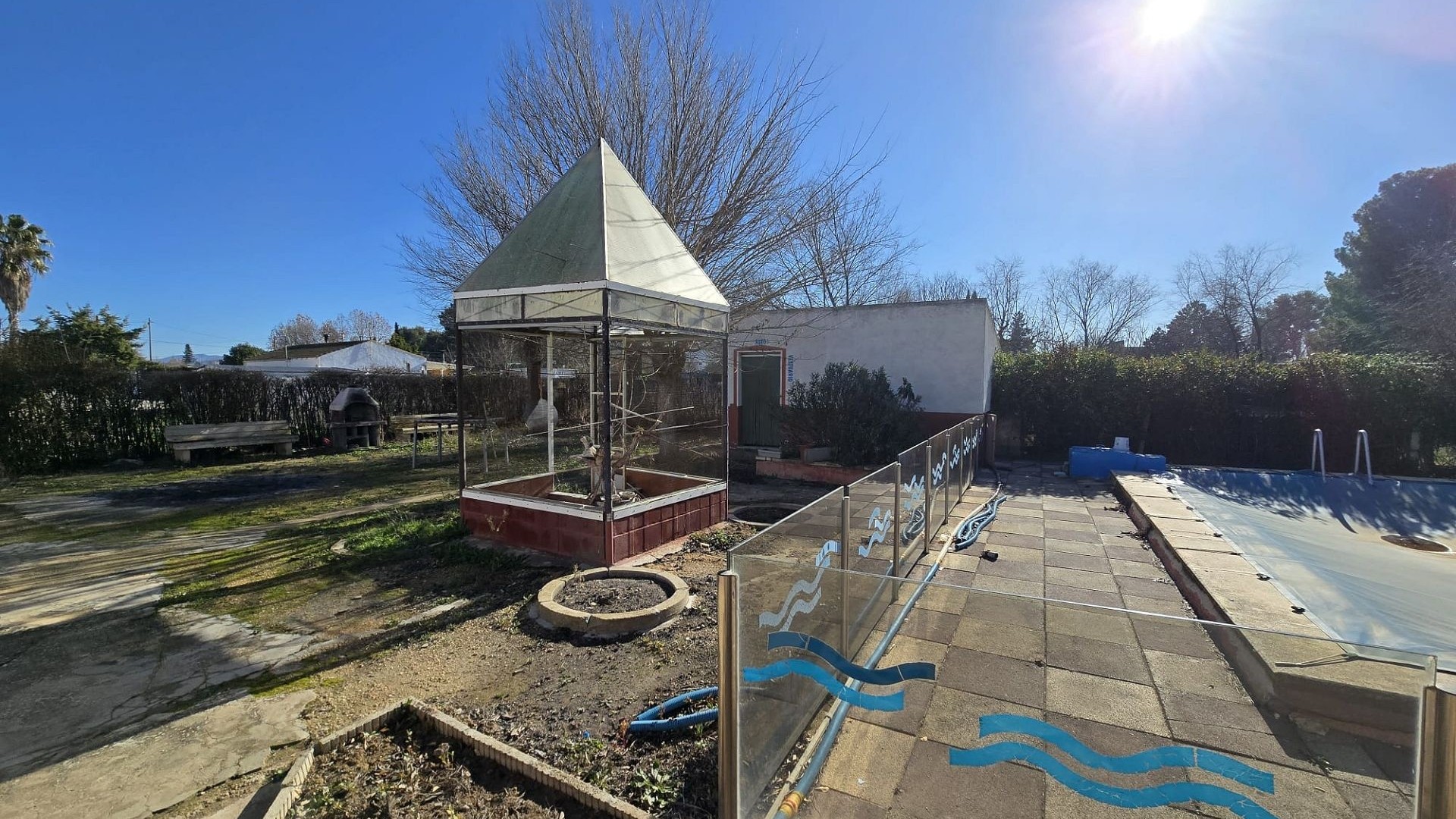 Exteriormente, la villa impresiona. Una cocina de verano con baño completo ofrece un excelente potencial para convertirse en un anexo independiente para invitados o una casita. La parcela completamente vallada garantiza privacidad y seguridad, mientras que la piscina subterránea, acristalada, crea un espacio atractivo y seguro para disfrutar de los cálidos meses de verano.
