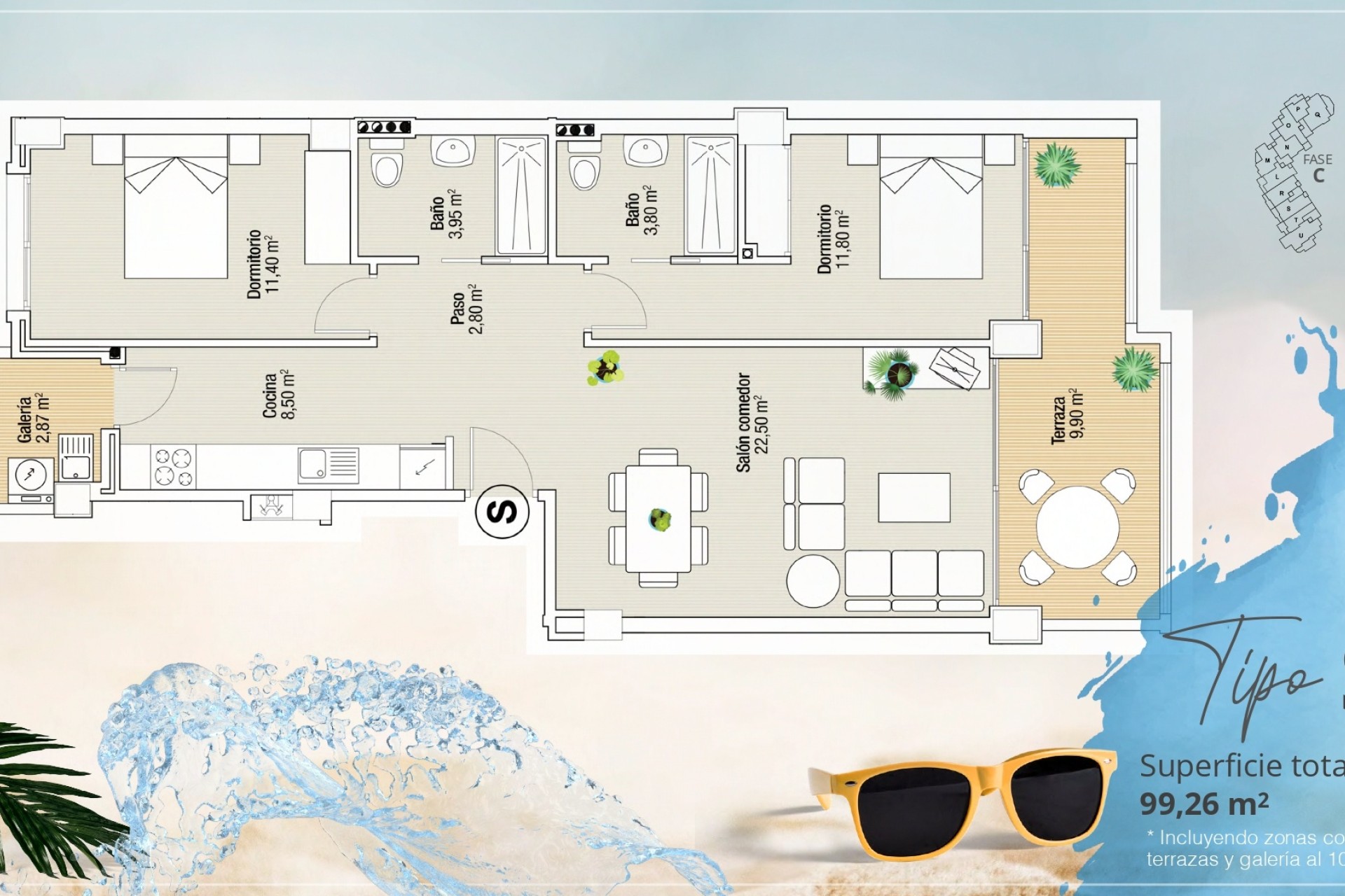 Ubicado en la exclusiva zona de La Manga del Mar Menor, este conjunto residencial ofrece una selección de 167 propiedades que incluyen apartamentos y áticos. Diseñadas para maximizar el confort y la funcionalidad, estas viviendas destacan por sus impresionantes vistas al mar, permitiendo disfrutar de la belleza del entorno desde la comodidad del hogar. La tipología de las propiedades varía entre apartamentos y áticos, ofreciendo opciones de 1, 2 y 3 dormitorios, adaptándose así a diferentes necesidades familiares y personales. Cada vivienda está equipada con características modernas como aire acondicionado, armarios empotrados y persianas eléctricas, garantizando un estilo de vida cómodo y contemporáneo. Además, las propiedades están completamente amuebladas, listas para entrar a vivir.