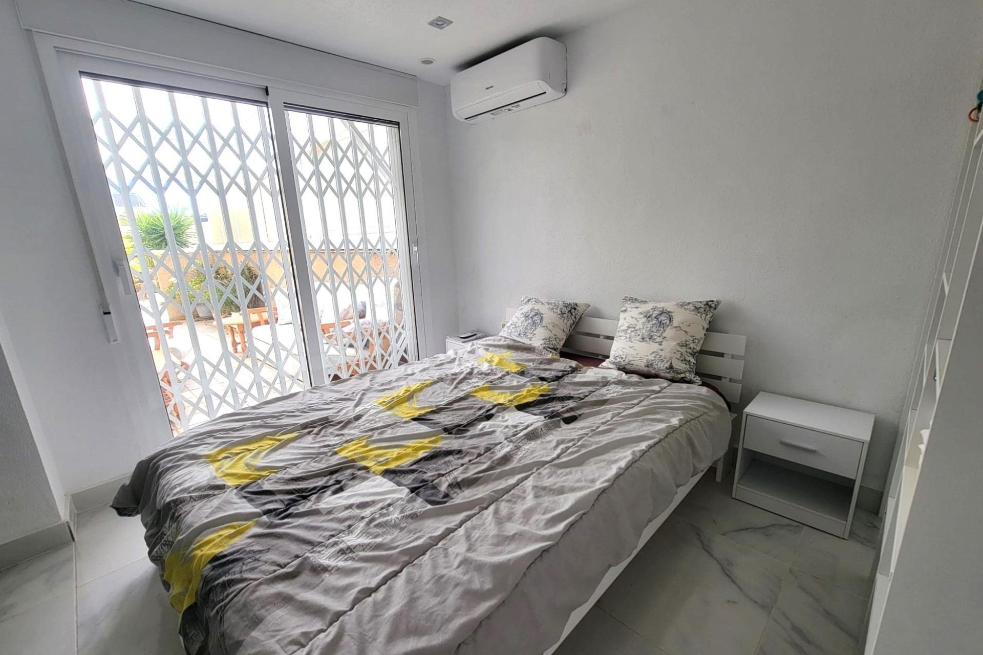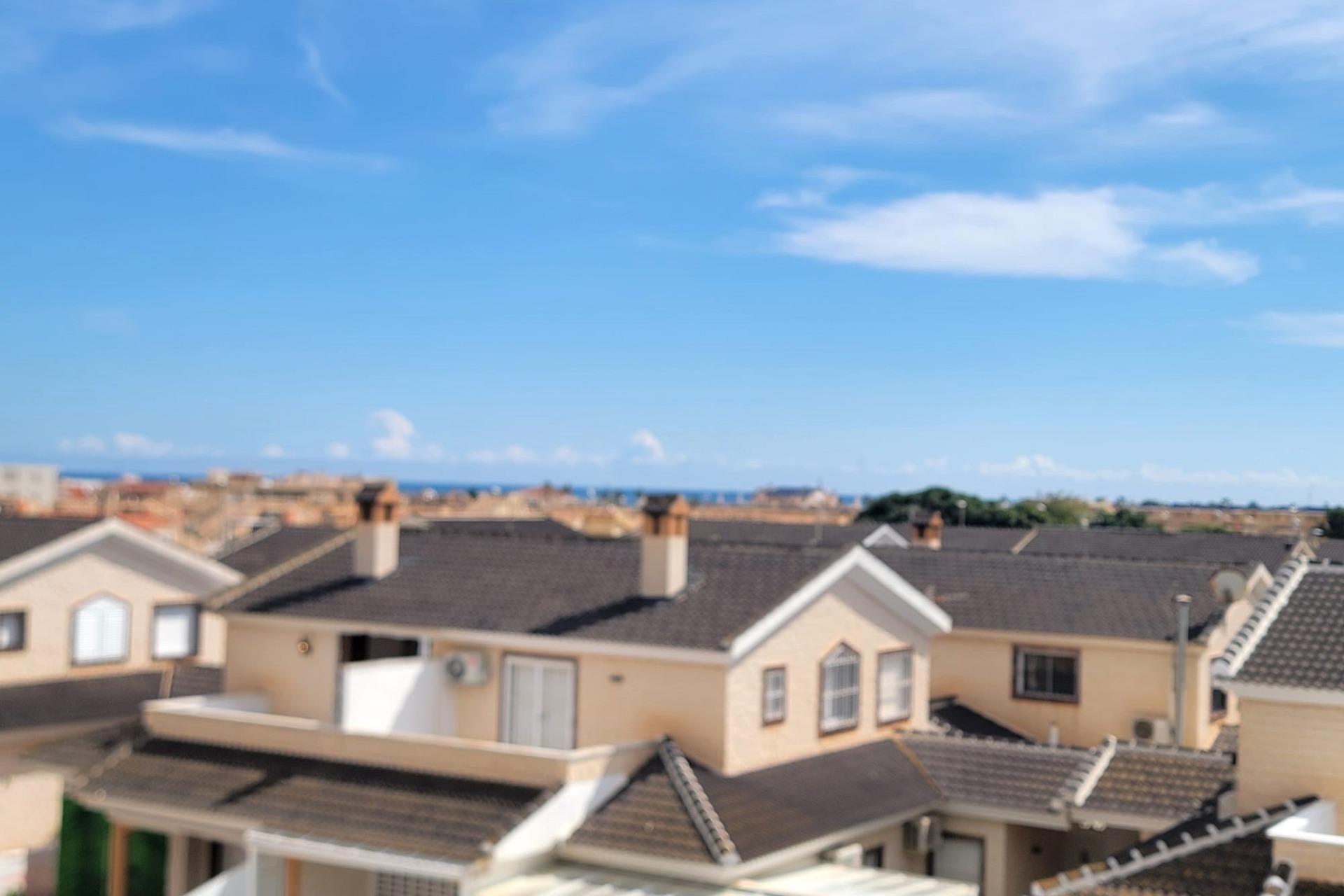 Vivienda adosada de 3 plantas, orientación Sur, ubicada en una zona tranquila en Torre de la Horadada a unos 10 minutos a pie de la playa!~Con una gran terraza delantera, la planta baja dispone de una terraza acristalada convertida en salón de Verano, un gran salón comedor con una chimenea, una cocina independiente totalmente equipada, un dormitorio doble con acceso a la terraza, un cuarto de baño (con ducha), un lavadero y una despensa para almacenaje.~La planta primera dispone de dos dormitorios dobles con acceso a la gran terraza y un cuarto de baño (con bañera).~La segunda planta dispone de un gran dormitorio doble con acceso a otra gran terraza con vistas despejadas y un cuarto de baño en suite (con ducha).~Amueblado. Aires acondicionados en el salón y los dormitorios. Armarios empotrados en los dormitorios. Pérgola en la terraza. Gas ciudad. En buen estado. Fácil aparcar en la calle cerca de la vivienda. SIN gastos de comunidad! ~Todo ello ubicado en una zona agradable, cerca de todos los servicios, parques, cafeterias, restaurantes, supermercados, a unos 10 minutes a pie de la playa!~