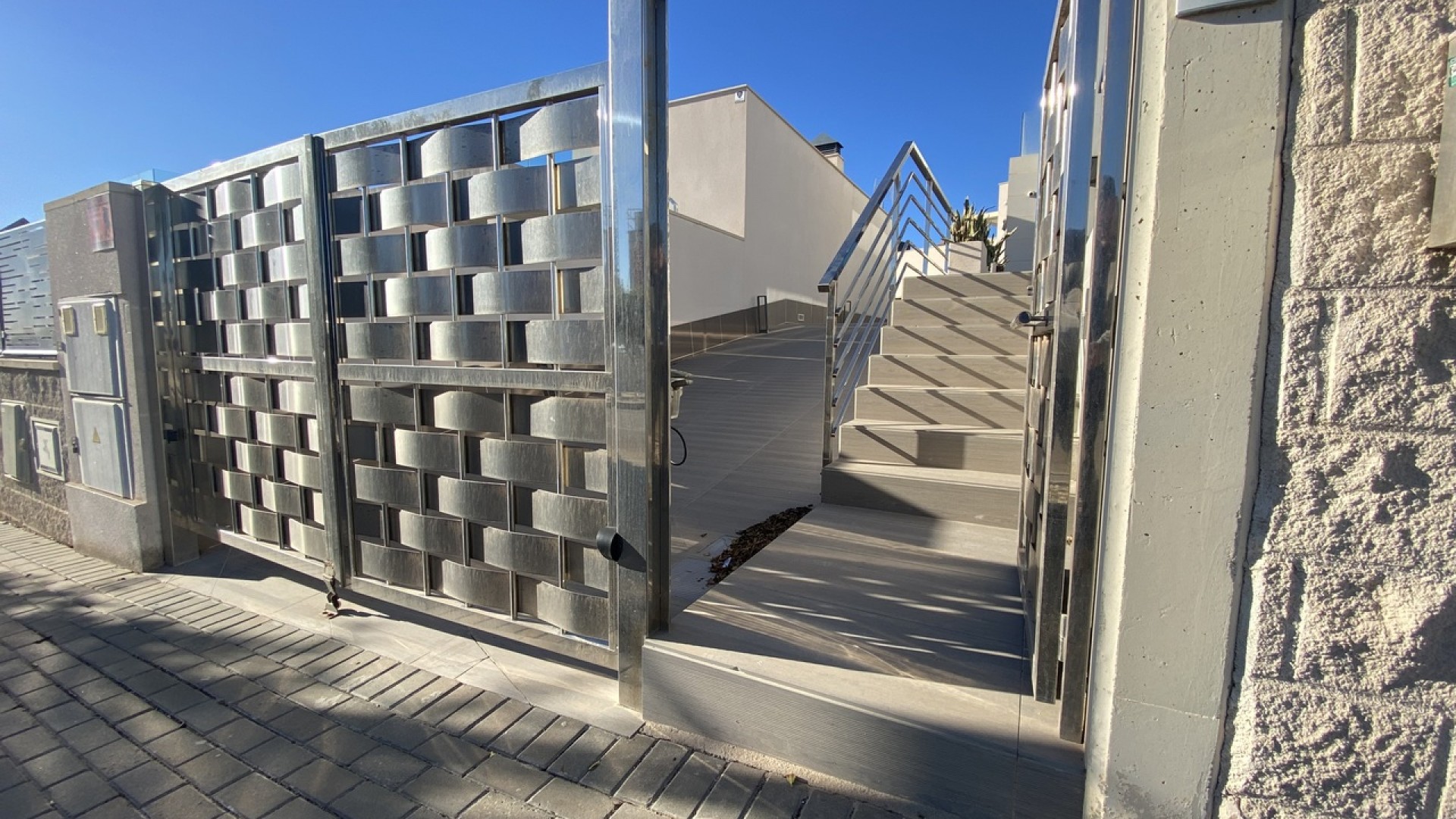 Bienvenue dans cette exceptionnelle villa de luxe récemment construite à Residencial Bellavista, San Miguel de Salinas, offrant un mélange harmonieux de design contemporain et de vues à couper le souffle. Avec un total de 5 chambres et 4 salles de bains, cette propriété méticuleusement conçue s'étend sur deux étages et un sous-sol, accessible par un ascenseur pratique et un superbe escalier en verre avec éclairage intérieur. Le sous-sol se déploie en une salle de jeux polyvalente avec billard et baby-foot, une salle de fête spacieuse comprenant une cuisine complète, 2 chambres, 2 salles de rangement et une salle de bain complète bien aménagée. Le rez-de-chaussée présente un espace salon-salle à manger sans couture avec une cuisine ouverte et un îlot central, complété par la chambre principale avec une salle de bain attenante. De plus, une buanderie et des toilettes invités améliorent le côté pratique de ce niveau. En montant au premier étage, vous découvrirez deux chambres aux proportions généreuses, deux salles de bains et un accès à de charmants balcons. Le joyau de cette villa de luxe est le solarium de 70 m² au dernier étage, offrant un point de vue inégalé pour savourer des vues panoramiques. Cette propriété dispose d'un éventail de caractéristiques sophistiquées, notamment la climatisation, un parking dédié pour plusieurs véhicules, le chauffage central avec chauffage au sol dans toutes les pièces et un aménagement élégant avec des meubles design. Les équipements remarquables comprennent une machine à granulés pour le chauffage, des panneaux solaires, un chauffe-eau électrique, des fenêtres et des portes de sécurité et un système de sécurité complet avec des capteurs dans chaque pièce. La résidence est soigneusement équipée d'équipements de haute qualité tels que des canapés motorisés, des matelas flambant neufs, un four à vapeur avec pyrolyse et un réfrigérateur combiné qui distribue à la fois de la glace normale et de la glace pilée. L'espace extérieur est un havre de luxe, avec une piscine privée avec une cascade, un jacuzzi et un hydromassage. La zone au bord de la piscine, soigneusement aménagée, est ornée d'une végétation luxuriante et une douche extérieure pratique ajoute à l'ambiance indulgente. Un grand parking dans le terrain assure la commodité de plusieurs véhicules. Située dans le Residencial Bellavista, à seulement 7 kilomètres des plages d'Orihuela, cette enclave est entourée de terrains de golf et abrite le premier centre commercial de la région avec un éventail de services, bars, restaurants, boutiques et supermarchés. Idéale pour les amoureux de la nature et de la tranquillité, cette résidence offre un style de vie d'élégance et de confort sans pareil.