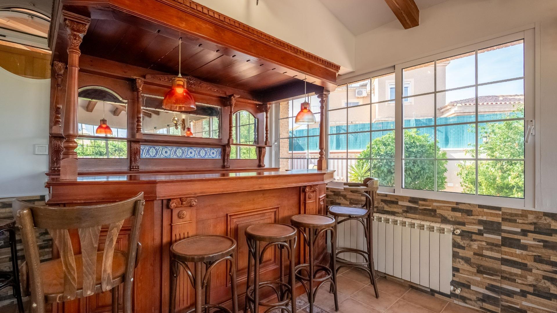 Je vous présente cette immense villa à Chaparral. Chaparral est l'un des meilleurs quartiers de Torrevieja si vous recherchez qualité de vie, tranquillité et confort, sans renoncer aux services essentiels. Torrevieja est une ville côtière de la Costa Blanca. C'est une zone touristique réputée pour ses nombreuses plages et son climat ensoleillé. Dans cette villa, vous vivrez une vie luxueuse : son immense jardin avec piscine, sa cuisine d'été avec cheminée, son barbecue et son coin salon rendront vos étés inoubliables. Mais ce qui distingue cette maison, c'est qu'elle dispose d'une salle de cinéma avec écran géant, d'une cave à vin pour les amateurs, d'un bar avec comptoir et chaises, idéal pour recevoir des amis, et d'un bureau où vous pourrez travailler confortablement. Elle dispose également d'un garage fermé pour plusieurs voitures. La maison, répartie sur deux étages, est lumineuse et spacieuse, bien agencée et offre de nombreuses pièces, idéales pour une grande famille. Elle dispose d'un bar dans le salon ainsi que d'une cave à vin. Une grande cuisine indépendante entièrement équipée. La maison dispose de 6 chambres. Elle dispose de trois chambres meublées et d'un dressing. Les trois autres chambres sont destinées aux réceptions, avec un home cinéma, une cave à vin et un bureau. Elle dispose de trois salles de bains, dont une avec jacuzzi. Enfin, elle dispose d'un solarium vitré. ~La maison est entièrement équipée d'un chauffage au sol au gaz. ~~Elle est située dans l'un des plus beaux quartiers de Chaparral. C'est un quartier résidentiel très calme et agréable. Il se distingue par son climat ensoleillé et ses espaces verts environnants. Elle est également proche des services essentiels, des plages et des lieux de divertissement. Enfin, elle est bien desservie par les transports en commun et les transports en commun. ~~C'est une grande maison, parfaite pour une famille nombreuse qui aime vivre au calme tout en étant proche de tout !