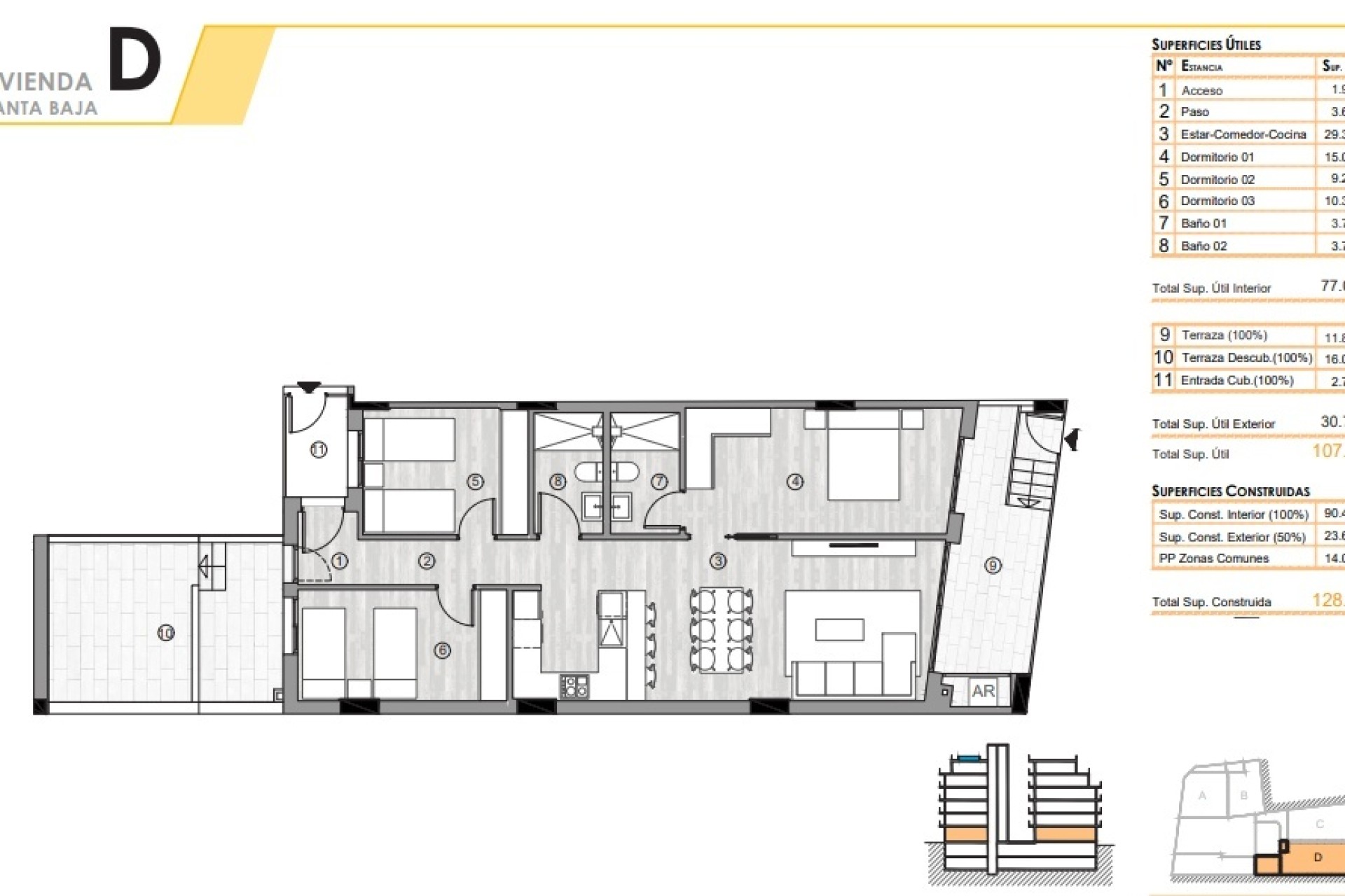 À l'intérieur, les penthouses se distinguent par leur design moderne et fonctionnel. Les sols en grès cérame apportent une touche d'élégance et sont faciles à entretenir. La distribution comprend des options de 2 ou 3 chambres, s'adaptant à différents besoins familiaux, et 2 salles de bains qui garantissent le confort de tous les résidents. Les placards intégrés offrent un espace de rangement efficace, tandis que l'inclusion d'appareils électroménagers dans la cuisine facilite la vie quotidienne. La possibilité d'un garage optionnel ajoute un élément de personnalisation selon les préférences de chaque acheteur.