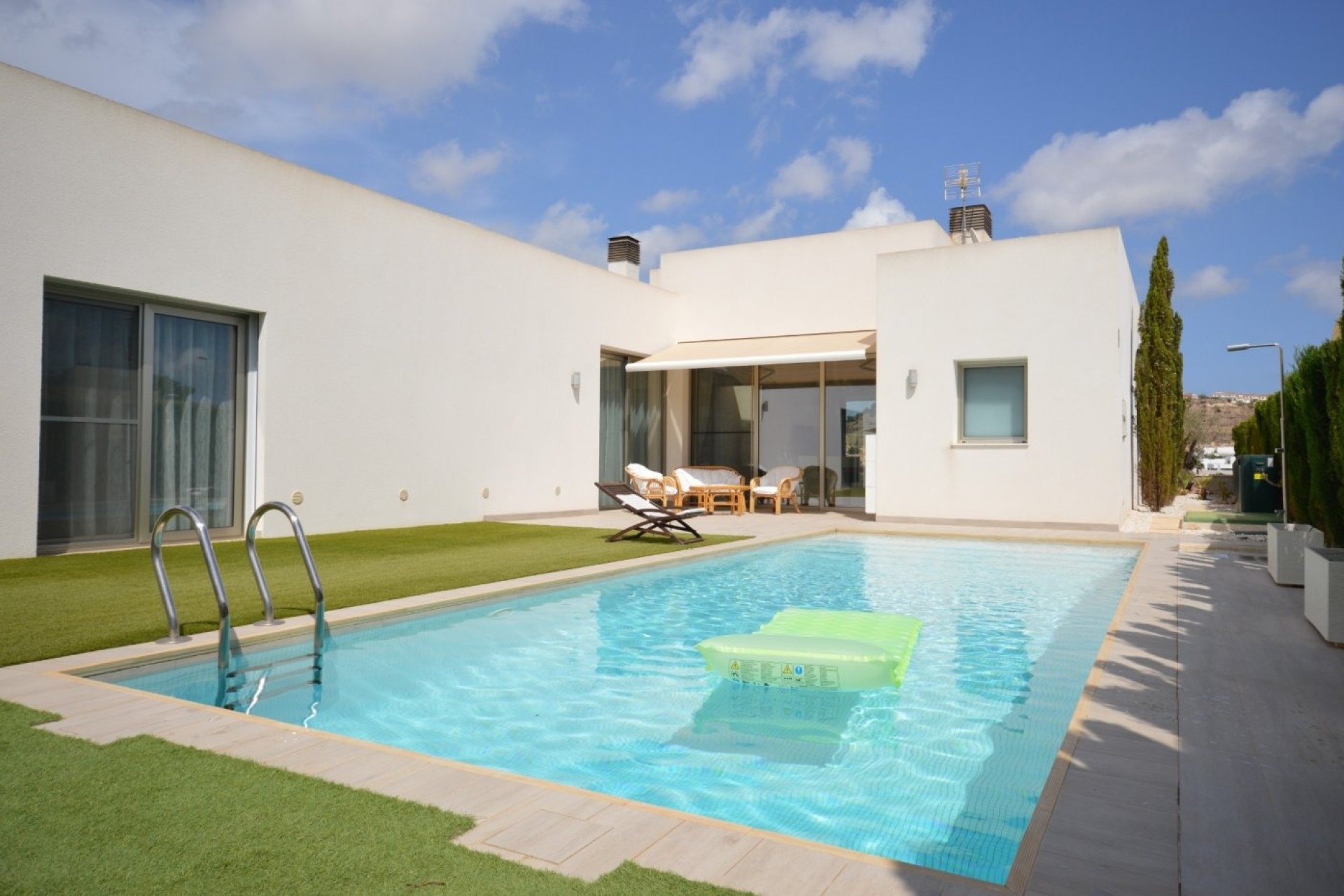 Nowoczesna jednopoziomowa willa w Benijofar z 4 sypialniami...~Nowoczesna jednopoziomowa willa położona w Benijofar, w odległości spaceru od wszystkich potrzebnych udogodnień, w pobliżu parku przyrody Cañada Marsa, tętniącego życiem centrum Ciudad Quesada i zaledwie kilka minut od La Marquesa Golf.~ ~ Przestronna willa z otwartą koncepcją kuchni-salonu-jadalni z kominkiem, 4 sypialniami, główną sypialnią z łazienką i garderobą oraz łazienką.~ ~ Willa jest sprzedawana w pełni umeblowana, a kuchnia jest wyposażona w sprzęt AGD. Na zewnątrz znajduje się prywatny basen z podgrzewaną wodą, ogród, zadaszony parking na 2 samochody i taras. Gotowy do zamieszkania. Klimatyzacja kanałowa ciepło/zimno z systemem odnowy powietrza. Łazienki z ogrzewaniem podłogowym, podgrzewanymi wieszakami na ręczniki, jedna z nich z wanną. Ciepła woda dzięki panelowi aerotermalnemu i słonecznemu, reflektory LED. System domotyki. System alarmowy. Pomieszczenie gospodarcze obok kuchni. Prysznic na zewnątrz. System osmozy w kuchni.~ ~ Zbudowany w 2016 roku przez wielokrotnie nagradzaną firmę, która jest znana z ekskluzywnych domów na Costa Blanca i używa tylko najlepszych materiałów. ~ ~ Benijófar to typowa hiszpańska wioska z szeroką gamą udogodnień, takich jak piekarnie, supermarkety, apteki, centrum medyczne, minigolf, centra handlowe, bary i restauracje. Położony około 30 minut od lotniska w Alicante, 15 minut od plaży Guardamar. Bulwar La Zenia i Habaneras są również w zasięgu ręki.~