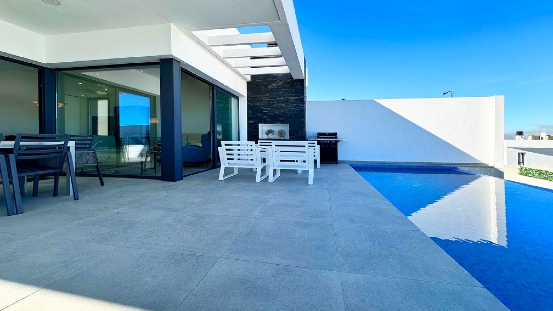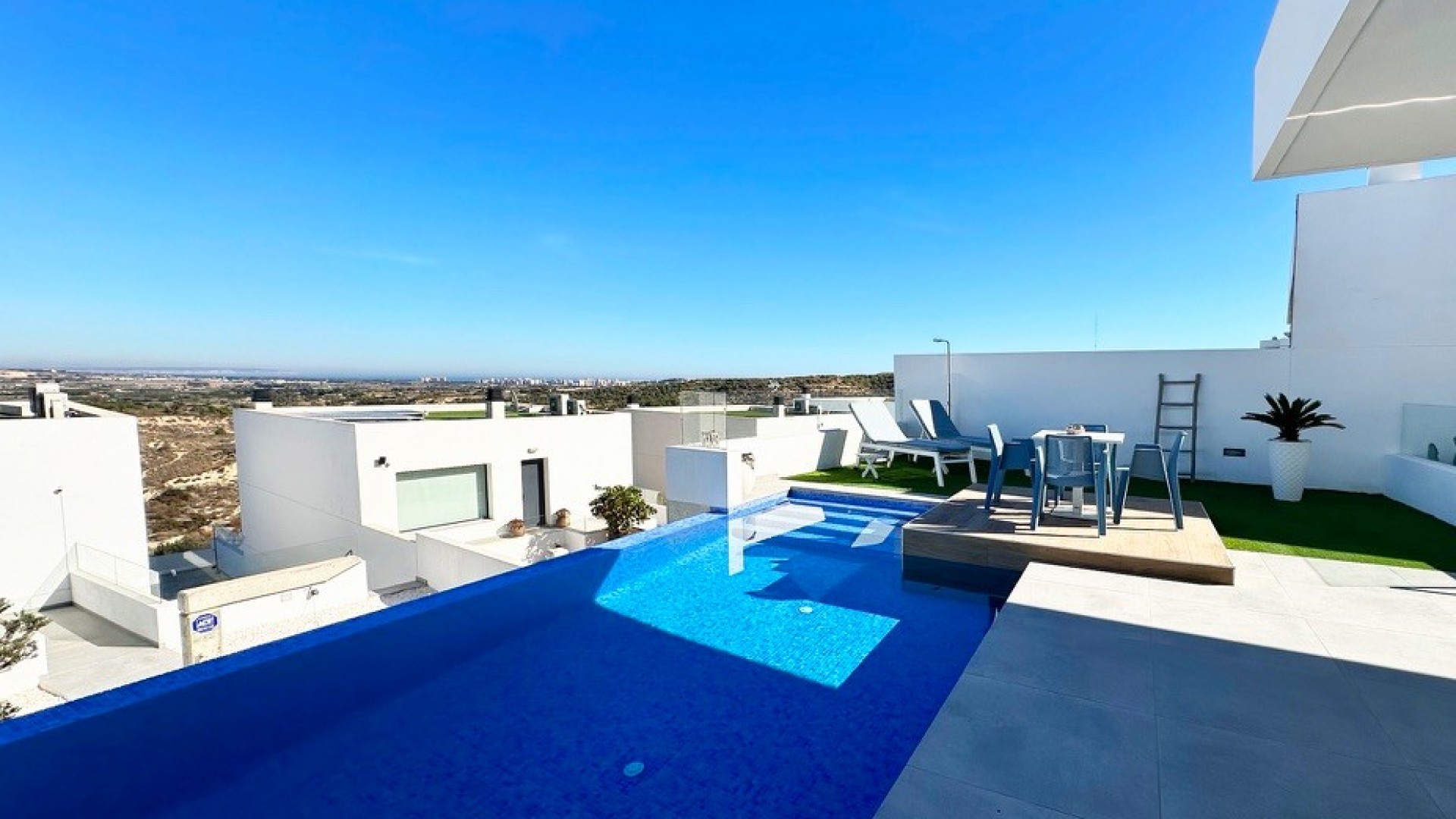 Ta luksusowa, nowoczesna willa SKYLINE II położona w Rojales została zaprojektowana z dużą ilością światła i otwartych przestrzeni, z piwnicą, garażem, prywatnym basenem, przestronnymi tarasami i zagospodarowanym ogrodem, aby cieszyć się śródziemnomorskim klimatem przez cały rok. Wspaniały dom rodzinny z kaskadowym basenem bez krawędzi oferuje doskonałe widoki na morze z panoramicznym widokiem na zatokę Guardamar i Santa Pola. Nieruchomość składa się z trzech sypialni z wbudowanymi szafami i łazienkami z prysznicem oraz 1 toalety dla gości, w pełni wyposażonej nowoczesnej zintegrowanej kuchni z barem śniadaniowym i otwartego salonu/jadalni, prowadzącego do ogrodu z zadaszonym zewnętrznym miejscem do spożywania posiłków. Na parterze znajduje się sypialnia dwuosobowa z garderobą. Na dolnym piętrze znajduje się duży pokój rodzinny z podwodnym obserwatorium basenowym. Dwie sypialnie dwuosobowe z dostępem do tropikalnego ogrodu patio, częścią wypoczynkową i bezpośrednim dostępem do garażu. Niepowtarzalna okazja, która zaprasza do cieszenia się śródziemnomorskim życiem od pierwszej chwili. Kompleks znajduje się w pobliżu Ciudad Quesada w gminie Rojales, z panoramicznym widokiem na Morze Śródziemne, rozwijające się plaże Guardamar i Santa Pola. Kilka metrów od Pueblo Lucero znajduje się pole golfowe Rojales La Marquesa w Ciudad Quesada, zaledwie pięć minut od pięknych plaż Guardamar del Segura i praktycznie w odległości spaceru od centrum Rojales. W centrum miasta znajduje się bardzo ładny kościół, lokalne muzeum i uroczy plac miejski, na którym można usiąść i obserwować świat.