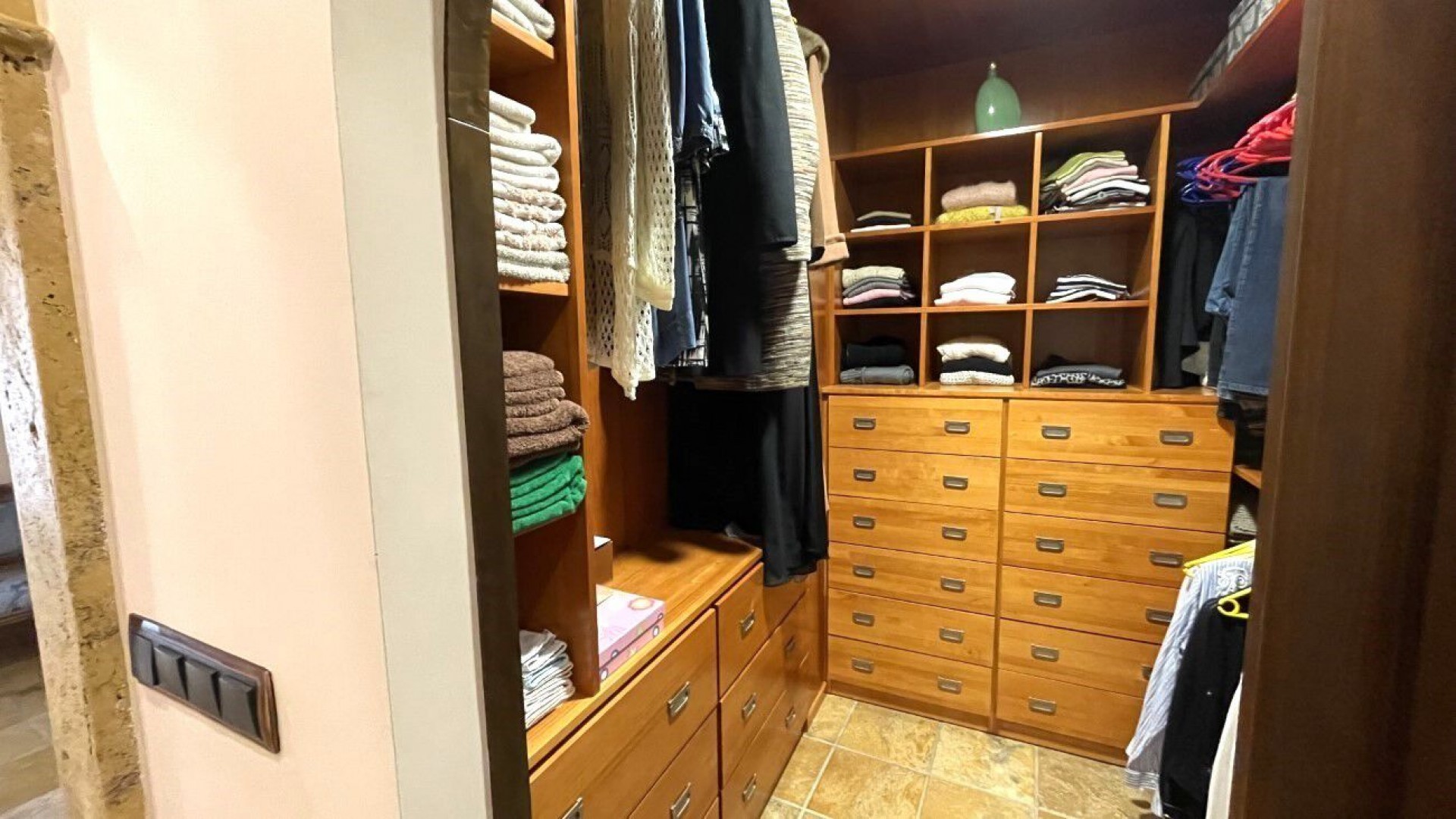 Wspaniały, jedyny w swoim rodzaju dom szeregowy o powierzchni zabudowy 542 m2, położony bardzo blisko centrum Torrevieja. Ta wysokiej jakości nieruchomość została zaprojektowana i zbudowana przez obecnych właścicieli, a wszystkie cechy domu zostały starannie dobrane, aby jak najlepiej reprezentować jego niesamowitą architekturę. Wchodząc do korytarza na parterze, witają Cię ręcznie robione włoskie mozaiki i marmurowe schody prowadzące na pierwsze piętro, oferujące wspaniały salon z weneckimi zasłonami, piękną w pełni wyposażoną kuchnię z pomieszczeniem gospodarczym, spiżarnią i dostępem do dwóch dużych tarasów zapewniających dużo naturalnego światła słonecznego do pomieszczeń, biuro i toaletę gościnną. Drugie piętro prezentuje cztery sypialnie, w tym dużą, główną z prywatną łazienką i garderobą oraz łazienkę rodzinną. Najwyższe piętro ma duży, otwarty salon, który obecni właściciele przekształcili w bibliotekę/miejsce pracy i dostęp do prywatnego solarium z dużym pomieszczeniem do przechowywania. Główne wejście prowadzi do bardzo dużego, prywatnego garażu, w którym można zaparkować kilka pojazdów, ma miejsce do przechowywania i łazienkę wielkości rodziny. Obejmuje również podbudowę, w której można znaleźć kolejny duży salon ze specjalnie zaprojektowanymi oknami, które odtwarzają naturalne światło słoneczne i piwniczkę na wino z regulacją temperatury. Sam dom został podniesiony, co zapobiega wilgoci, a jego konstrukcja jest antysejsmiczna. Wszystkie drzwi są ręcznie robione, wszystkie okiennice są elektryczne, a nieruchomość ma również marmurowe podłogi z ogrzewaniem podziemnym, klimatyzację, system alarmowy, wszystkie światła są LED, okna PCV i... windę z dostępem do każdego piętra! Zarezerwuj oglądanie z jednym z naszych agentów i znajdź dom swoich marzeń już dziś!