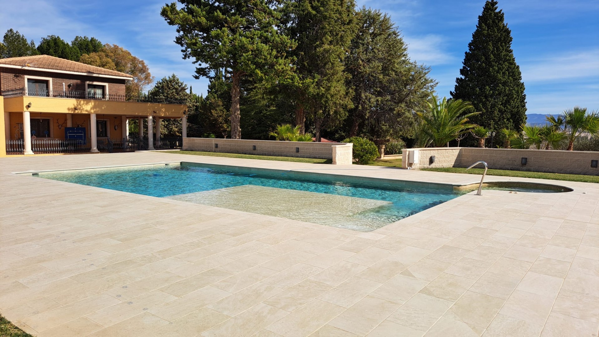 Luksusowy rustykalny dom wiejski z 2 piętrami w Salinas (Alicante), zaledwie 40 minut od plaży, z pięknym widokiem na góry. Dom składa się z 3 salonów, 6 sypialni, 4 łazienek i ma powierzchnię mieszkalną 966 m2 oraz ogrodzoną działkę o powierzchni 14 000 m2. Dom jest podzielony w następujący sposób, główne wejście do domu jest dostępne przez duży zadaszony taras. Na dolnym piętrze wchodzimy do pierwszej sypialni przez korytarz, następnie jest łazienka, a następnie salon z kominem. Następnie znajduje się duża kuchnia, która prowadzi do dużego głównego salonu z kominem i ma wyjście na kolejny taras, za którym znajduje się kolejny salon z kominem. Następnie znajduje się pralnia, która prowadzi bezpośrednio do dużego garażu z miejscem na 2 samochody. Garaż ma również letnią kuchnię, komin i pompę basenową. Na górnym piętrze znajduje się kolejne 5 sypialni i 3 łazienki. Są 2 duże balkony z widokiem na góry, na które można wyjść ze wszystkich sypialni. W starannie zaprojektowanym i udekorowanym ogrodzie znajduje się odnowiony basen z jacuzzi, który prowadzi do pięknie zagospodarowanego ogrodu. Ponadto na terenie posesji znajduje się kolejna letnia kuchnia i miejsce do grillowania, wiata na 3 samochody i prywatny kort tenisowy. Za basenem znajduje się kolejny kawałek ziemi z drzewami oliwnymi. Dom ma klimatyzację w całym domu, z wyjątkiem 2 pokoi, prąd i wodę. Dom został zbudowany w 1990 roku i został całkowicie odnowiony i powiększony 16 lat temu. Roczne podatki (IBI) wynoszą 973 €. Dom znajduje się w bardzo spokojnej okolicy, zaledwie 2 minuty od miasta i 35 minut od lotniska. Szczegóły: 3 salony, 6 sypialni, 4 łazienki, powierzchnia mieszkalna 966 m2, ogrodzona działka 14000 m2, ogród, prywatny basen z jacuzzi, garaż z letnią kuchnią i kominem, wiata na 3 samochody, letnia kuchnia, grill, łącznie 4 kominy, klimatyzatory, 2 tarasy, zadaszony taras, 2 balkony, kort tenisowy, wybudowany w 1990 roku