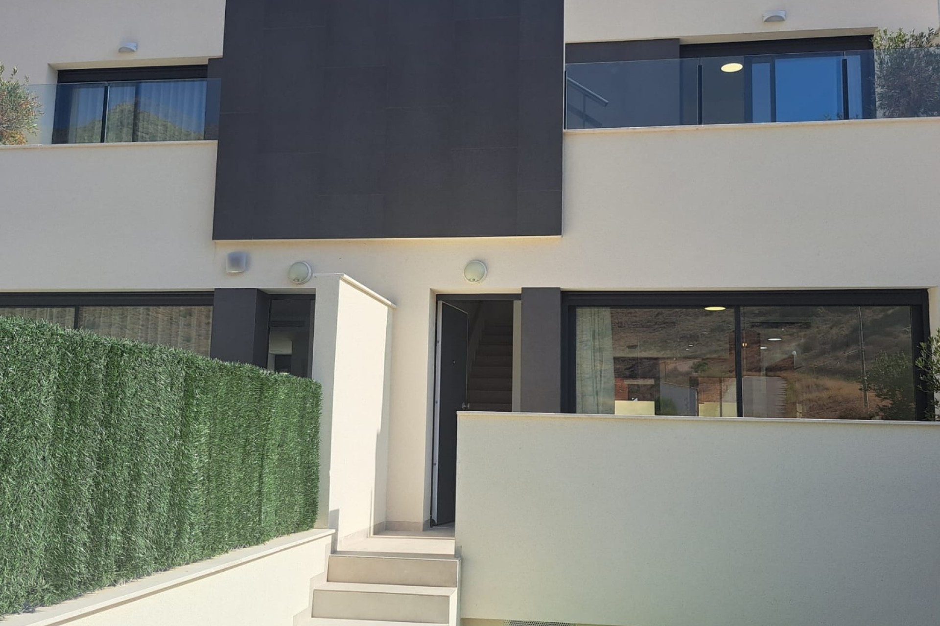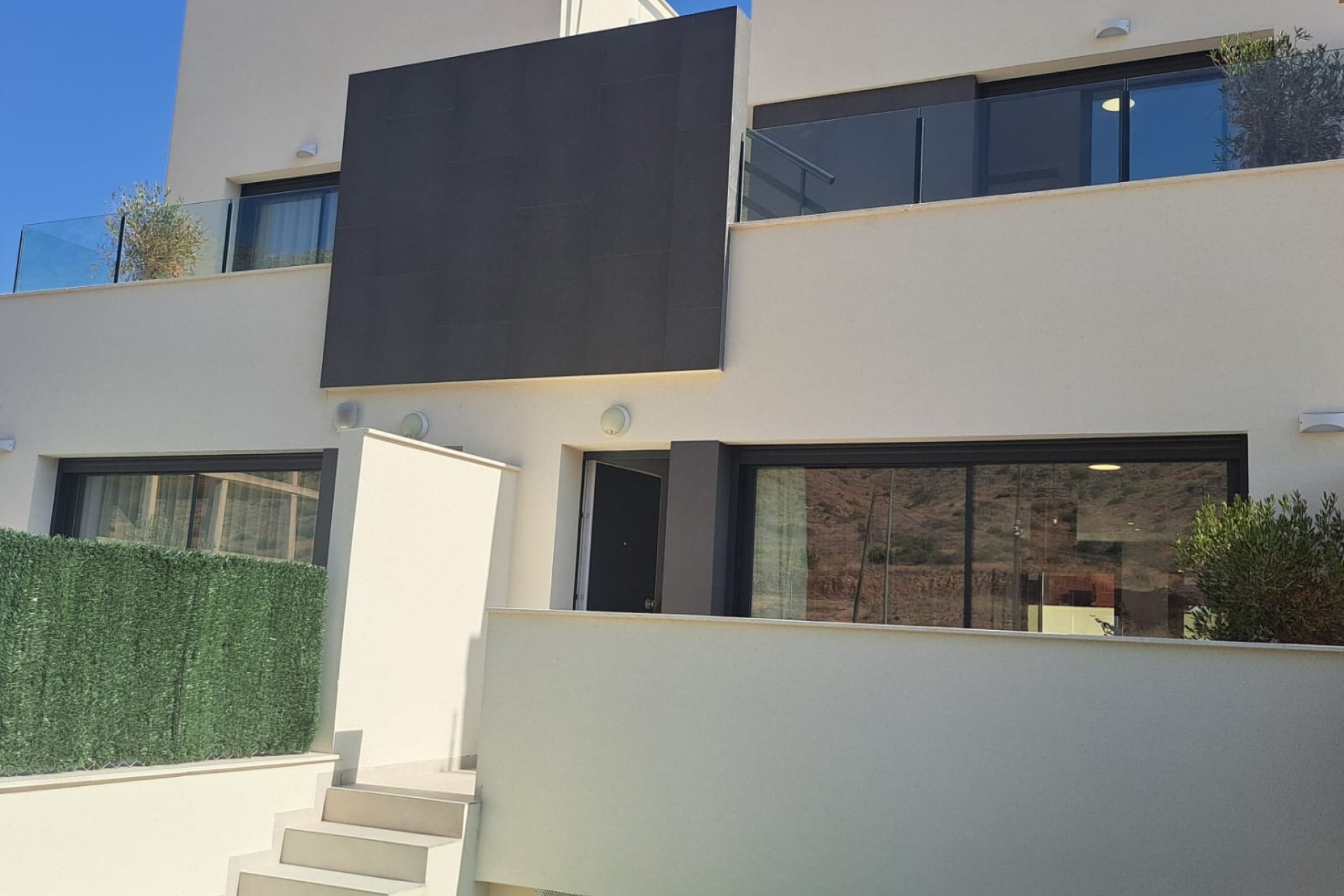 Wspaniałe domy z 2 sypialniami o powierzchni 81 m2, składające się z dwóch sypialni, salonu, kuchni, 2 łazienek, solarium o powierzchni 32 m2, tarasu o powierzchni 8 m2 i ogrodu o powierzchni 36 m2, wspólnego basenu. Okolica jest fantastyczna, cicha i ma wszystko, czego potrzebujesz wokół siebie. Poniżej opisujemy wszystko, co jest zawarte w ofercie nieruchomości. Teren zielony ze sztuczną trawą i parkingiem na działce.-Preinstalacja silnika bramy parkingowej.-Domofon.-Wewnętrzne i zewnętrzne oświetlenie LED.-Elektryczne rolety w sypialniach.-Gniazdo do wolnego ładowania na parkingu.-Gniazda telewizyjne we wszystkich pokojach, na ganku i w solarium.-Drzwi wejściowe zabezpieczające.-Wyposażona kuchnia z blatem i frontem Silestone, sprzętem elektrycznym (piekarnik, płyta ceramiczna, okap, zmywarka, lodówka i grzejnik aerotermiczny).-Dekoracyjne okno w salonie.-Preinstalacja kanałów AC z kratkami powrotnymi.-Urządzenie do odzysku ciepła.-Przesuwne okna i balkony są wysoce bezpieczne, z podwójnymi szybami komorowymi, niską emisyjnością, filtrem słonecznym i argonem.-Armatura sanitarna, prysznic z efektem deszczu, stały ekran, szafka i podświetlane lustro.-Preinstalacja paneli fotowoltaicznych.-Wbudowane szafy wykończone szufladami i szafkami.-Solarium wyposażone w letnią kuchnię.-Wspólny basen i przestrzenie wspólne.