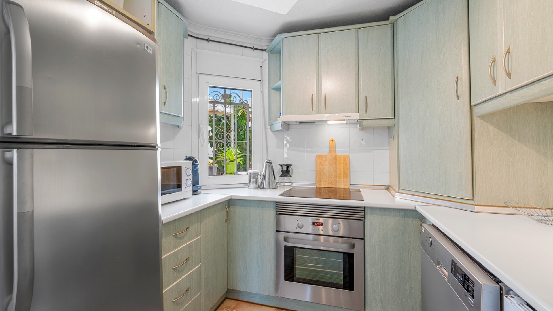 Urokliwa willa w stylu śródziemnomorskim z 3 sypialniami, położona blisko centrum Ciudad Quesada. Willa ma całkowitą powierzchnię mieszkalną 238 m² podzieloną na dwa poziomy: główne piętro oraz apartament gościnny na dolnym poziomie. Na głównym piętrze znajdują się dwie sypialnie dwuosobowe i dwie łazienki, z czego jedna en-suite w sypialni głównej. Ponadto znajduje się tam hol wejściowy, kuchnia w stylu otwartym, jadalnia i salon z kominkiem oraz przeszklony taras z dodatkową jadalnią i salonem. Przy wejściu do willi znajduje się zadaszony taras, a z przeszklonego tarasu jest bezpośrednie wyjście do strefy basenowej. Na niższym poziomie znajduje się oddzielny apartament gościnny składający się z salonu, kuchni, dużej sypialni i łazienki. Willa wyposażona jest w centralne ogrzewanie (gazowe), klimatyzację, kominek w salonie, system alarmowy oraz filtr osmozy. Teren zewnętrznyWilla usytuowana jest na działce o powierzchni 500 m², z ekspozycją południową. Ogród jest zadbany, wyłożony płytkami i obsadzony roślinami. Znajduje się tam basen ze słoną wodą, prysznic zewnętrzny, wiata garażowa, miejsce na grilla, schowek oraz kilka stref wypoczynkowych. Ogród posiada automatyczny system nawadniania. Willa znajduje się w odległości krótkiego spaceru od głównej ulicy w Ciudad Quesada, gdzie można znaleźć szeroki wybór udogodnień.