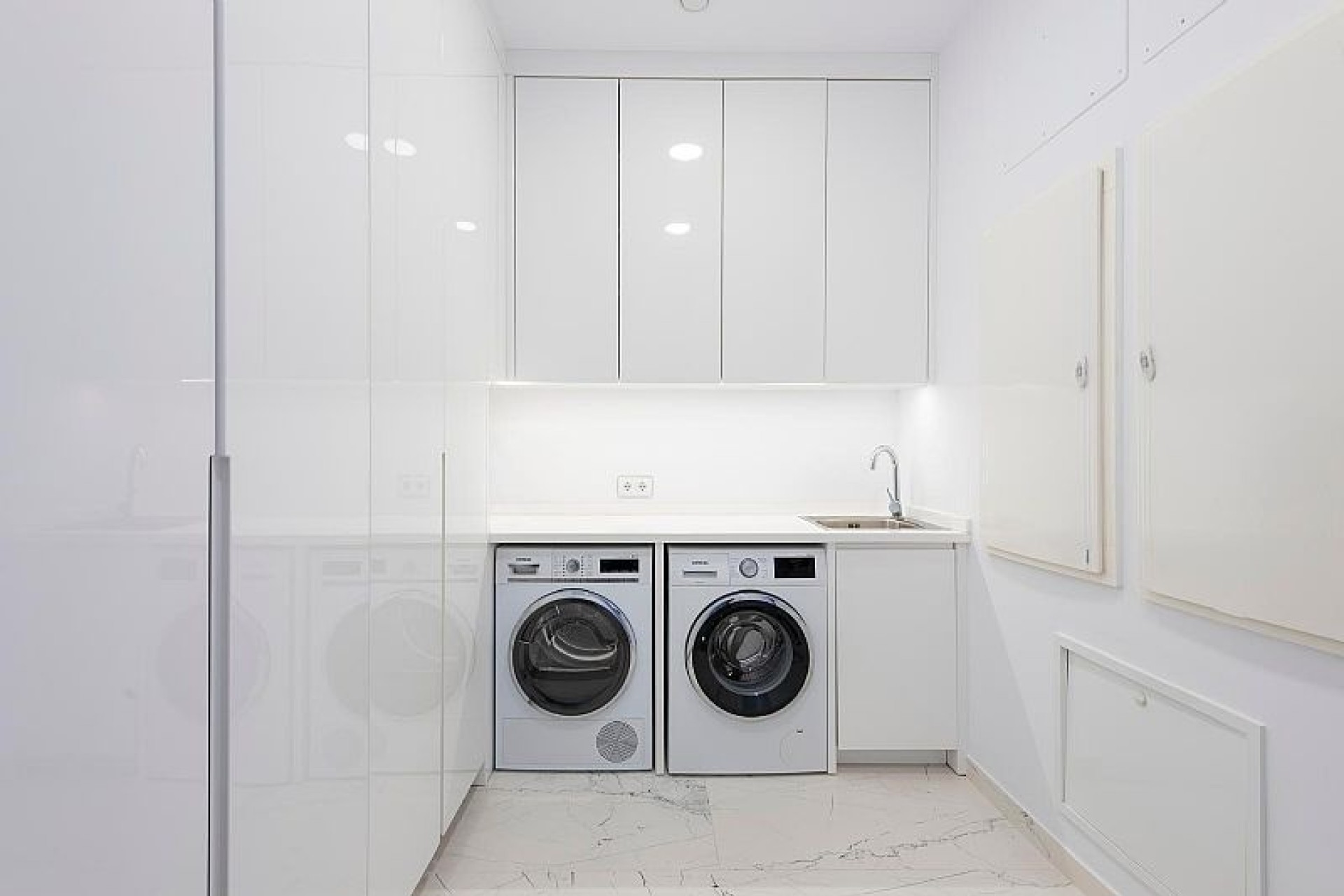 Wnętrze willi jest wyposażone w luksusowe cechy, które zapewniają maksymalny komfort. Marmurowe podłogi dodają elegancji, a system ogrzewania podłogowego zapewnia przyjemną temperaturę przez cały rok. Willa jest w pełni umeblowana i wyposażona w sprzęt AGD najwyższej klasy, co ułatwia bezproblemową przeprowadzkę. Elektryczne rolety i system automatyki domowej zapewniają dodatkową wygodę i bezpieczeństwo. Ponadto klimatyzacja zapewnia świeże i komfortowe środowisko w cieplejsze miesiące. Wbudowane szafy w sypialniach oferują dużo miejsca do przechowywania.