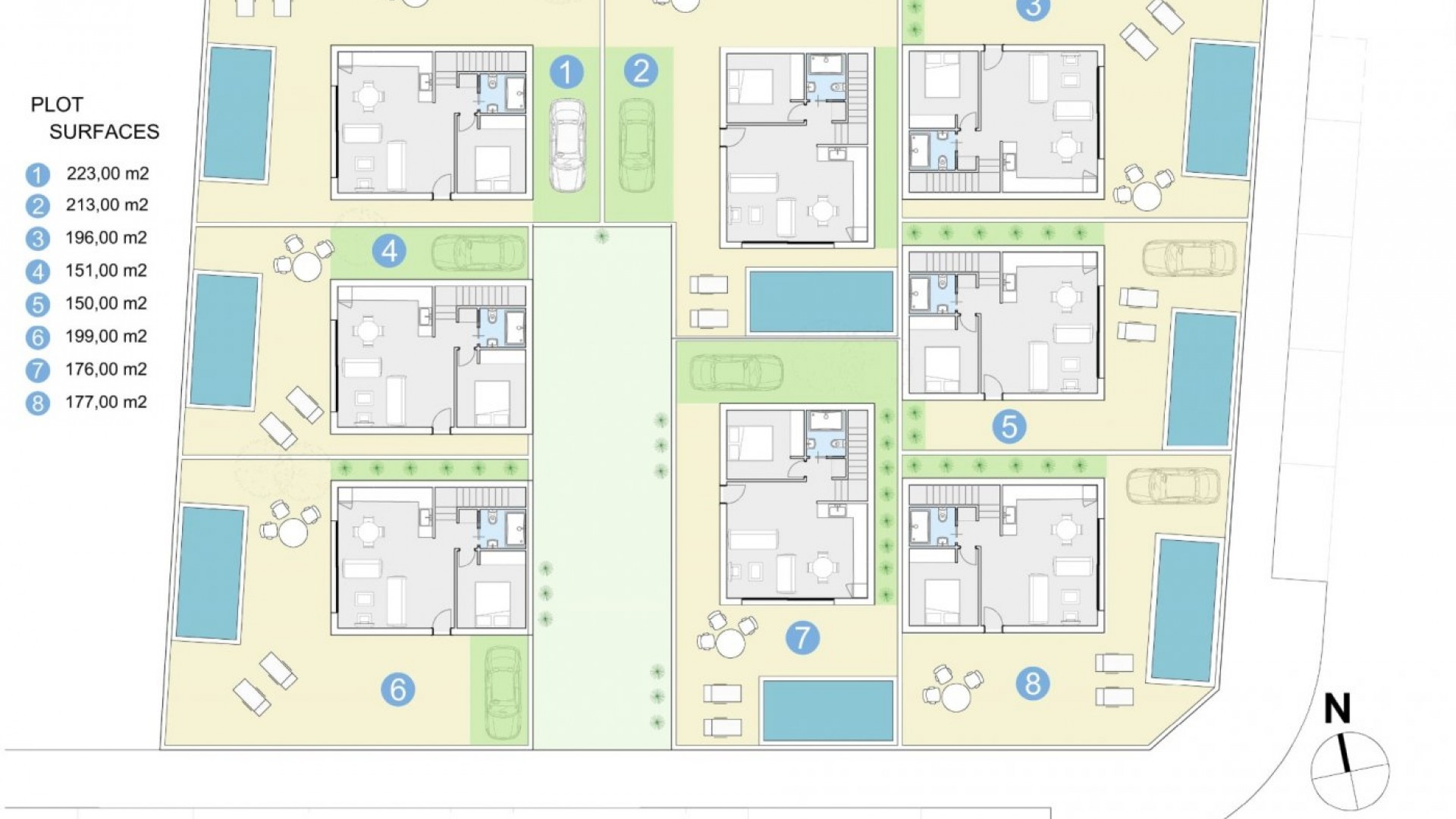 NYBYGGDA VILLOR I ORIHUELA COSTA Bostad med 8 nybyggda exklusiva moderna villor i Los dolses, Orihuela Costa. Vackra villor med 3 sovrum och 2 badrum, vardagsrum, kök, galleri och terrass byggda på tomterna från 150m2 upp till 223m2, har trädgård med privat pool och parkutrymme. Som tillval kan du ha ett solarium mot en extra kostnad. Bostäder beläget i det bästa bostadsområdet i Orihuela Costa, det har alla tjänster, perfekt kommunicerade 2 minuter från motorväg A-7. Los Dolses ligger nära det mycket populära Villamartin-området med turister och invånare, det mesta av samhället består av västeuropeiska utlänningar som har bosatt sig där under de senaste 15 åren, och praktiskt taget förvandlat den ursprungliga byn till en levande destination året runt. Det finns 3 golfbanor i närheten och stränderna med blå flagg ligger bara en kort 10 minuters bilresa bort. Flygplatserna i Alicante och Murcia ligger 45 minuters bilresa bort.
