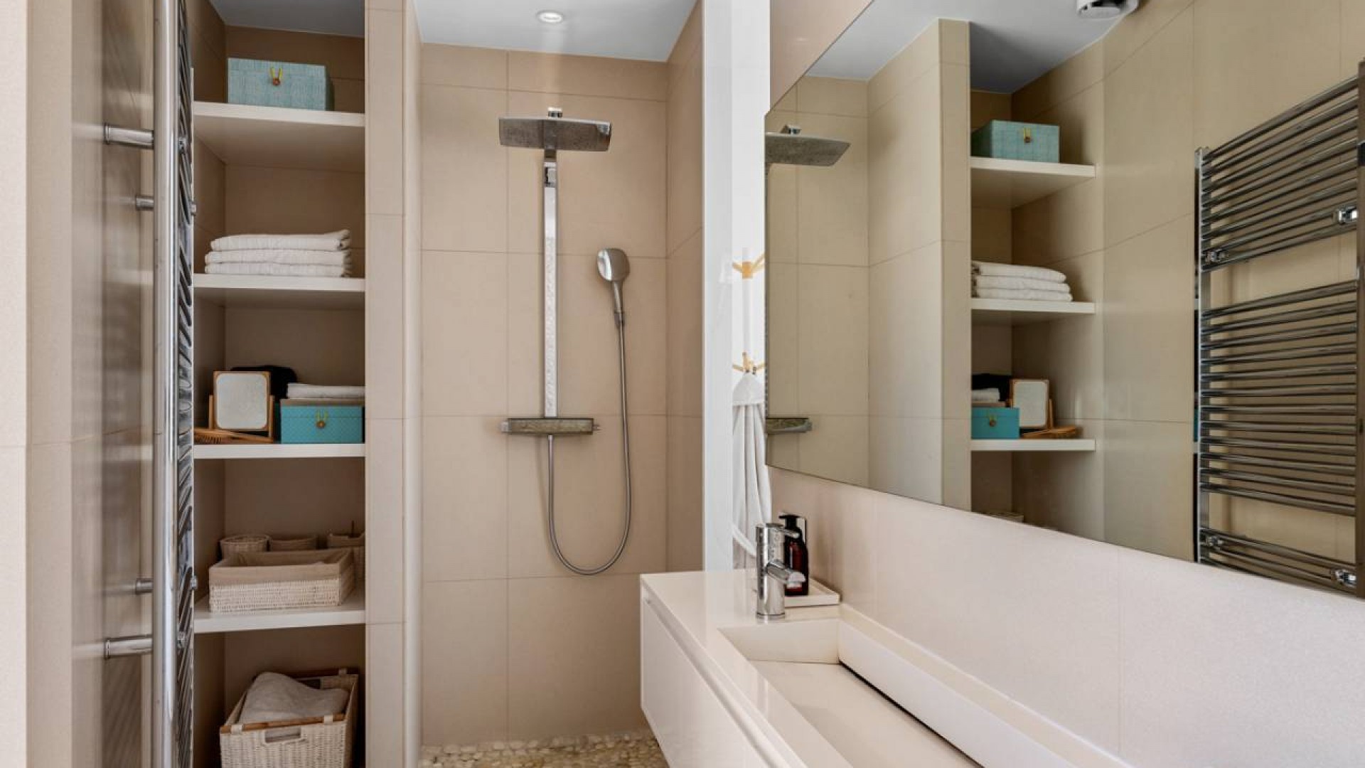 Attraktiv helrenoverad villa i centrum av Ciudad Quesada, Rojales. Detta lyxiga hus har unika soliga förhållanden och är en fastighet med vacker utsikt. Tomten är på 2.244 m2 och är trevligt planterad med palmer, fruktträd och olivträd. Ägaren har bibehållit husets charmiga stil, vilket ger det en särprägel av att vara ett hem. Det finns 2 kompletta utomhuskök på vardera sidan av poolen. De kan flyttas efter solförhållandena både sommar och vinter, om man vill ha morgonsol och/eller eftermiddagssol. I huvudbyggnaden finns 3 sovrum fördelade på 2 våningar. I trädgården finns ett garage med ytterligare en våning ovanför, med stor potential att bli ett vackert hus med vardagsrum, kök, 2 sovrum och badrum. Behöver reformeras/renoveras. Vacker utsikt från terrassen här. I trädgården finns en vacker stor saltvattenpool 6x12m, med ljust kakel som ger en varm känsla av att bada i Karibiska havet. Vackert på natten med belysningen. I huvuddelen kommer du in i en hall och sedan in i ett ljust modernt kök med stora dubbla franska fönster, som vetter mot den enorma terrassen. Sedan har du en matplats och en grupp soffor med direkt utsikt mot poolområdet. På samma våning finns ett stort TV-rum. På första våningen finns ett kontor med omklädningsrum, sedan når man en hall, samt ett sovrum med dusch och separat WC. Från terrassen kan du njuta av den underbara morgonsolen. I den andra delen av huset finns 2 sovrum och 2 badrum. Det finns stora dubbelfönster i vardagsrummet samt i sovrummet och badrummet. Ett av badrummen har dusch och bubbelbadkar. Bredvid badkaret finns stora skjutdörrar i glas, som kan öppnas hela vägen upp. Här kan du njuta av utsikten över poolområdet, speciellt på natten när all belysning är tänd i både poolen och trädgården. Bredvid terrassen, utanför vardagsrummet och köket, finns stora högkvalitativa porslinsplattor. Samma kakel finns även i de två uteköken, i poolområdet och i förvaringsutrymmet för trädgårdsmöbler.- Isolerade golv och väggar.- Isolerade fönster och dörrar.- Vattenvärme med termostater i varje rum på entréplan. - Korridor och badrum på övervåningen har värmekablar med termostater.- Gasuppvärmning - 'top of the range' holländskt system.- Handduksvärmare i badrum.- Alla innerbelysning är LED med dimmers.- Alla ytterljus är LED.- Integrerad varm/kall luftkonditionering med rumsfördelningsfunktion.- 6 x 12 meter saltvattenpool.- Öppen spis i vardagsrum, med Bioetanol.- 2 uteplatser med två oberoende elektriska grindar med fjärrkontroll kontroll.- Övervakningskamera med inspelningsfunktion.- Alla golv är av porslinsstengods, samt badrumsplattorna.- Natursten i flera exteriöra och interiöra områden.- Skugga i olika delar av uteområdena.- Vinskåp i köket.- Bioetanol 'eldstad' bakom induktionshällen i köket.- Nya vitvaror inklusive alla vitvaror.- Grovkök med extra stor kyl, tvättmaskin och diskho. - Automatiskt bevattningssystem i trädgården.- Garage för cykelförråd med mera.- Parkeringsplats för 4 bilar med markis.