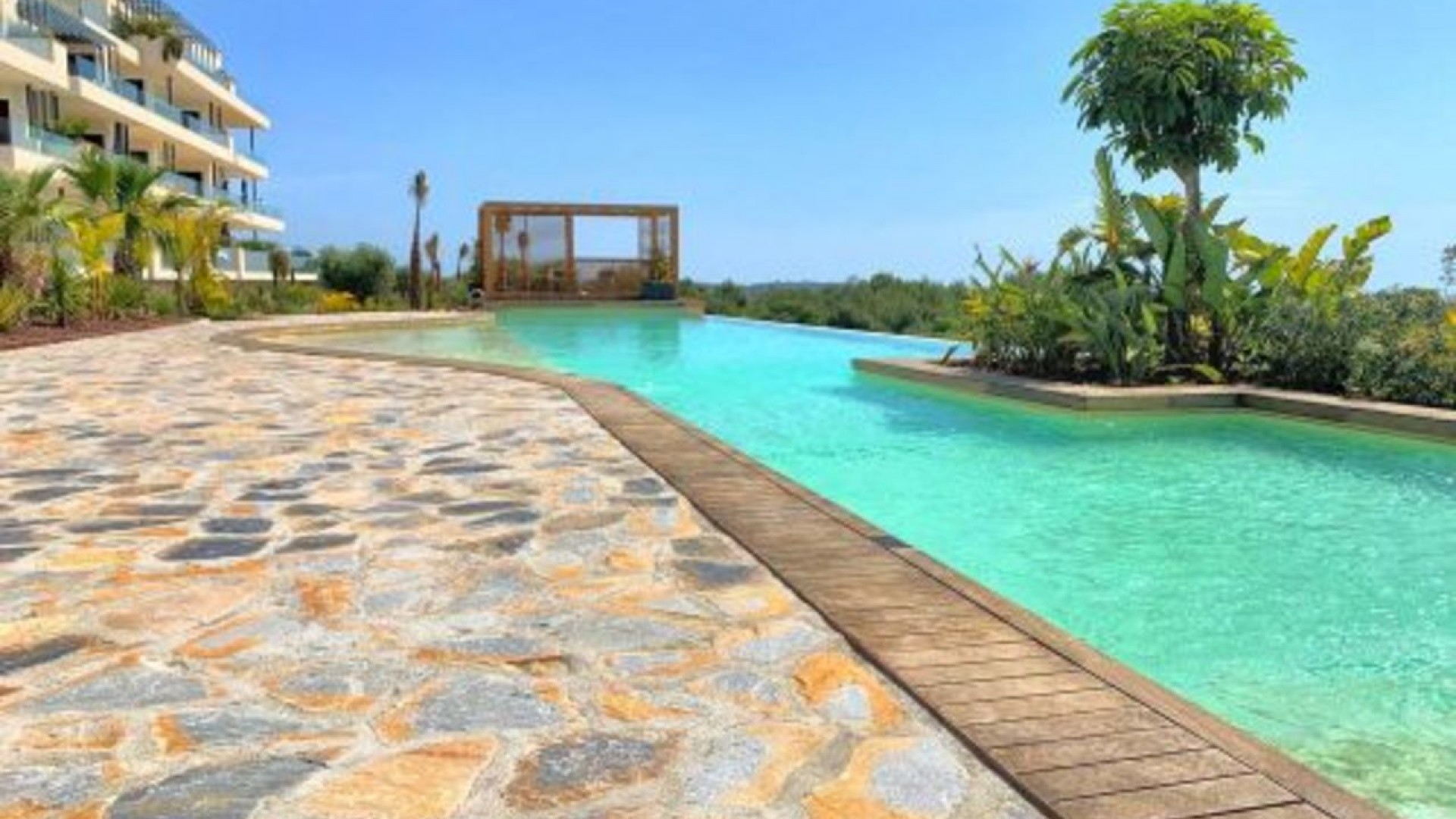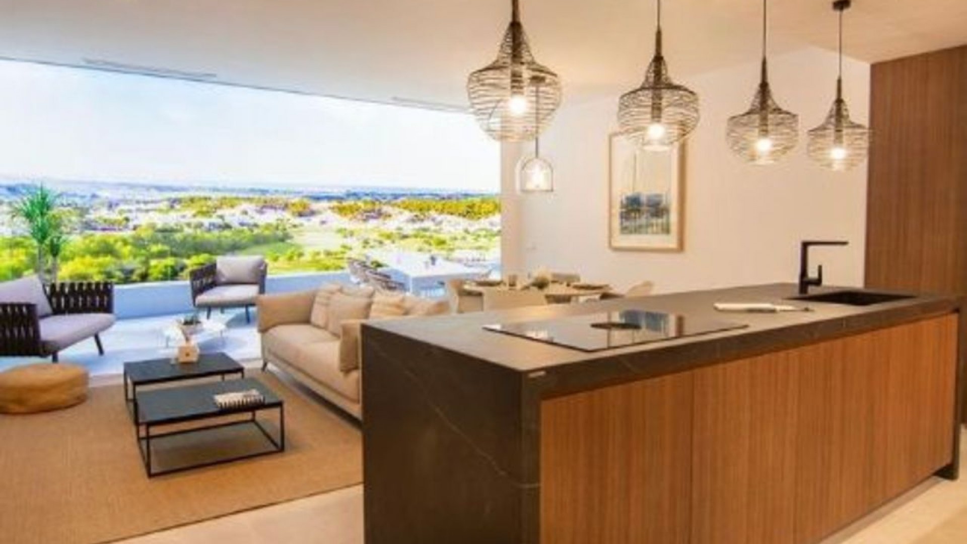 Vi har nöjet att presentera denna helt nya lägenhet i Limonero på första våningen på Las Colinas Golf & Country Club. Beläget på en av de högsta punkterna på Las Colinas Golf & Country Club här kommer de att bygga flera flerfamiljshus. Block 30, som är det första kvarteret som släpps, erbjuder lägenheter med 2 eller 3 sovrum, 2 badrum och en gästtoalett. Alla med stora terrasser i söderläge, varifrån du har utsikt över den gemensamma poolen, golfbanan, Mar Menorsjön, bergen och Medelhavet. Varje lägenhet är fullt utrustad med vitvaror, luftkonditionering med luftzon, underjordisk parkering ett förråd.