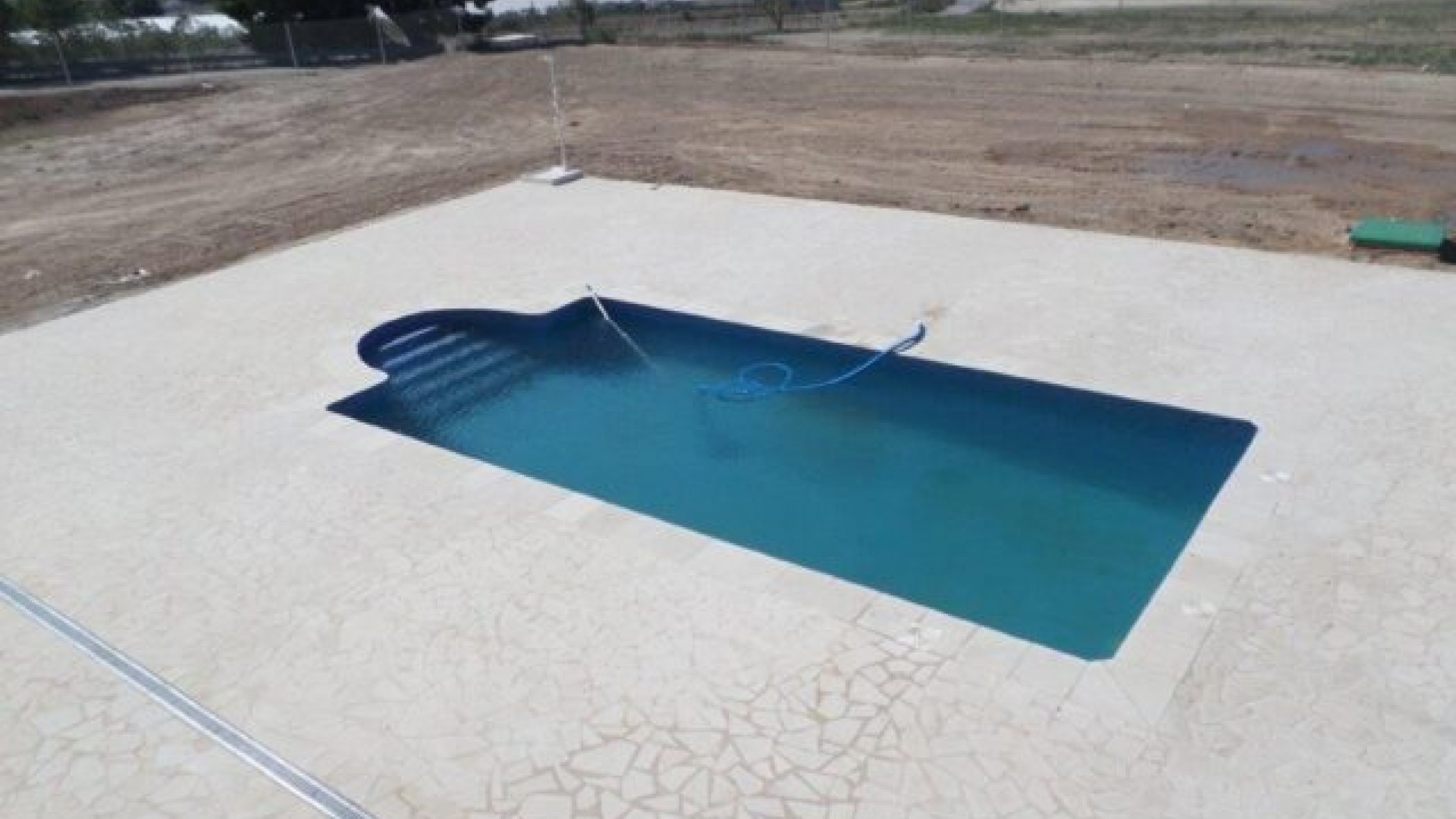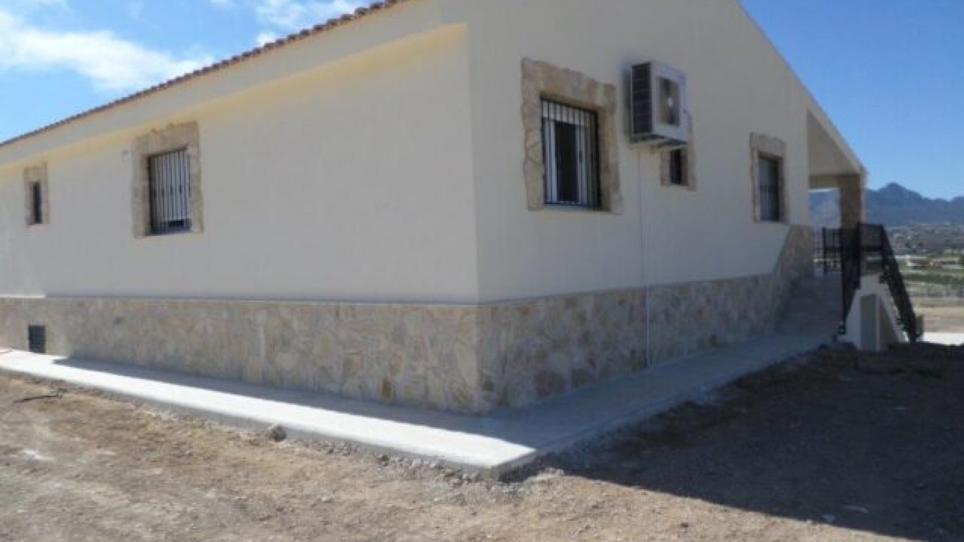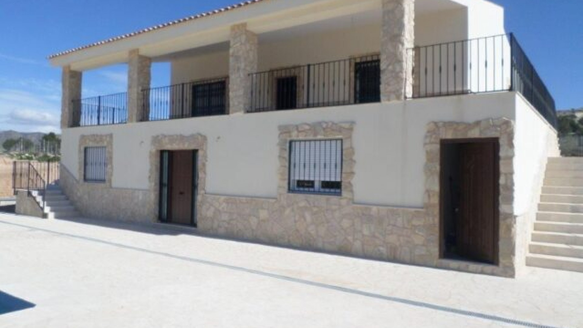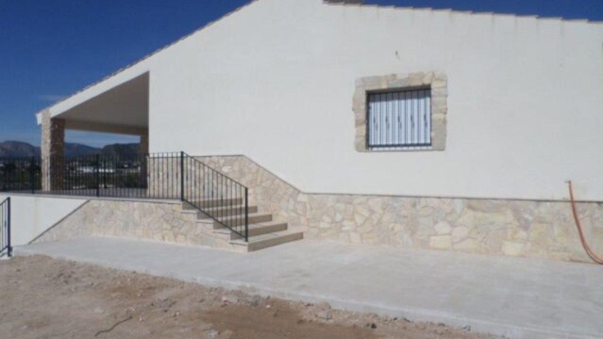Denna nya villa kan byggas på olika tomter på minst 10 000 m². Den nya konstruktionen kommer att bestå av 5 sovrum, 3 badrum, 2 utrustade kök och 2 vardagsrum/matsalar. Fastigheten kommer att ha vatten och el. Marken kommer att ha minst 10 000 m² (varav +/- 2 000 m² kommer att vara inhägnad) och det kommer att finnas en pool. Möjlighet att se en villa redan byggd.Alicantes flygplats och stränderna ligger 26 km bort.