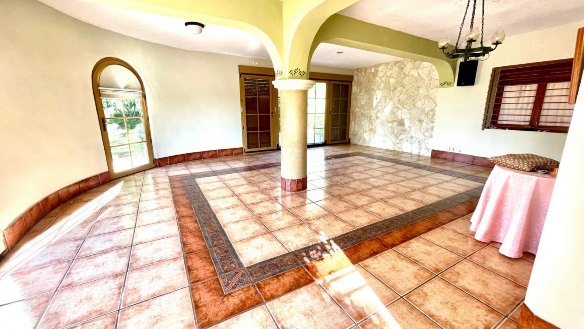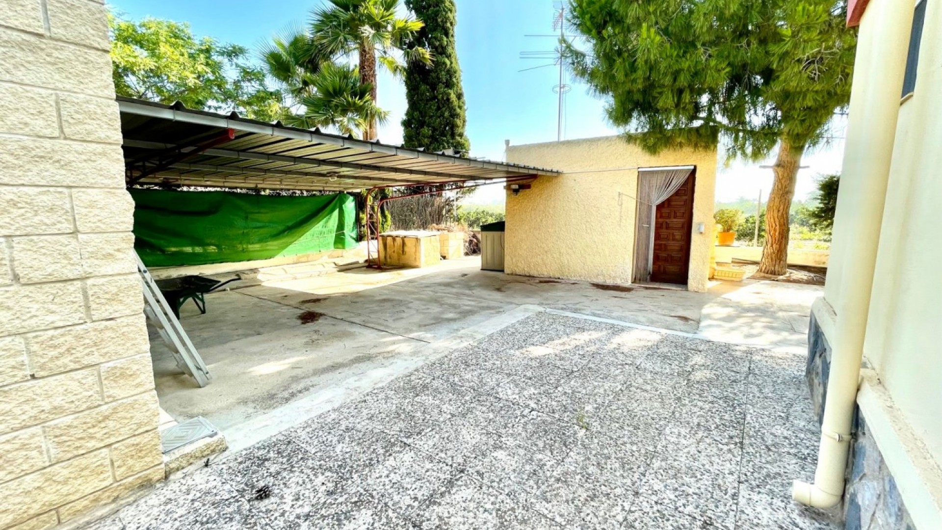 Hus på 2 våningar i Elche / Matola (Alicante) bara 30 minuter från stranden, med utsikt över bergen. Huset består av 3 sovrum, 2 badrum, ett stort vardagsrum med skorsten, ett slutet kök och har en boyta på 400m2 och en inhägnad tomt på 2000m2. Trädgården är vackert anlagd och mycket lättskött, det finns en privat pool, en täckt terrass och ett separat sommarkök. Vidare har huset centralvärme, el och vatten samt en carport för 3 bilar. Huset ligger i ett mycket lugnt område, bara två minuter från Matola och 30 minuter från flygplatsen, i ett bra område att bo på året runt.