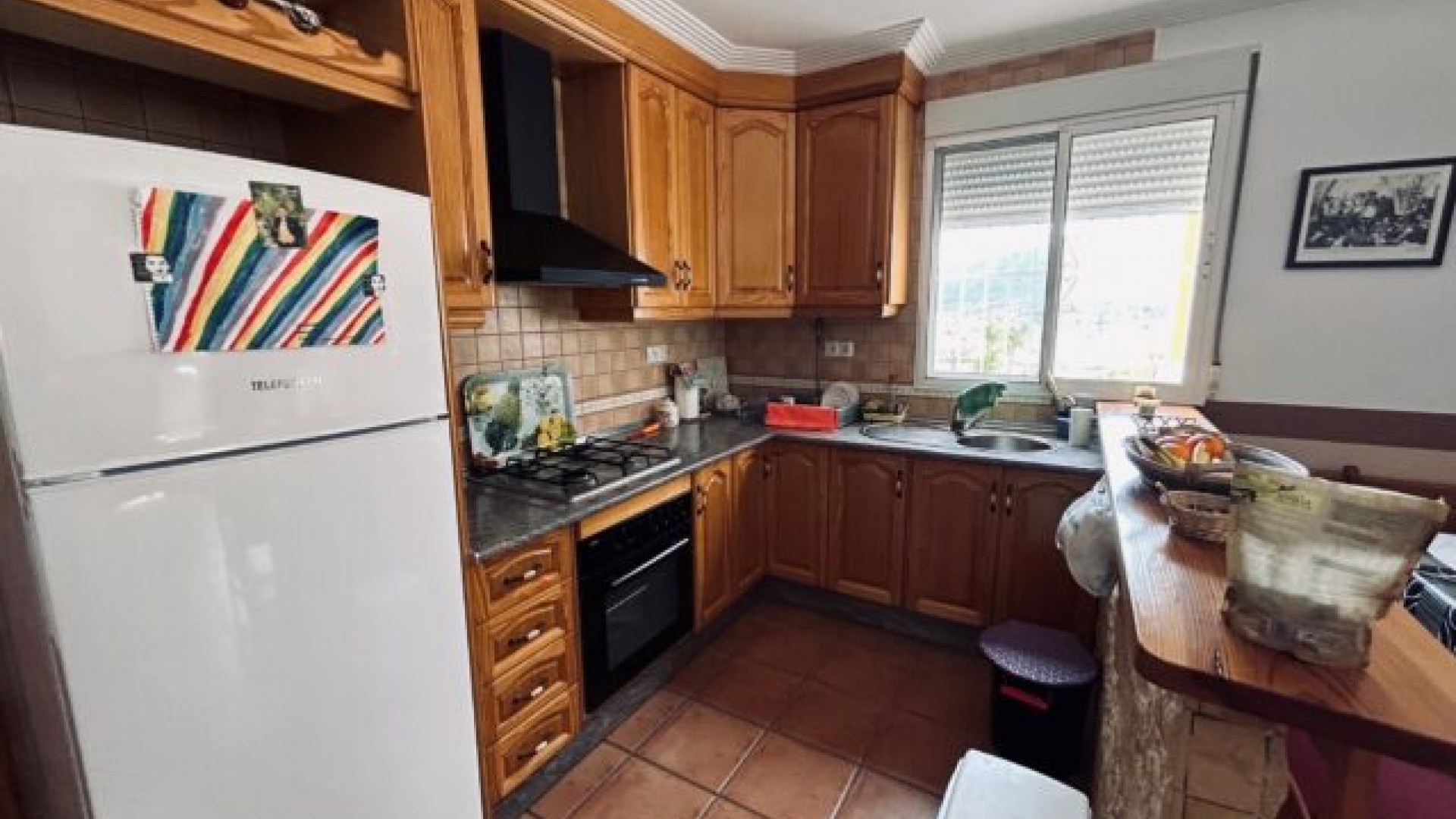 Denna vackra lilla villa ligger mellan La Romana och Algueña och har vacker utsikt över de omgivande bergen. Huset innehåller ett vardagsrum med vardagsrum/matsal med öppen spis och kök i öppen planlösning, 3 sovrum, ett badrum och en vacker veranda. är +/- 5.000m² stor och är inhägnad. På marken finns en stängd BBQ och trädgården har anlagts fint. Fastigheten har en 22 000 liters vattentank, solpaneler och en generator.Alicantes flygplats ligger 30 minuter bort och stränderna 40 minuter.