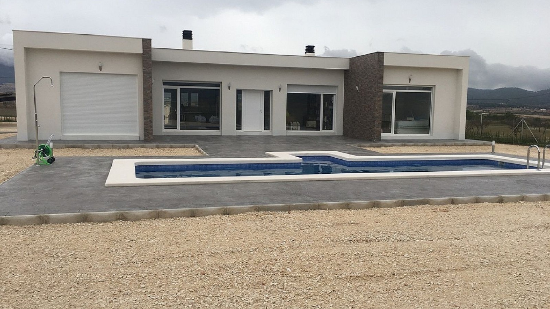 Alla hus inkluderar 2m stansad betongterrass runt poolen (färg och mönster att välja på), 1m runt huset, gated entré, 3000m2 stängsel, förinstallerad kanalluftkonditionering, standardkök, säkerhetsdörr, tyska vipp- och vändfönster (eller skjutbara om så önskas), inbyggd öppen spis och skorsten, förinstallation för tv och internet, plus några meter grusväg runt huset.