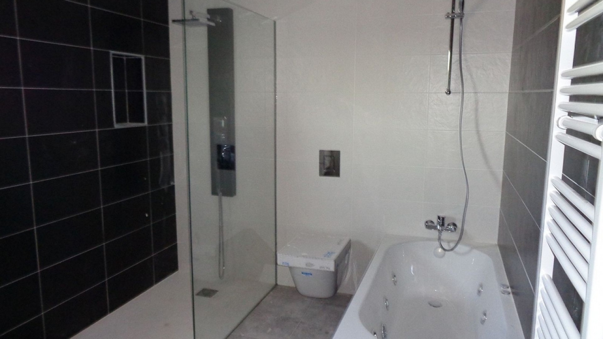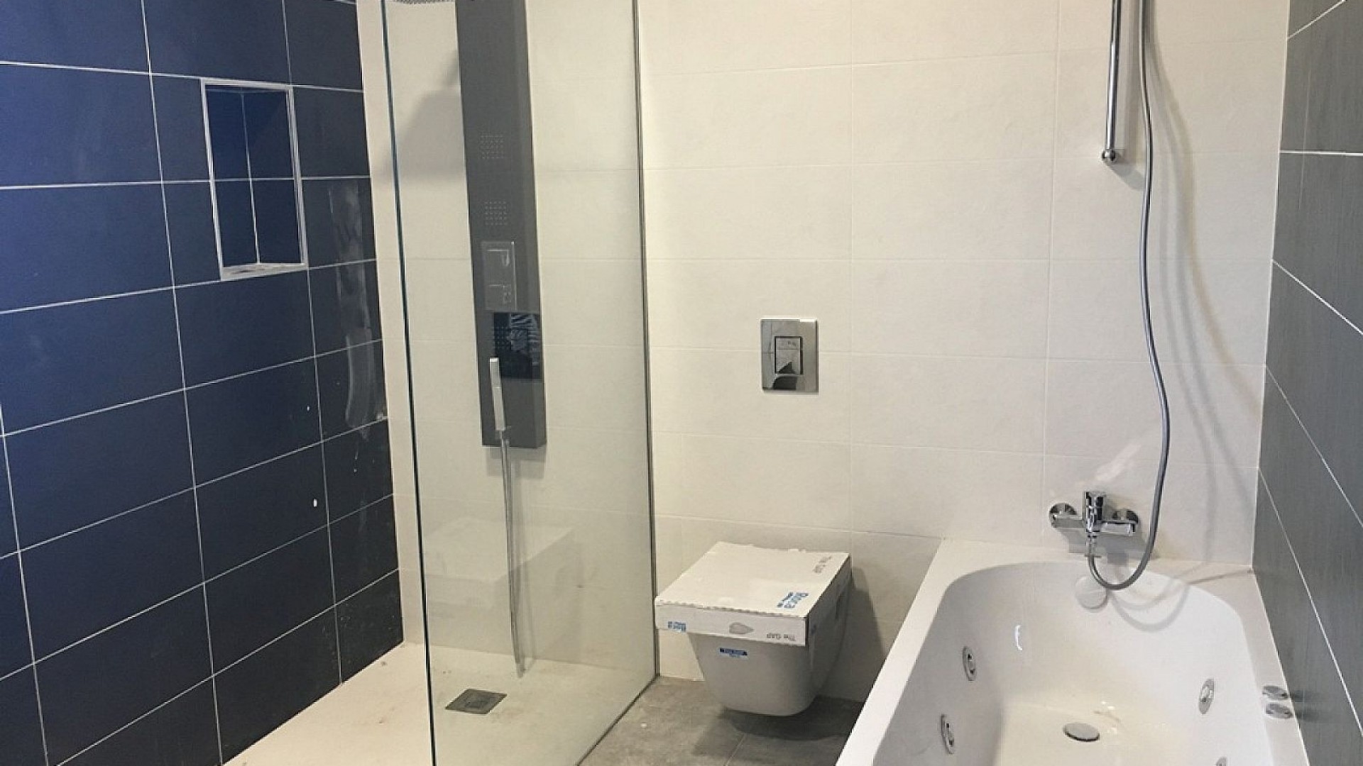 Badrummen inkluderar en duschpelare, duschkar eller badkar, diskbänkar (olika färger att välja mellan) med handfat, kranar och speglar, plus ett stort urval av väggplattor.