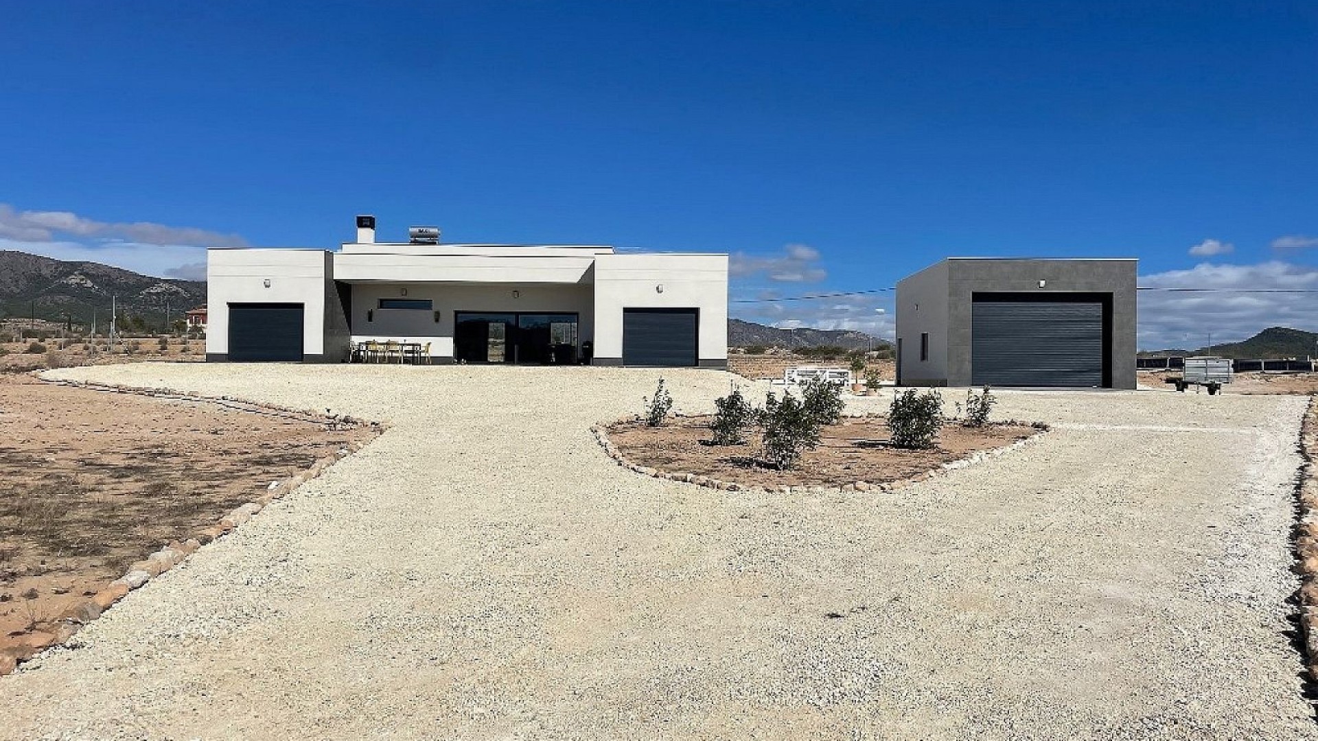 Moderna 3-bäddsvillor i Pinoso - nyckeln klar på 8 månader. Dessa vackra lantliga bostäder är skräddarsydda för varje kunds personliga smak. Modellen som visas på dessa bilder har ytterligare ett gästhus på 30 kvm, och kunderna lade till ett BBQ & Summer Kitchen senare.