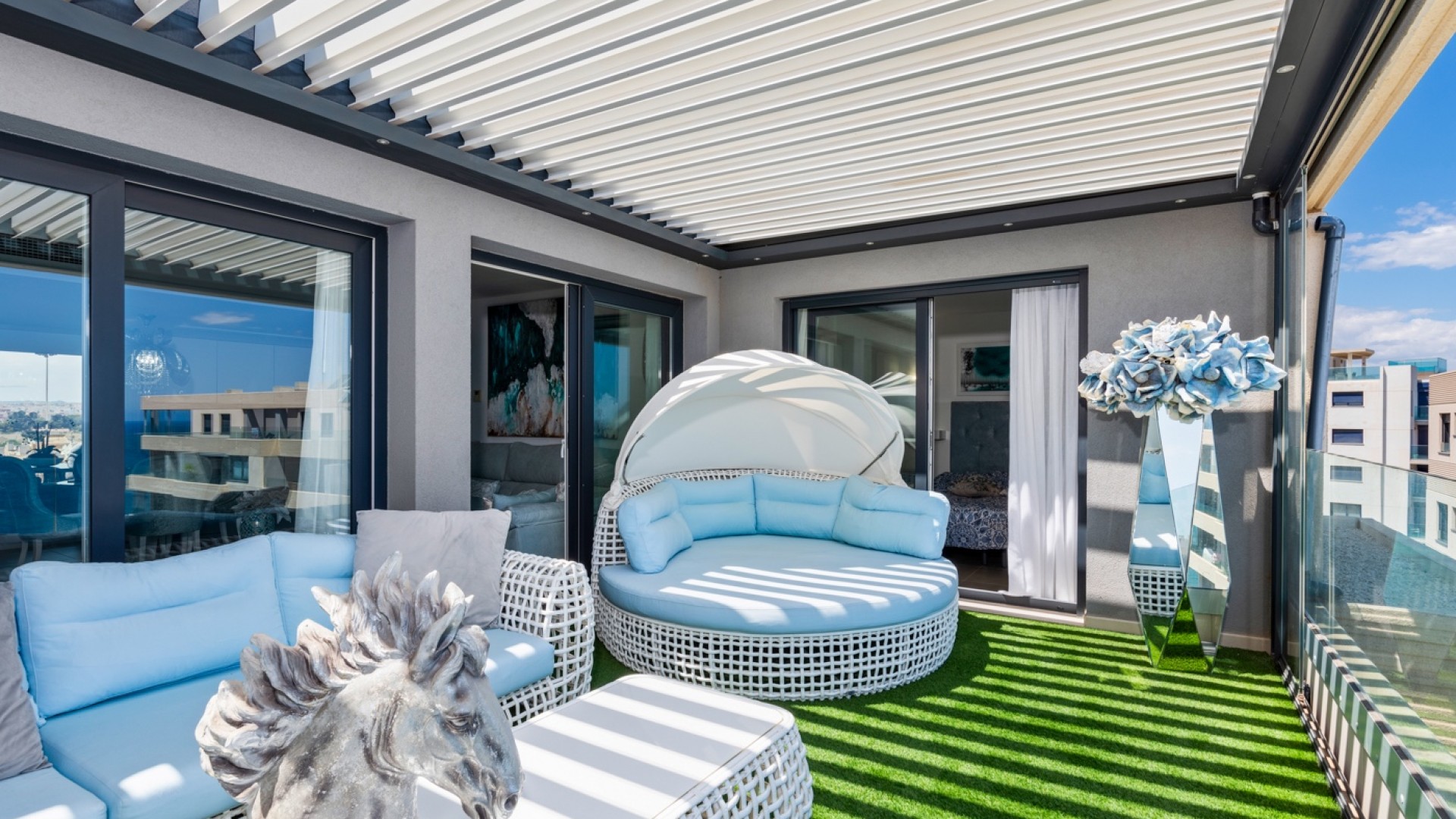 Vi erbjuder denna vackra takvåning till salu med två sovrum och två badrum (varav en med eget badrum). Beläget i en av de lyxigaste urbaniseringarna på södra Costa Blanca, Panorama Mar. Komplexet, som ligger på första linjen till havet, precis vid Punta Prima-promenaden, drar nytta av gröna trädgårdar, tre gemensamma pooler, varav en är oändlig och en är uppvärmd, och den andra är perfekt för barn, olika lekplatser, och har alla möjlighet att njuta av en solterrass, och koppla av på terrassen. dag lång hela året, eftersom en av terrasserna har sol sedan tidigt på morgonen, och den andra - under kvällen. Från varje rum i denna fastighet har du otrolig havsutsikt och panoramautsikt över byarna. Ett av sovrummen har direkt tillgång till terrassen. Båda terrasserna har glasluckor i fall du skulle vilja täcka upp från vindvinden. De har också installerat ett speciellt taksystem som kan öppnas eller stängas under vinter- och sommarmånaderna. perfekt att njuta av året runt. Lägenheten är fullt möblerad med eleganta designmöbler och utrustad med vitvaror av högsta kvalitet. Inom gångavstånd finns restauranger, köpcentra, busshållplats, snabbköp, bankkontor, fitnesscenter-Punta Prima-området. Också inom 10 minuters bilresa hittar du flera golfbanor, vattenpark, klubbar och diskotek, gokart, sportcenter, yachthamn och en mängd fantastiska sandstränder på Costa Blanca. Alicantes flygplats bara 40 min med bil. Fantastisk egendom att bo i Spanien