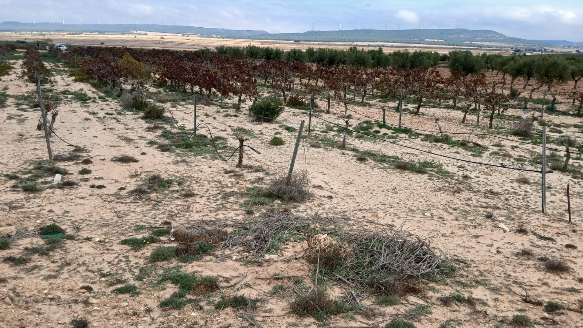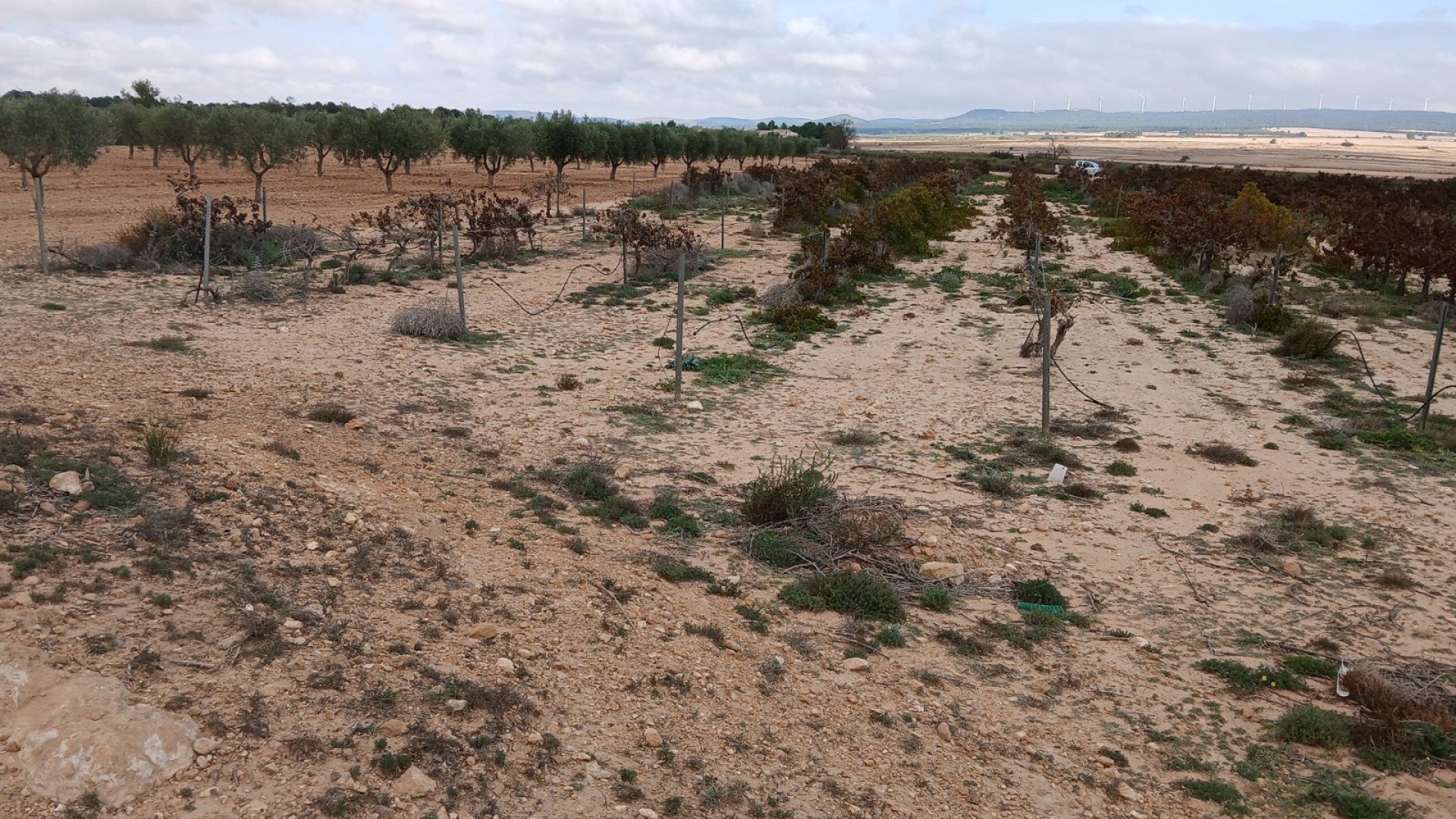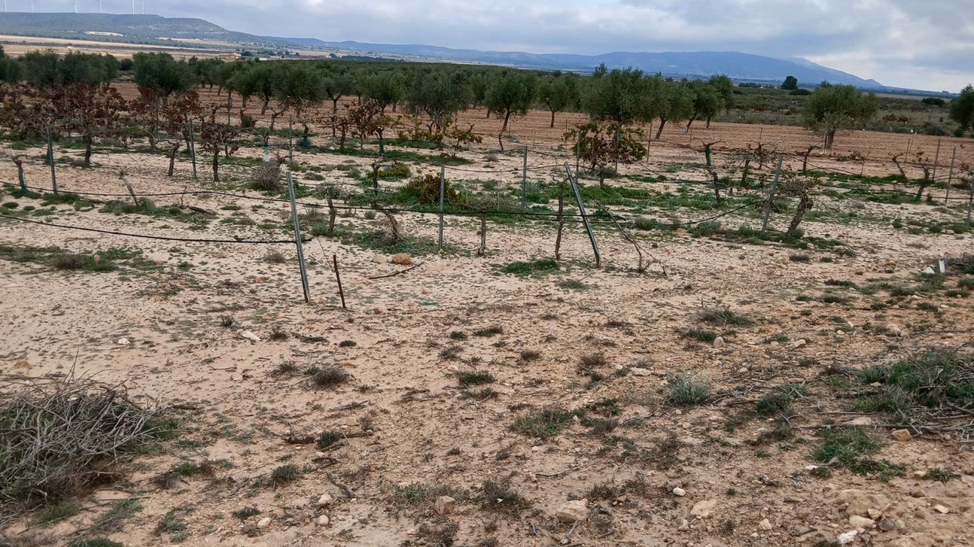 2 tomter säljs tillsammans. 1 på 3797m2 med mogna olivträd och 1 på 6011m2 med vinrankor, 1 minut ifrån varandra med bil. Möjlighet att ansluta till bevattningsvatten, bevattningsslangarna finns redan där. Det finns plats för husvagn, mobilbostad, stuga, containerhus, eller så kan du bygga ditt eget hus. Det är också möjligt att få el eller om du vill vara off-grid kan du använda solpaneler med batteri.